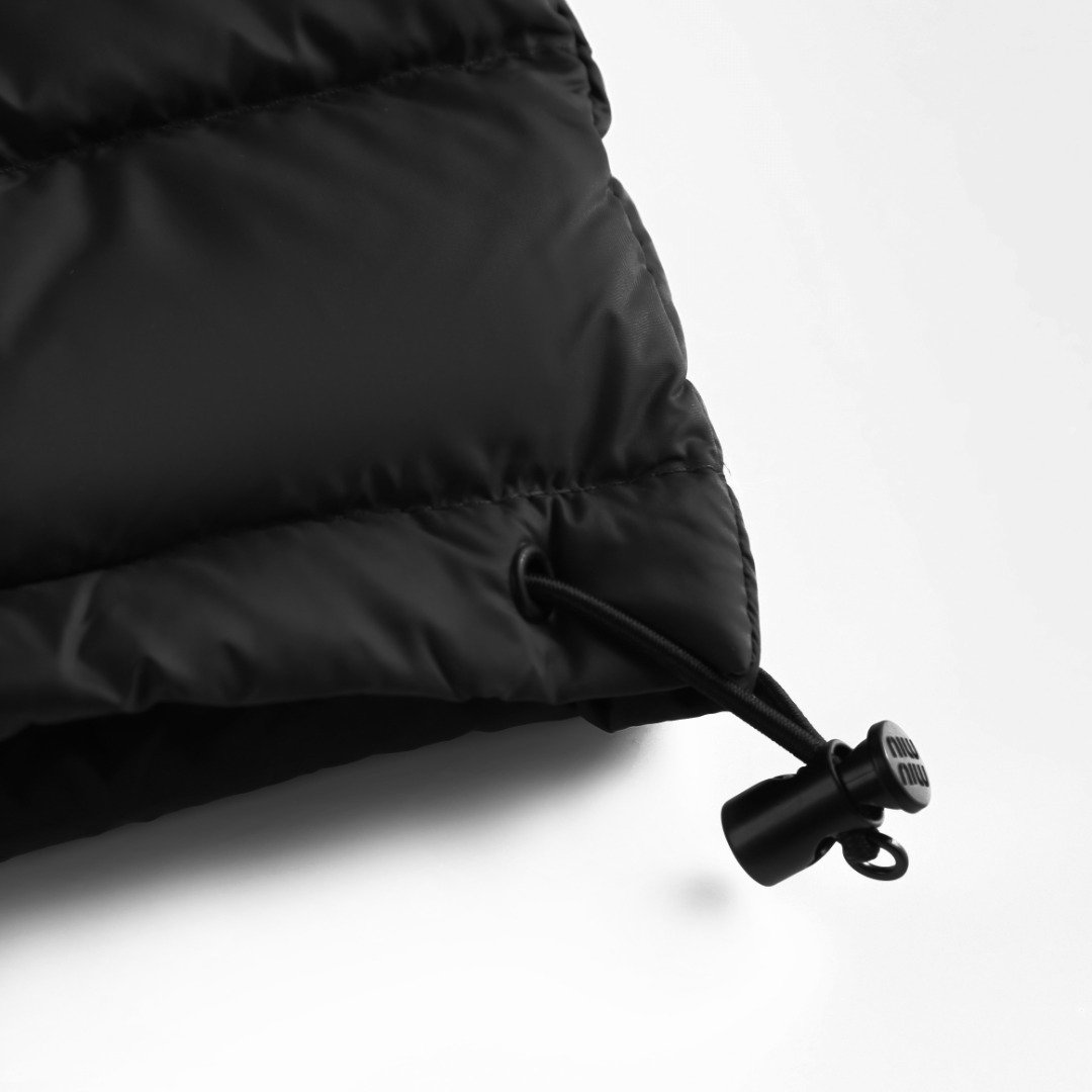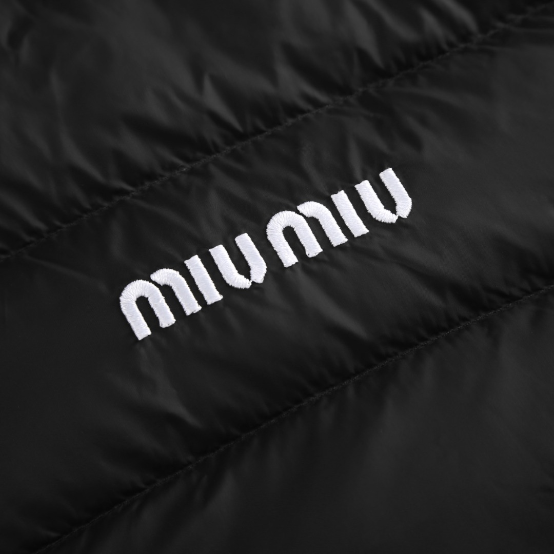 Tags: Designer Winter Coat, Embroidered Hooded Jacket, High Quality Down Jacket, Luxury Outerwear, Miu Miu Down Jacket, Winter Down Coat