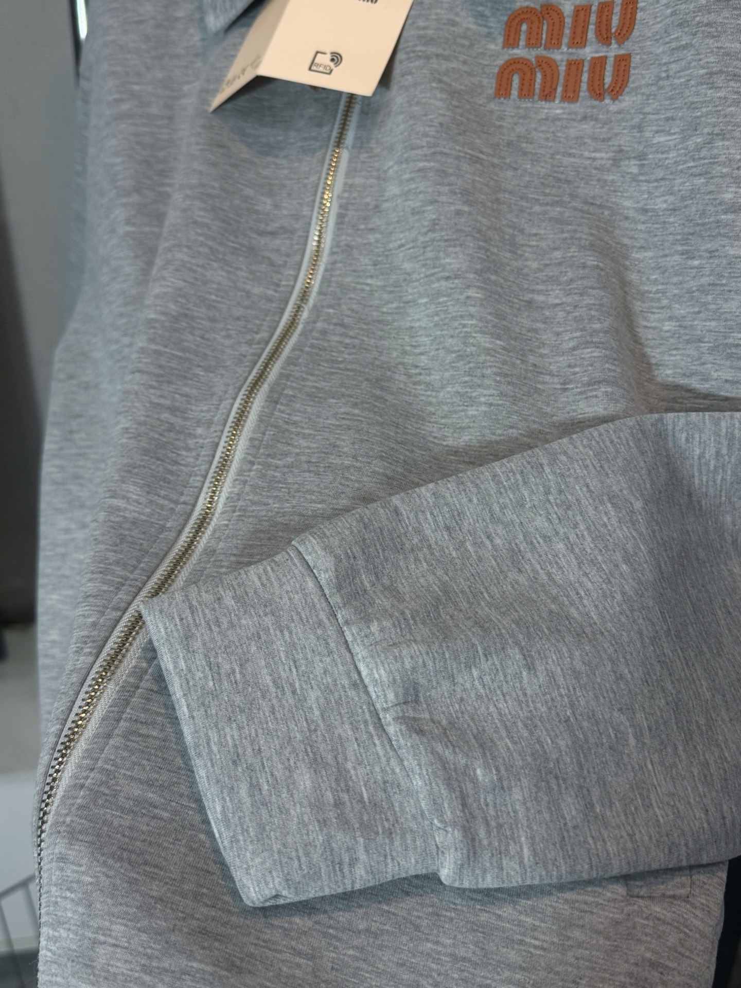 Miu Miu Gray Cotton Blend Zip-Up Jacket with Embroidered Logo