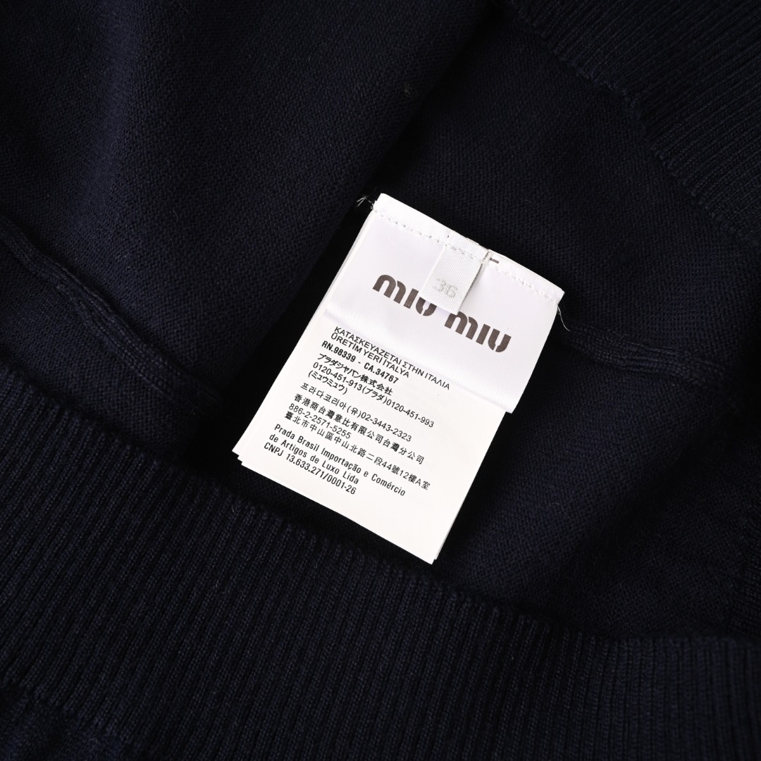 In conclusion, this Miu Miu sweater combines quality craftsmanship with a timeless design. Its premium materials and attention to detail make it a standout piece for any fashion-conscious individual. Please note that all knitwear and sweaters should not be machine washed or tumble dried at high temperatures.