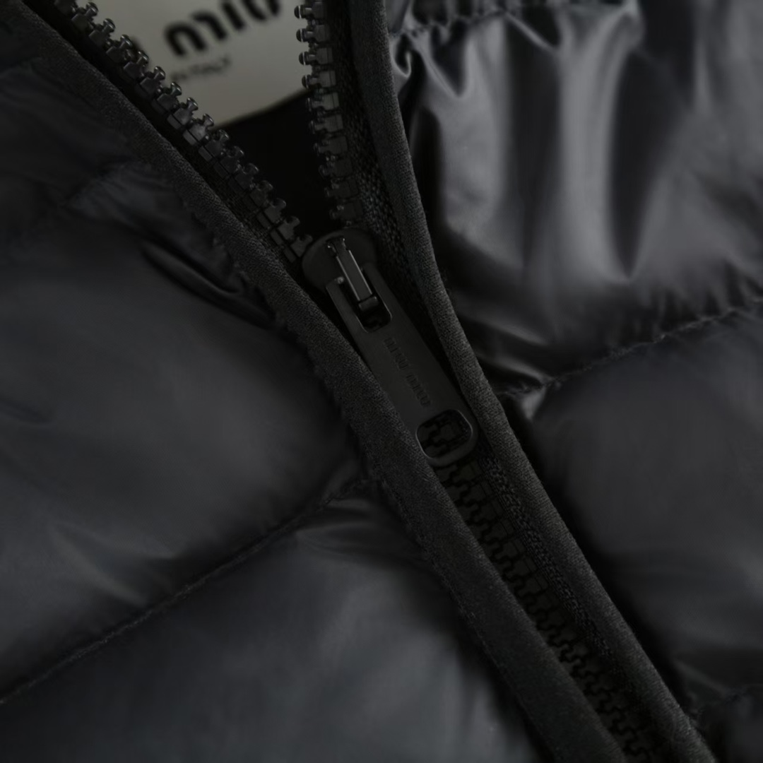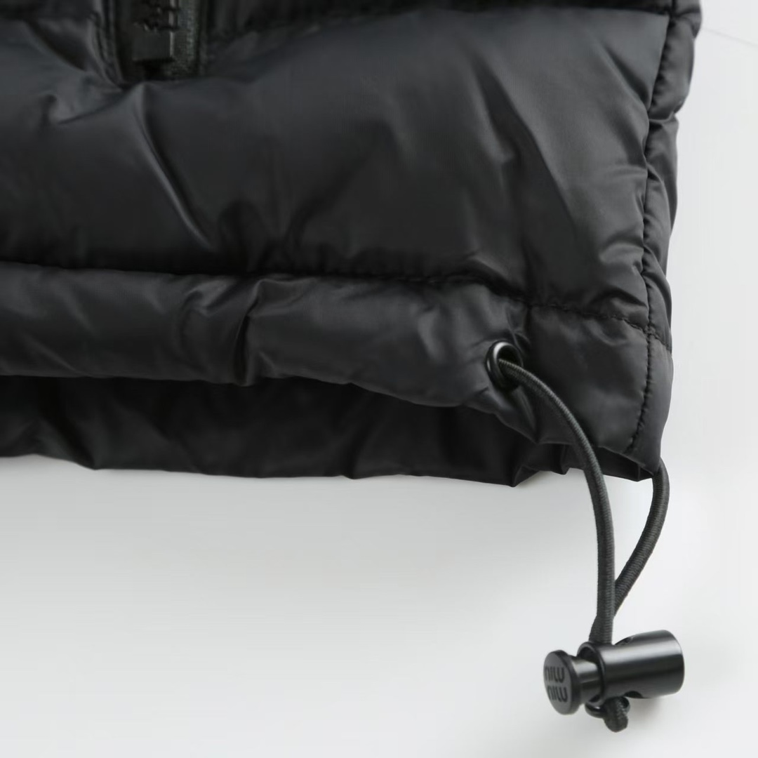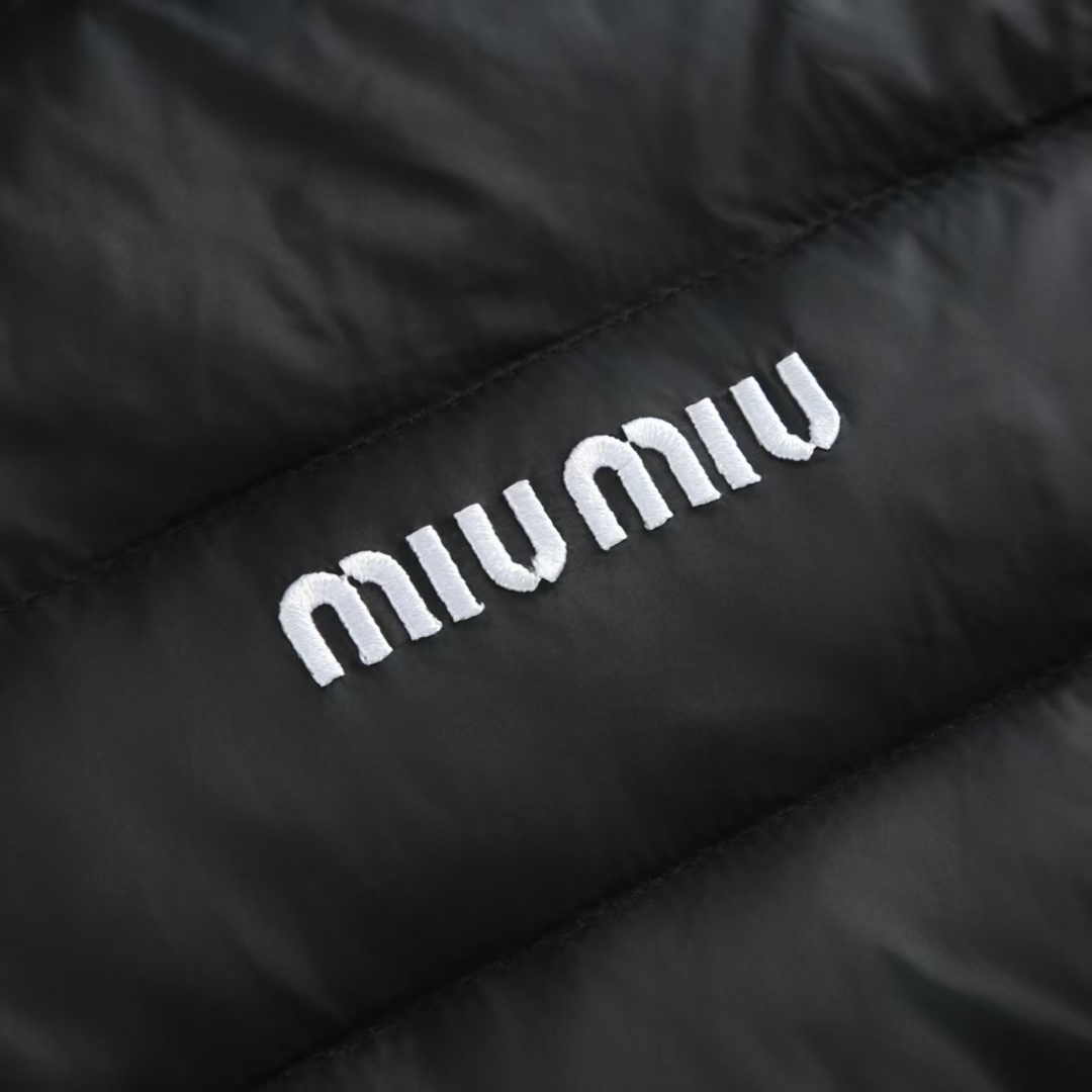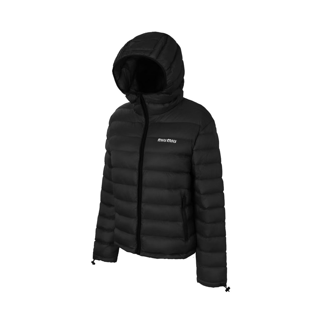 Tags: Designer Down Coat, Hooded Puffer Jacket, Lightweight Winter Coat, Luxury Outerwear, Miu Miu Down Jacket