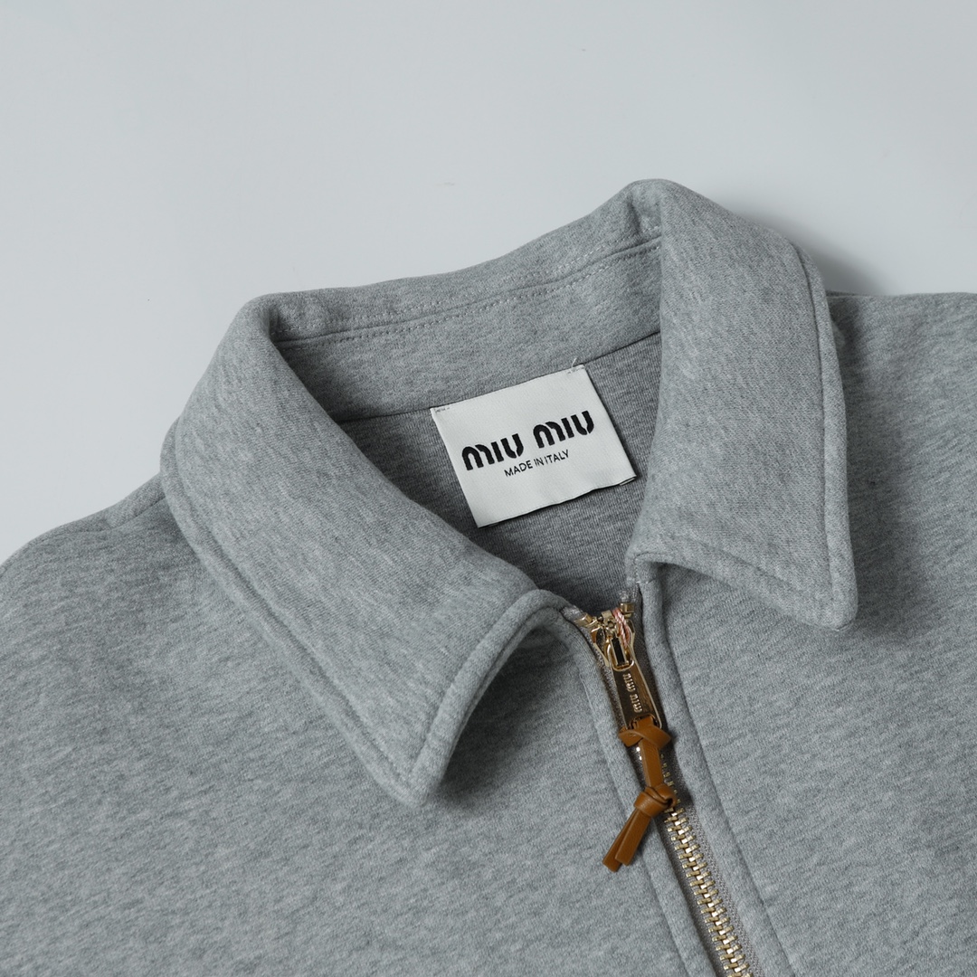 This Miu Miu zip-up jacket is a stylish and comfortable addition to any wardrobe. Made with high-quality materials and attention to detail, it's perfect for everyday wear.