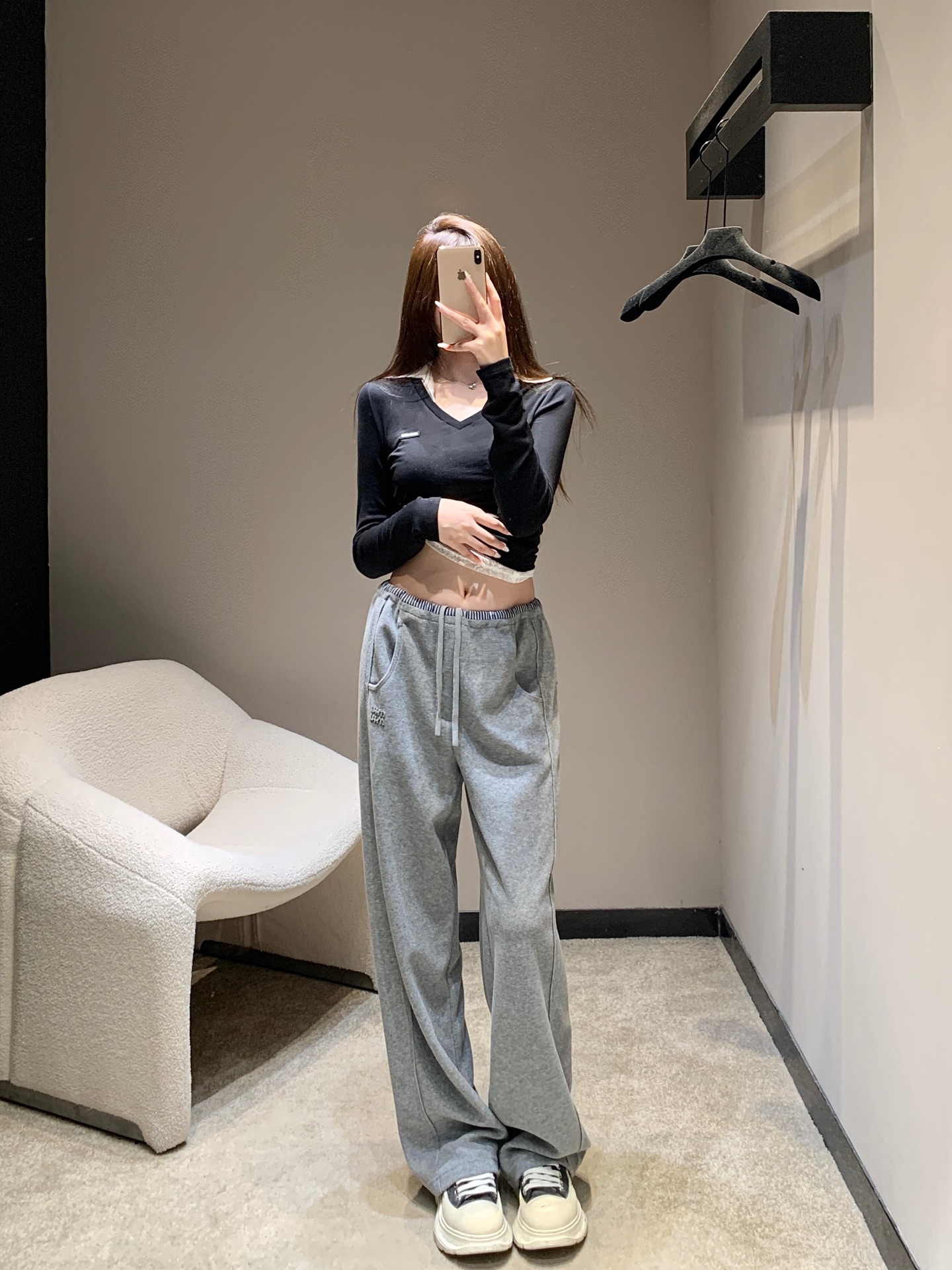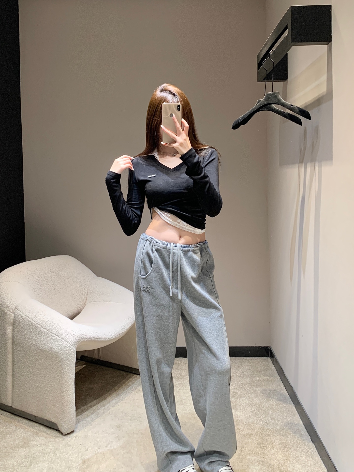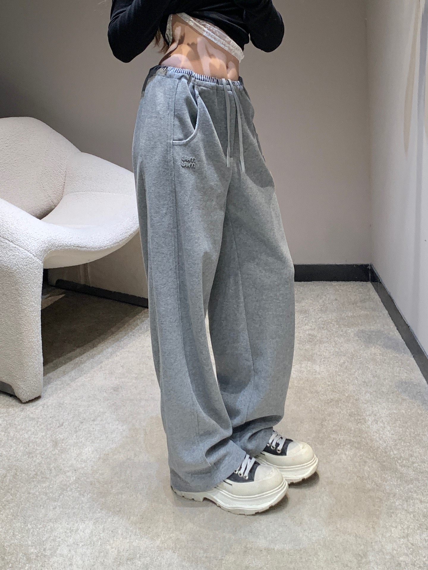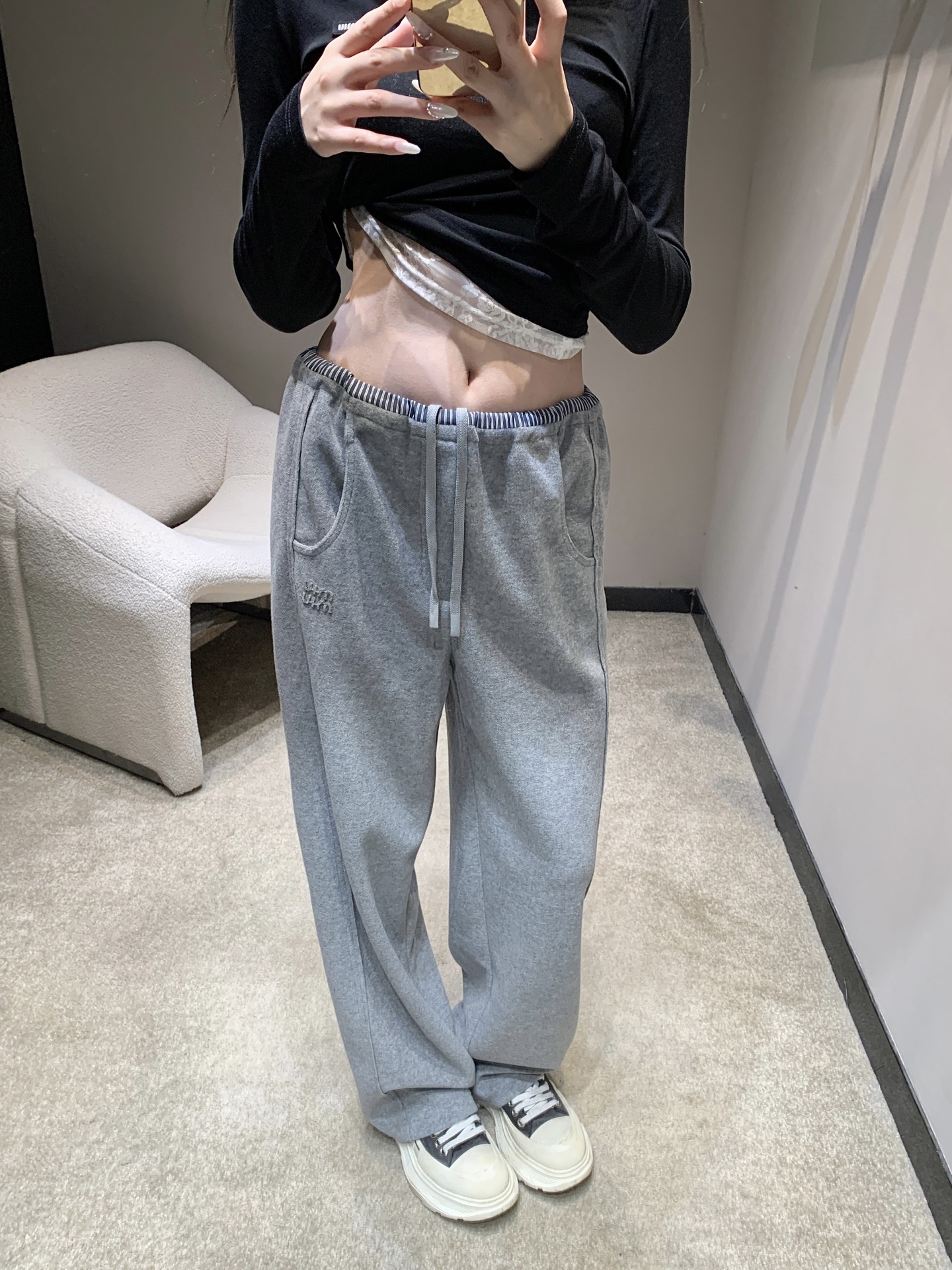 Tags: Drawstring Waist Pants, Embroidered Applique Pants, Miu Miu Lounge Pants, Terry Cloth Pants, Wide Leg Sweatpants