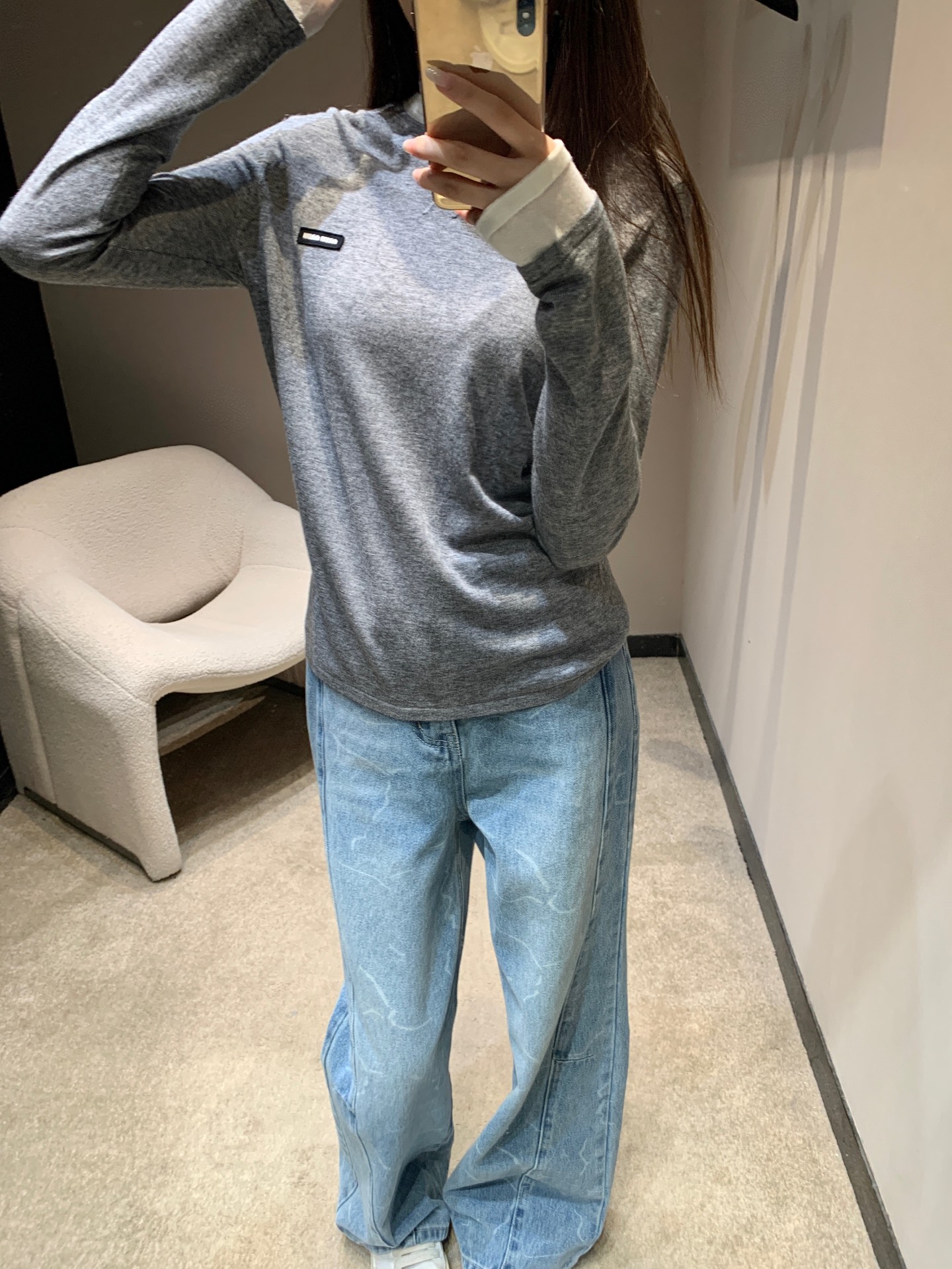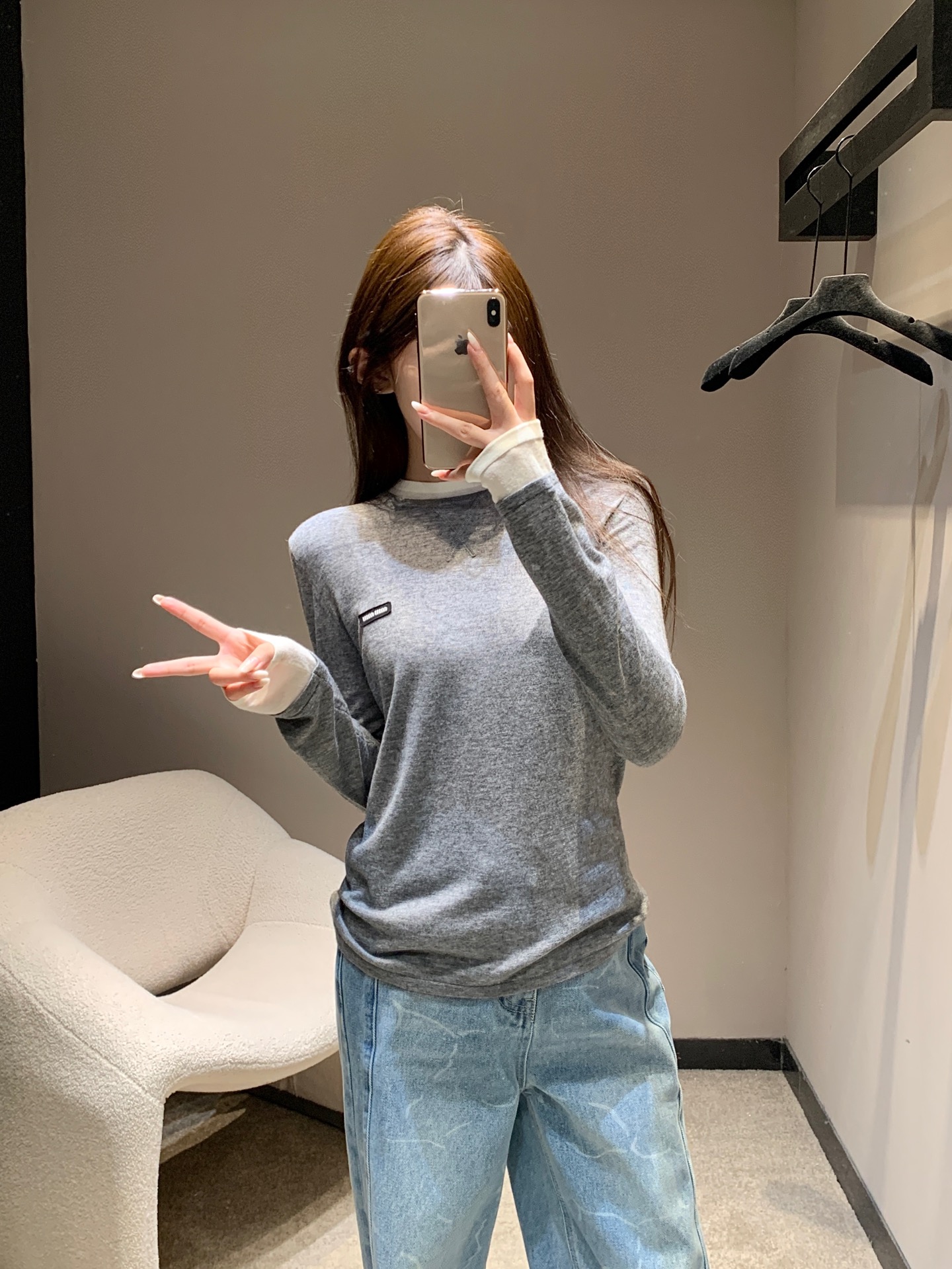This Miu Miu long sleeve t-shirt is a stylish addition to any wardrobe, offering a unique layered look and a comfortable fit.