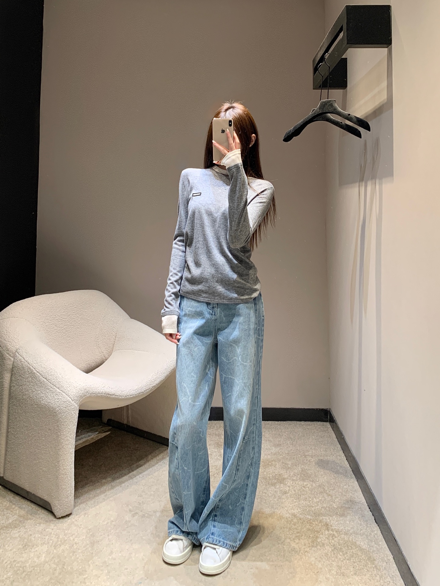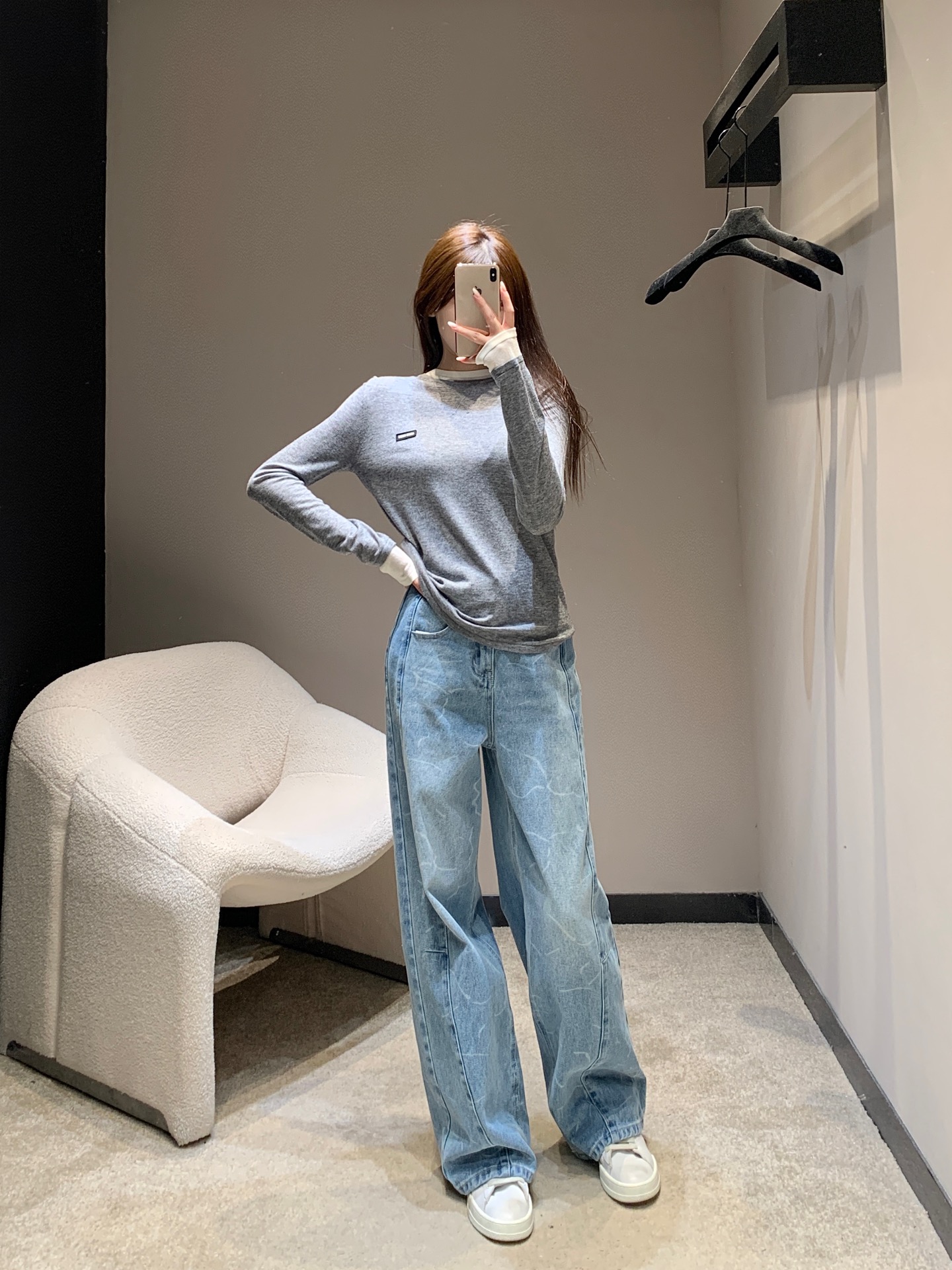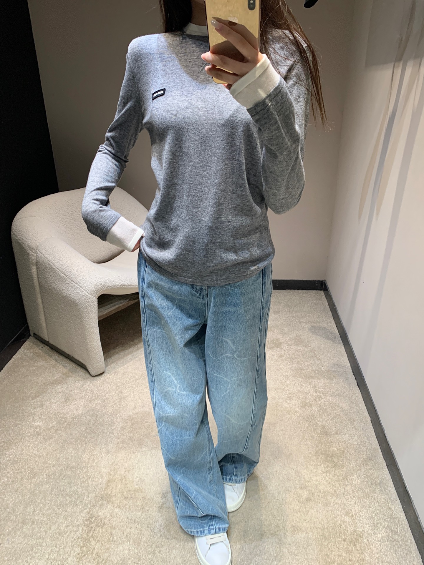 Tags: Casual Layered Top, Designer Long Sleeve Shirt, Elegant Women's Top, Miu Miu Long Sleeve Top, Wool Blend Layered T-Shirt