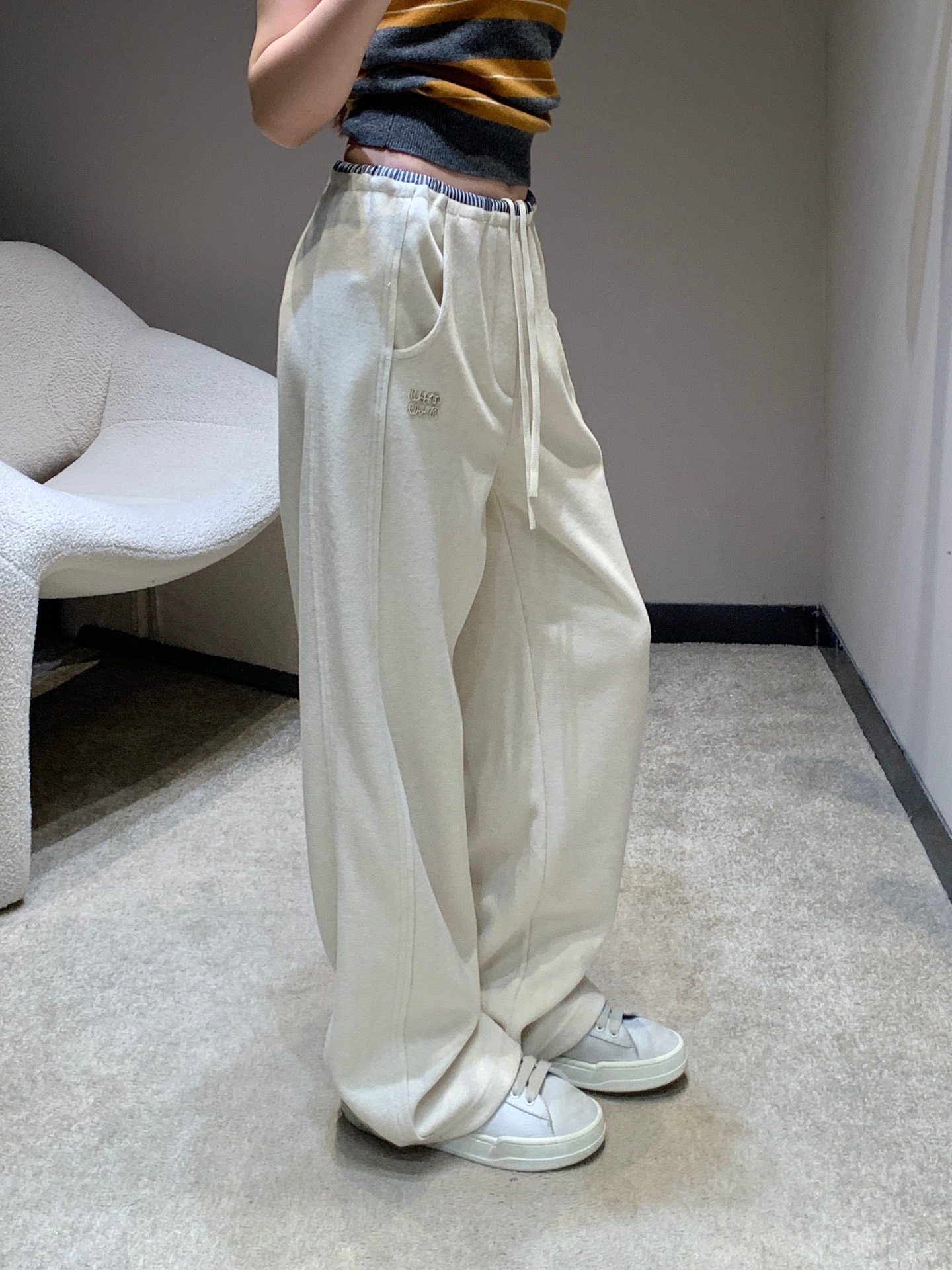 Tags: Drawstring Waist Pants, Embroidered Logo Pants, Miu Miu Sweatpants, Terry Cloth Pants, Wide Leg Sweatpants, Women's Casual Pants
