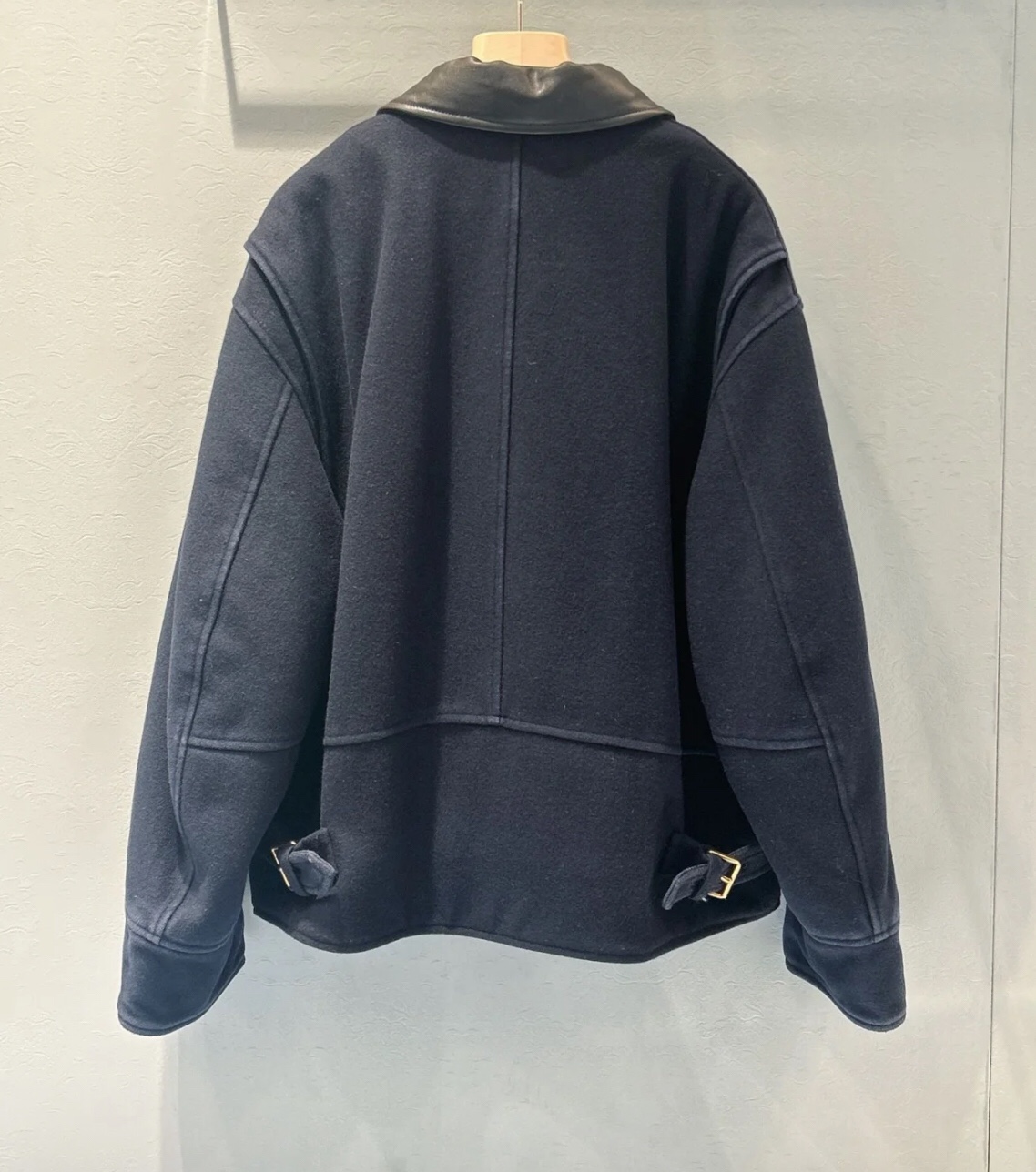 Miu Miu Wool Blend Jacket with Leather Collar - Relaxed Fit