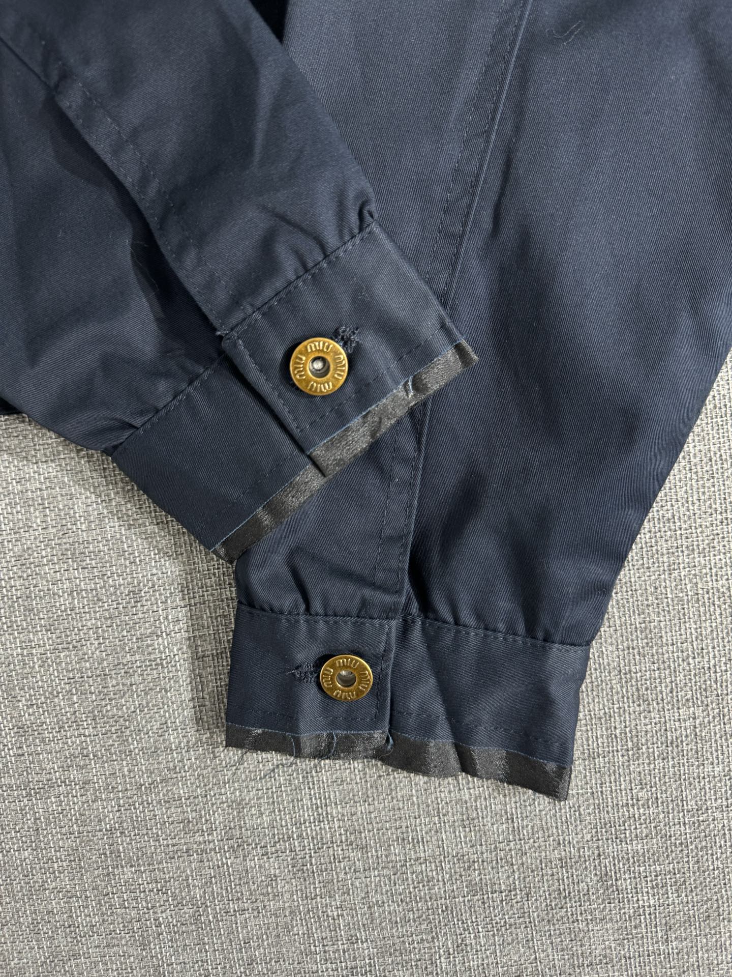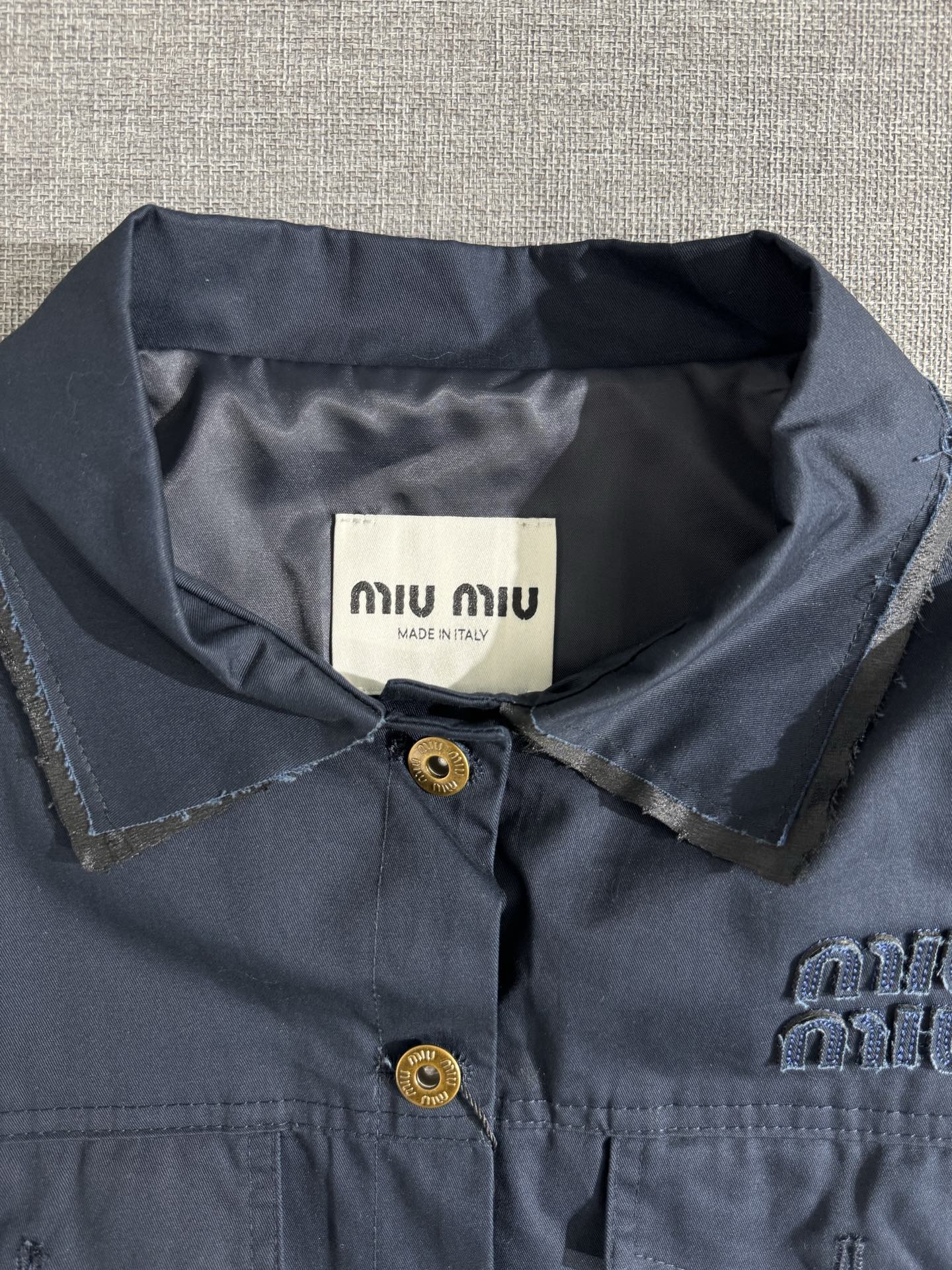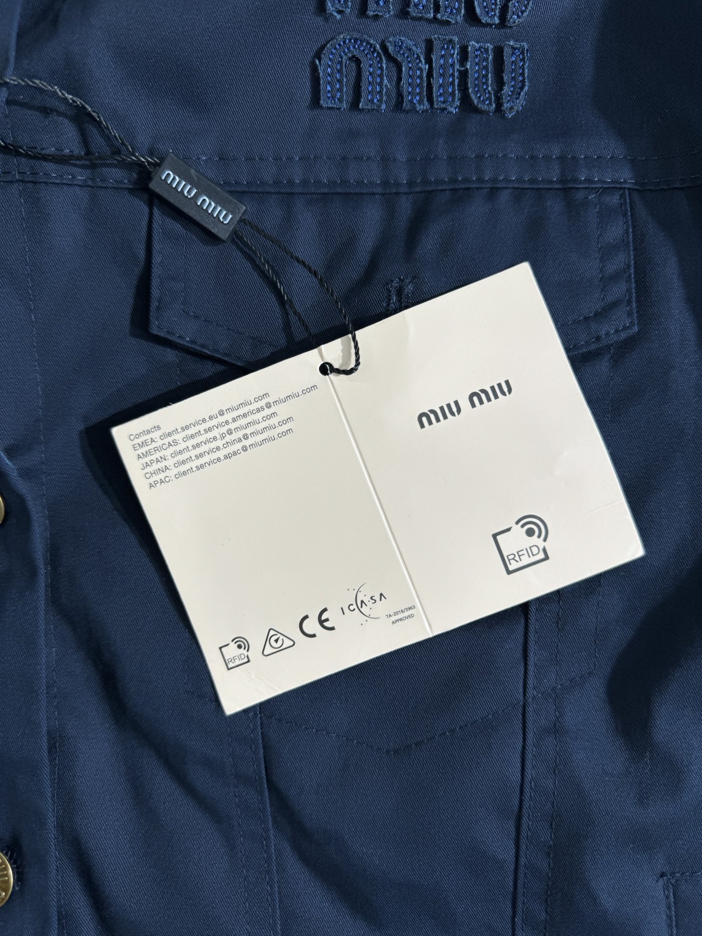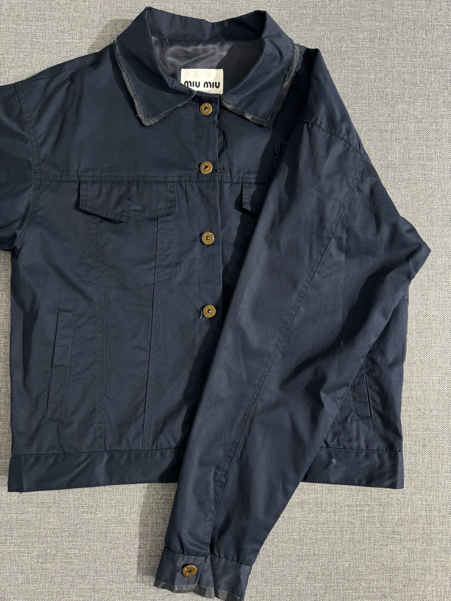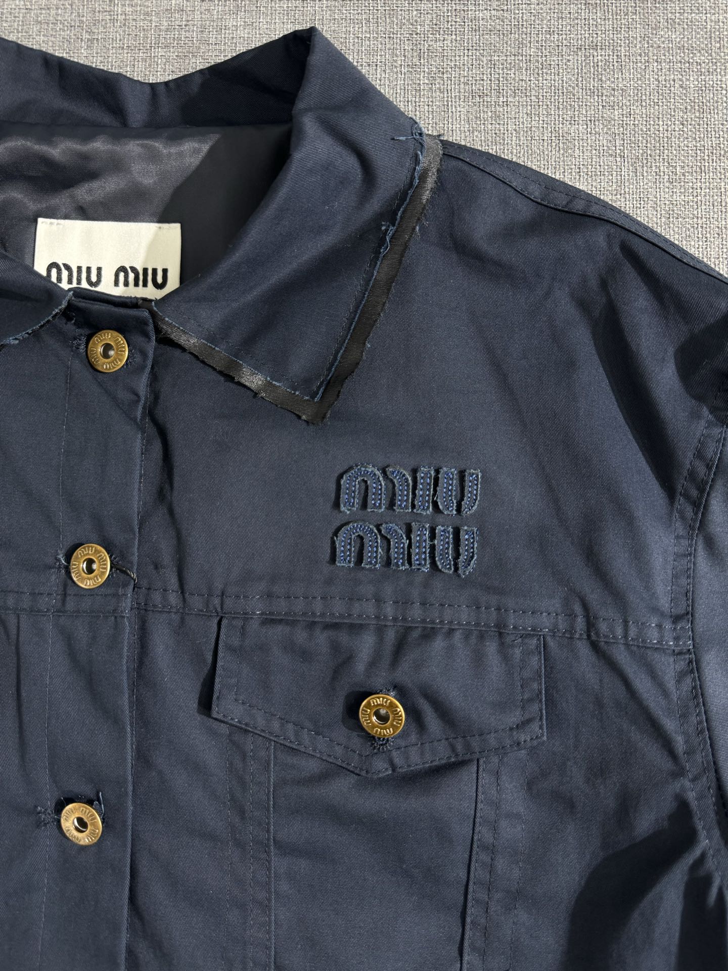 This Miu Miuu jacket is a versatile and chic addition to any wardrobe. With its high-quality materials and attention to detail, it’s sure to become a favorite piece for any fashion-conscious individual.