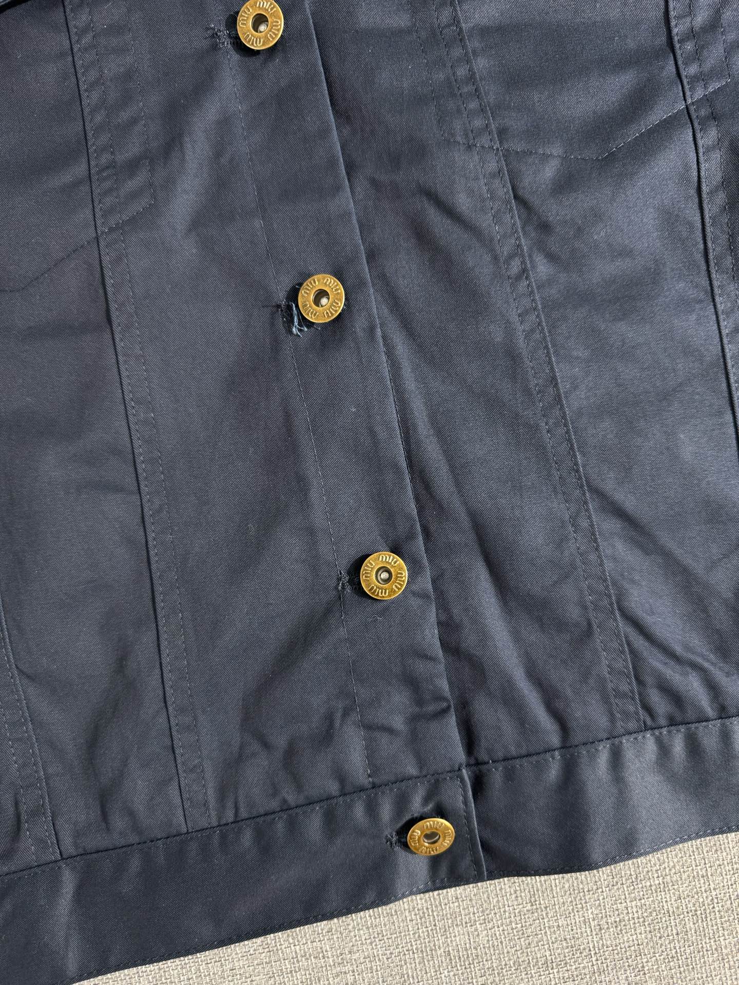Classic Miu Miuu jacket with a slightly loose fit. Features gold buttons and a contrasting collar. Made from high-density mercerized cotton.