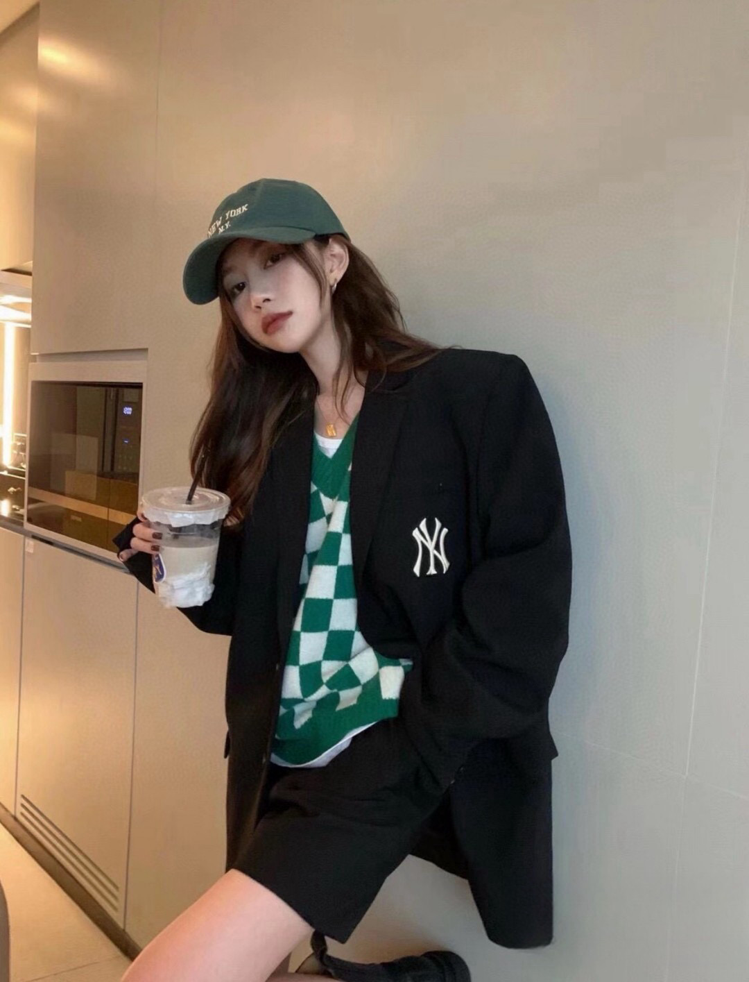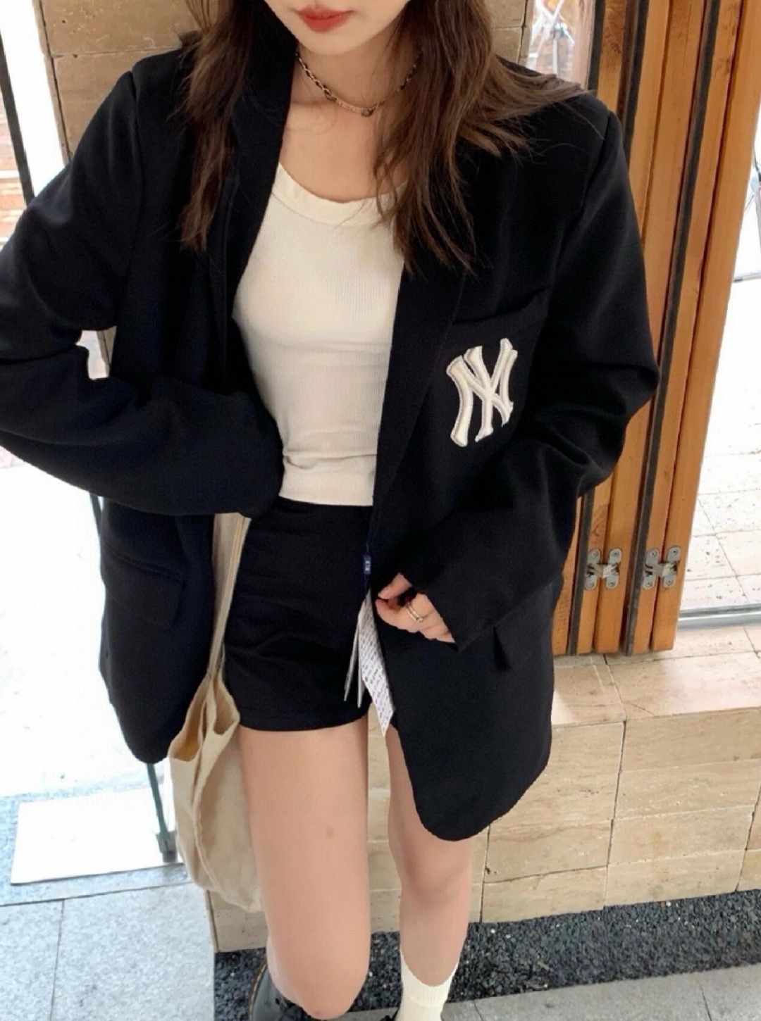 Tags: Casual Formal Blazer, Embroidered Logo Blazer, Fashion Blazer, Mlb Yankees Blazer, Oversized Blazer, Street Style Blazer