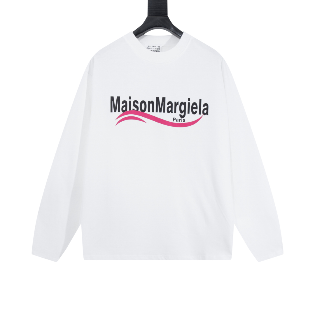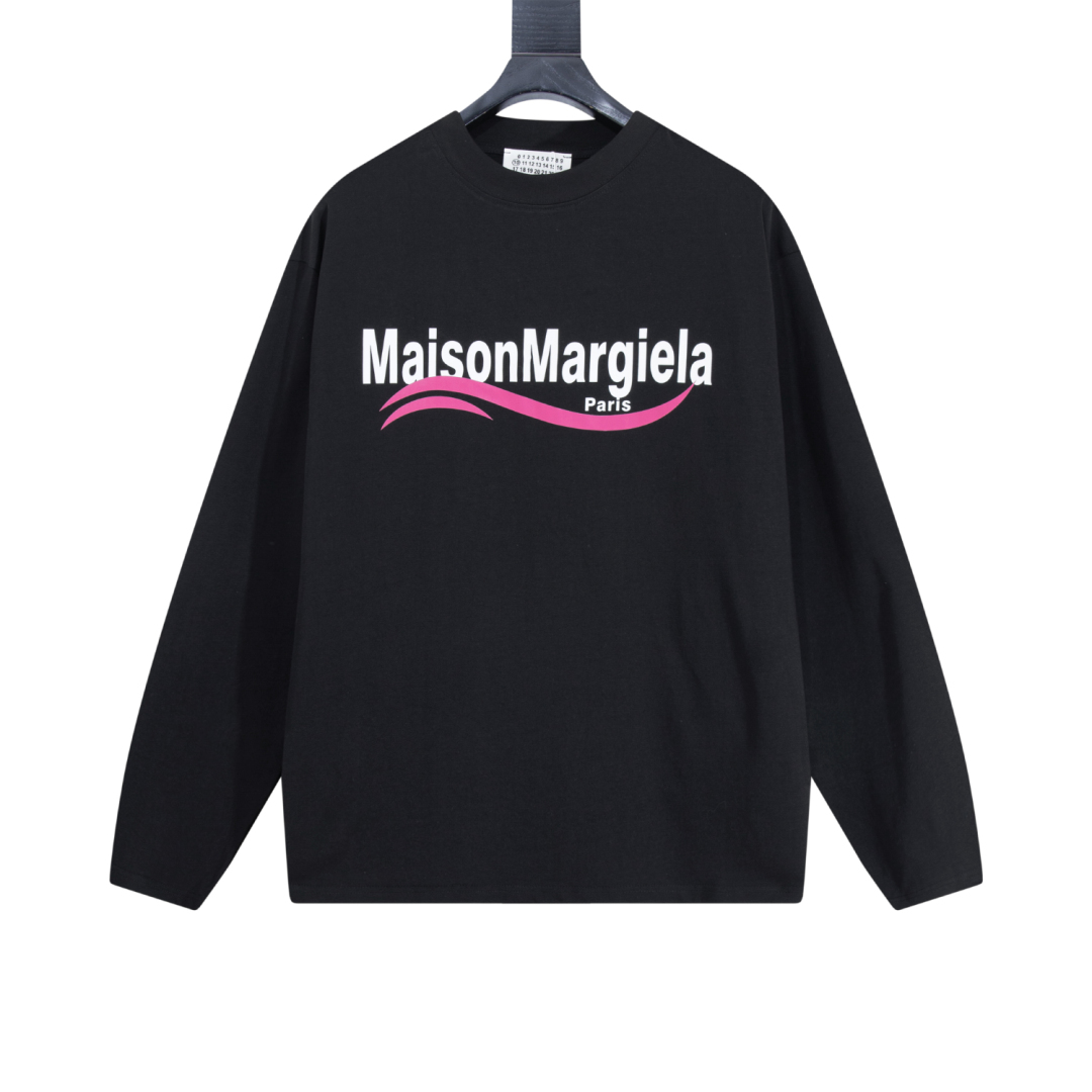 Tags: Black And White Longsleeve, Casual Long Sleeve Top, Crew Neck Long Sleeve, Designer Long Sleeve T-Shirt, Maison Margiela Long Sleeve, Pink Wave Logo Shirt