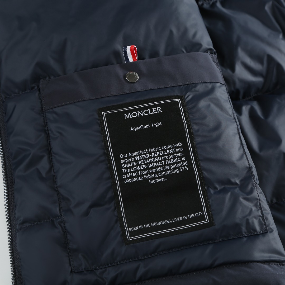 Tags: Hooded Winter Coat, Lightweight Puffer, Moncler Down Jacket, Navy Blue Jacket, Polyester Jacket, Windproof Jacket