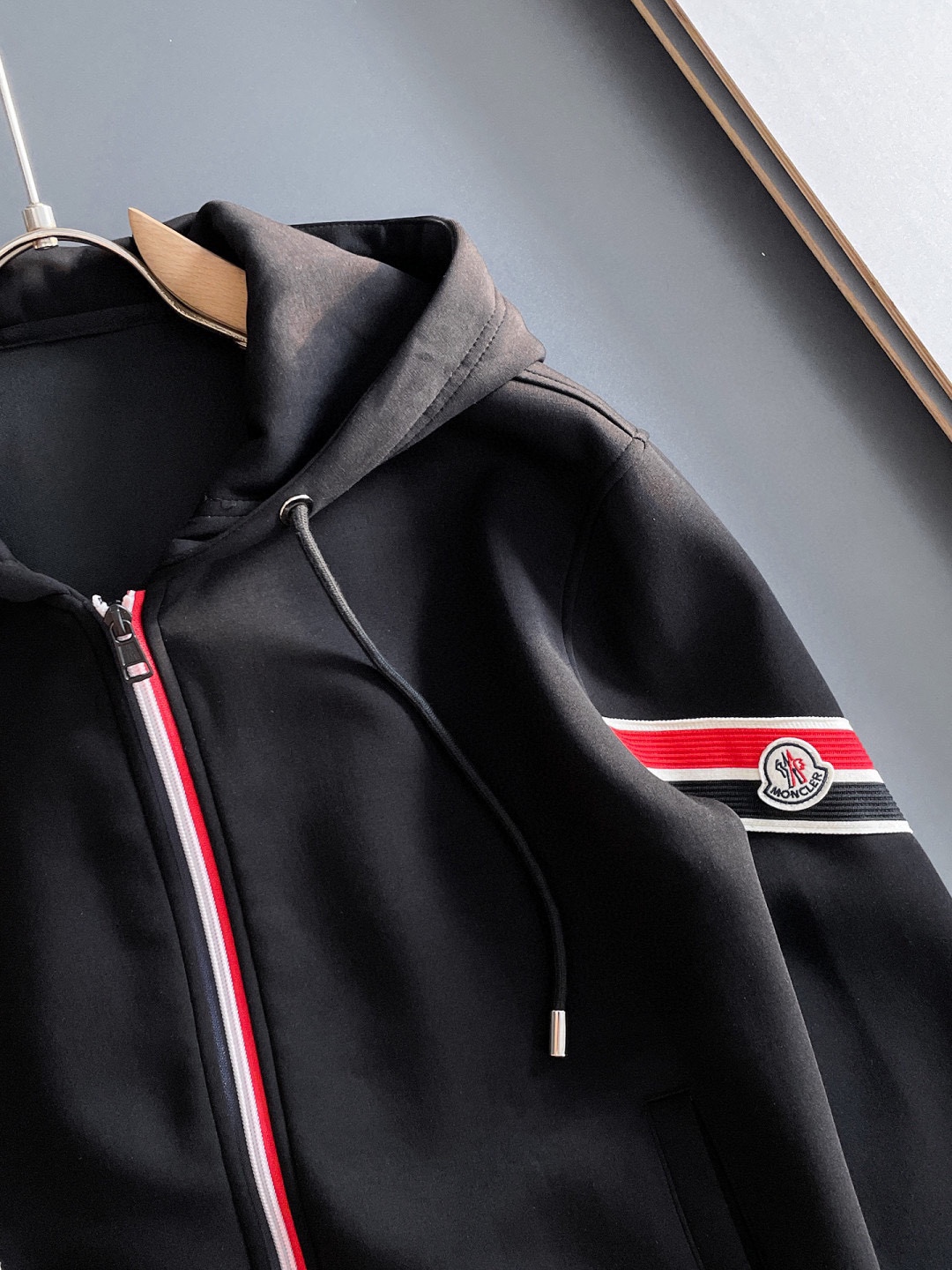 - Stylish Design: Features a modern zip-up hoodie and matching sweatpants with the iconic Moncler logo.