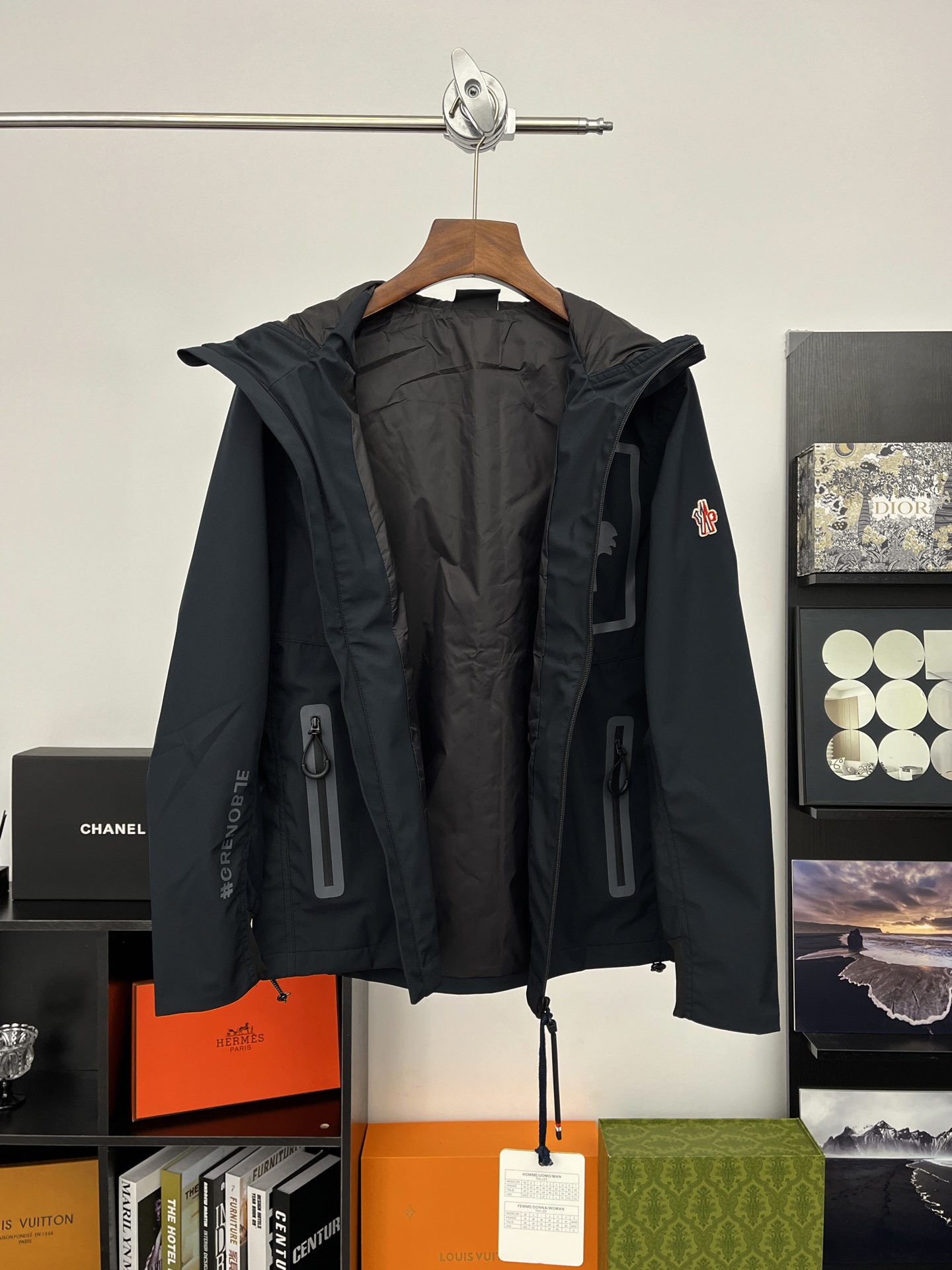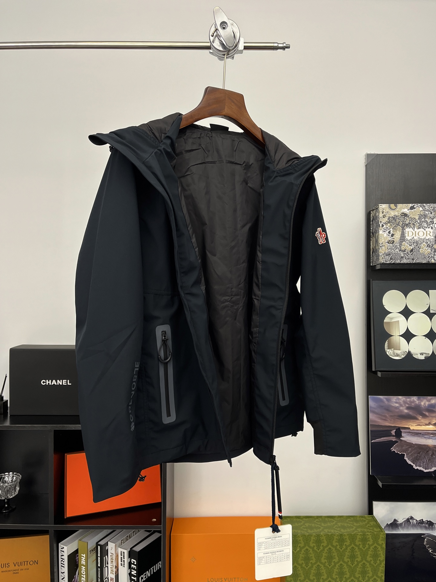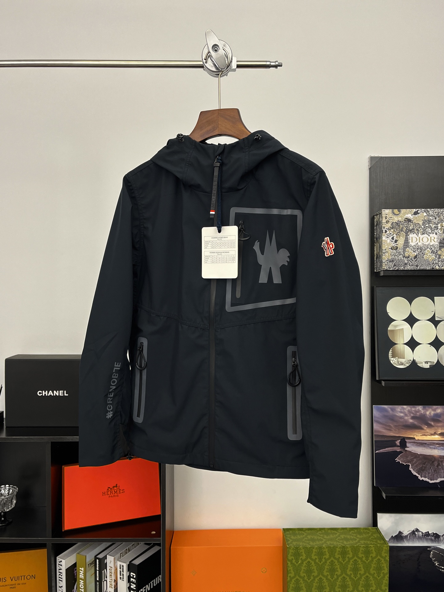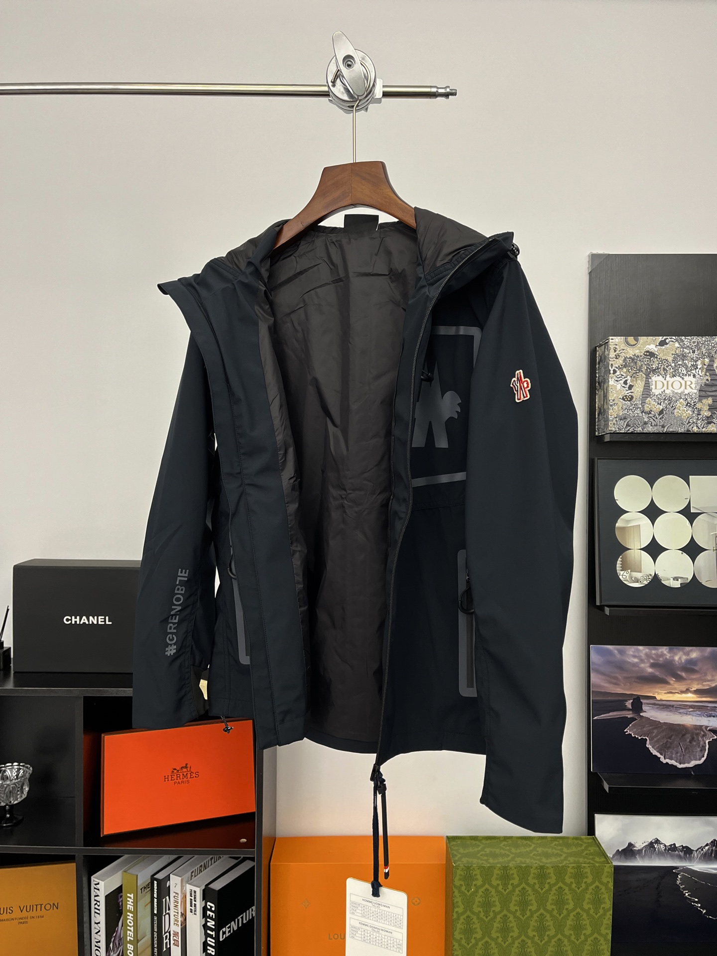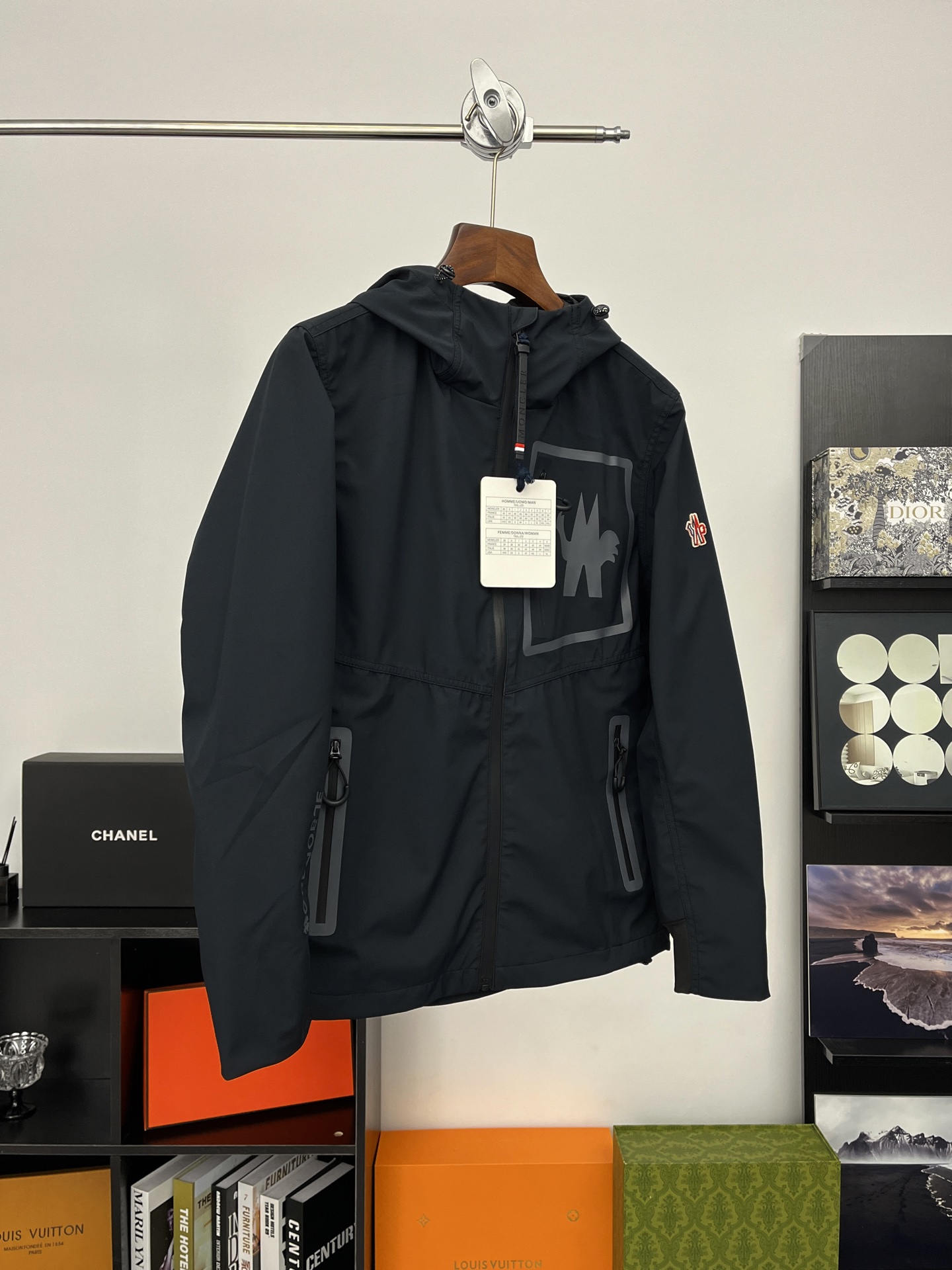 Tags: Designer Windbreaker, Mens Black Windbreaker, Moncler Outdoor Clothing, Moncler Windbreaker Jacket, Stylish Rain Jacket, Waterproof Outdoor Jacket