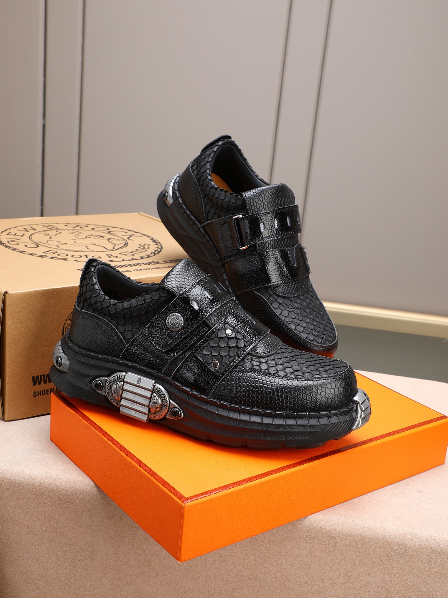 - Material: Leather Upper, Rubber Sole, Metal Accents