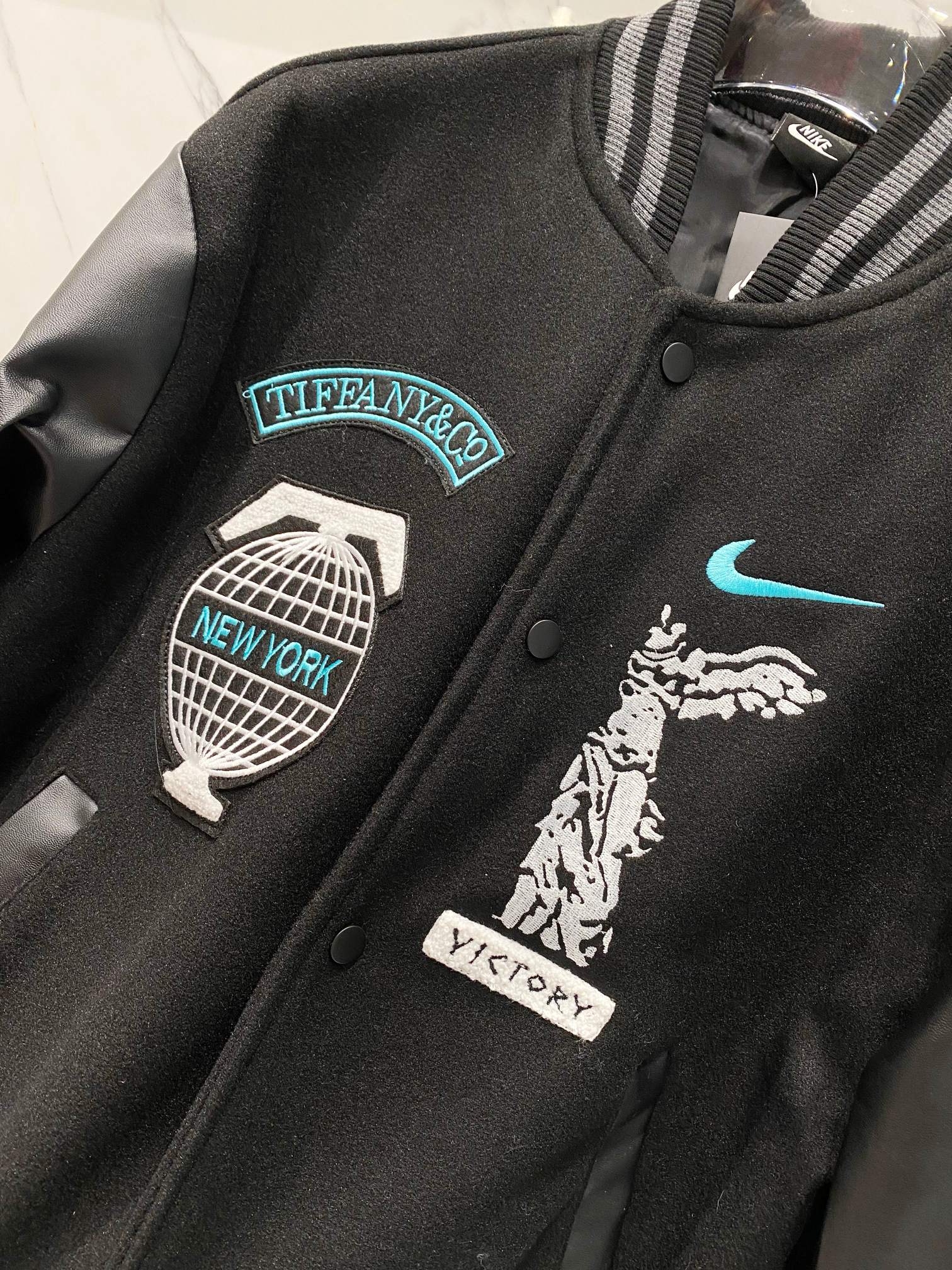 Elevate your style with this exclusive Nike x Tiffany & Co. varsity jacket. Premium materials and intricate embroidery. Perfect for any outfit!