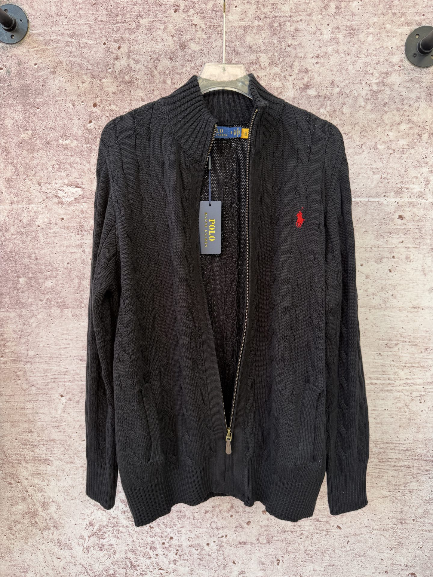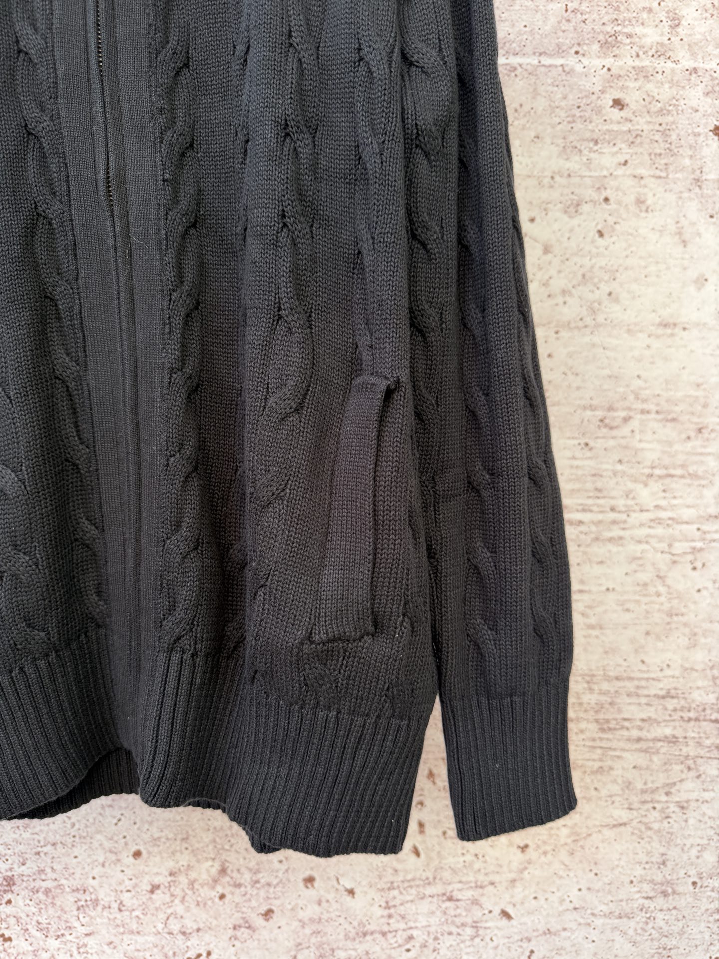 Elevate your style with this Polo Ralph Lauren full-zip cable knit sweater. Crafted from soft cotton, perfect for layering or wearing solo.