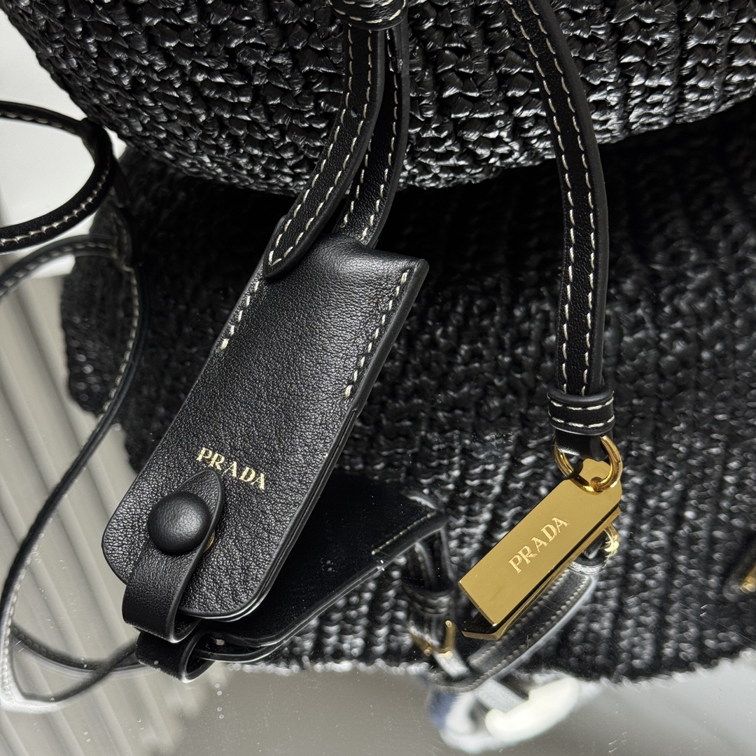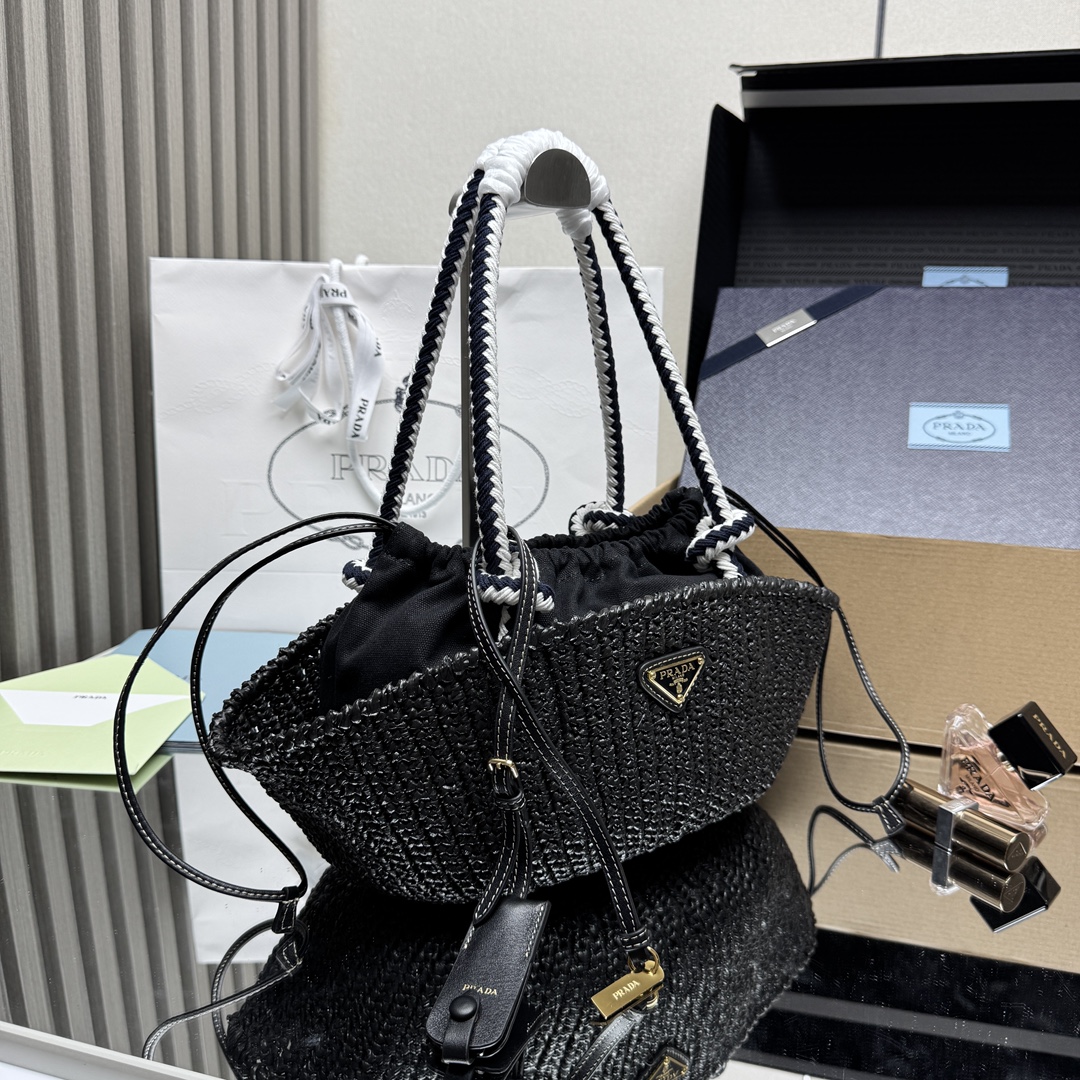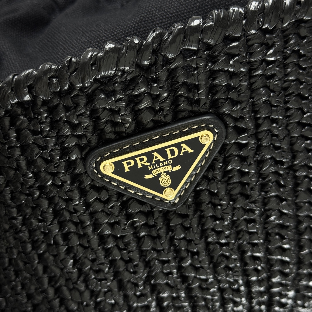 Prada 1BA463 Black Woven Raffia Basket Bag with Cotton Rope Handles