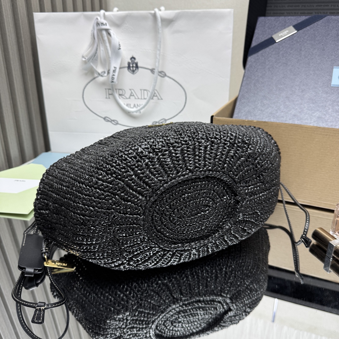 Introducing the stylish Prada 1BA463 woven basket bag, a perfect blend of vintage charm and modern elegance.