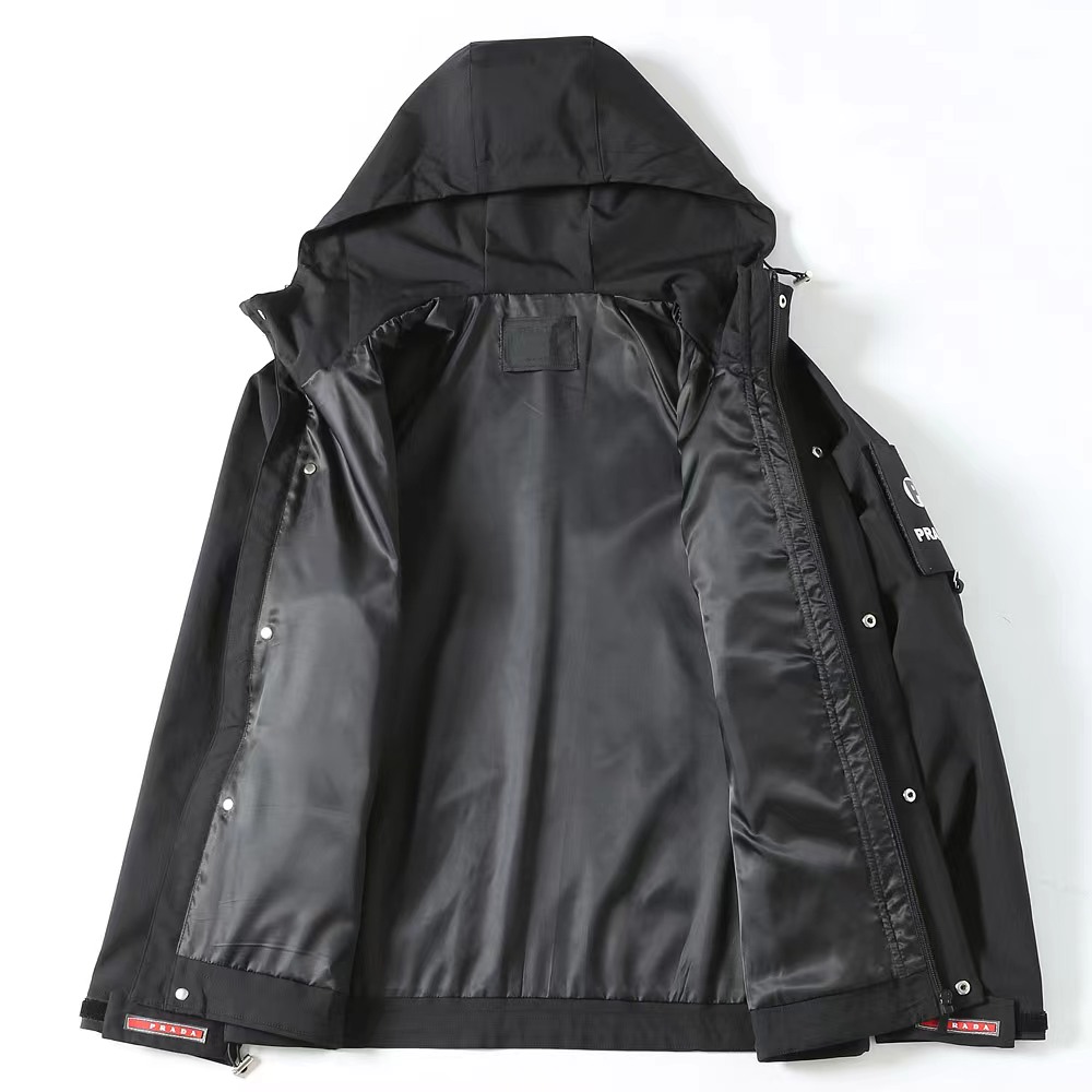 Prada 2024-25 Fall/Winter Men's Black Hooded Jacket - High-End Quality