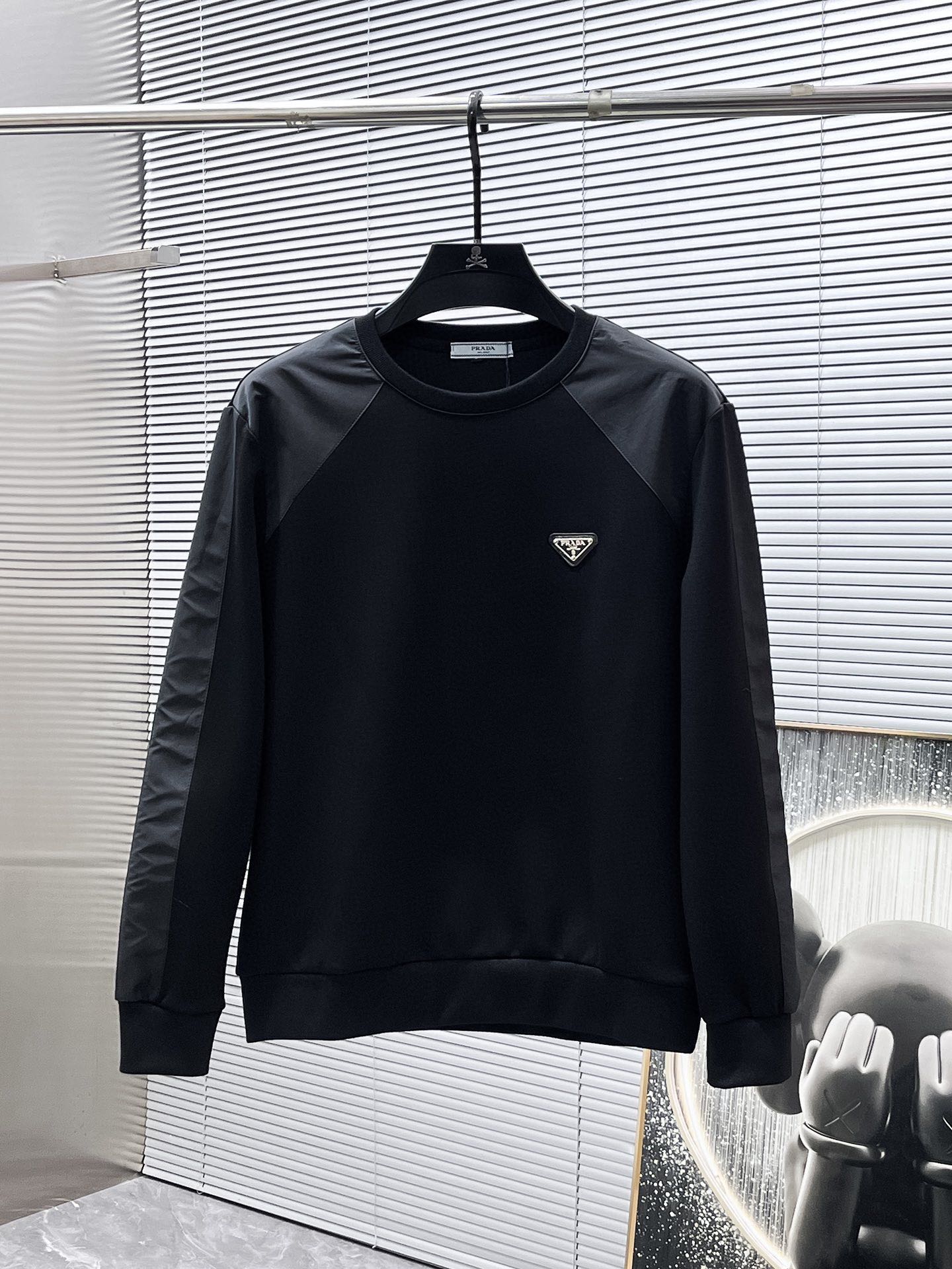 Tags: Cotton Blend Sweatshirt Set, Designer Loungewear, Mens Black Tracksuit, Prada Tracksuit, Round Neck Sweatshirt
