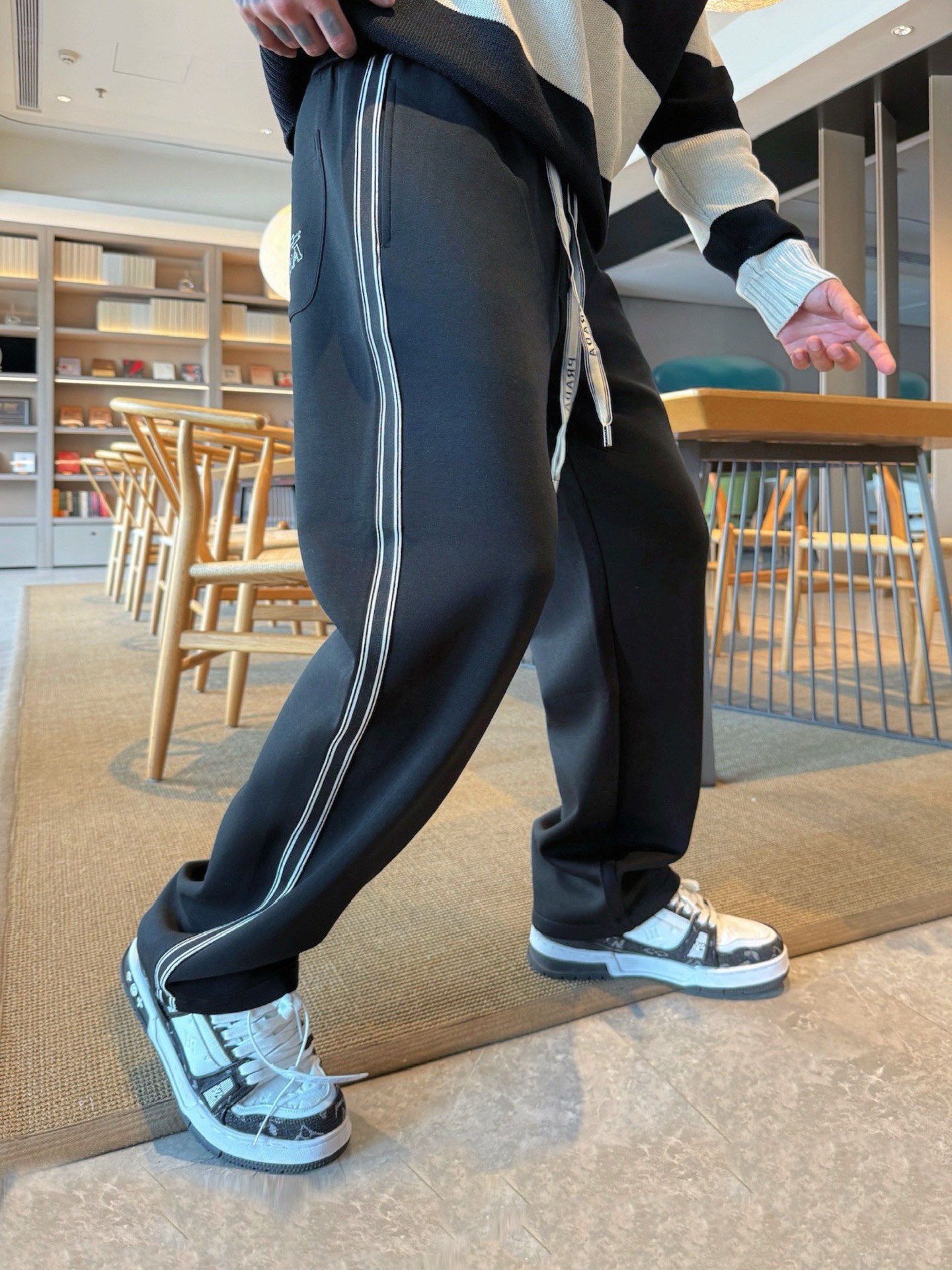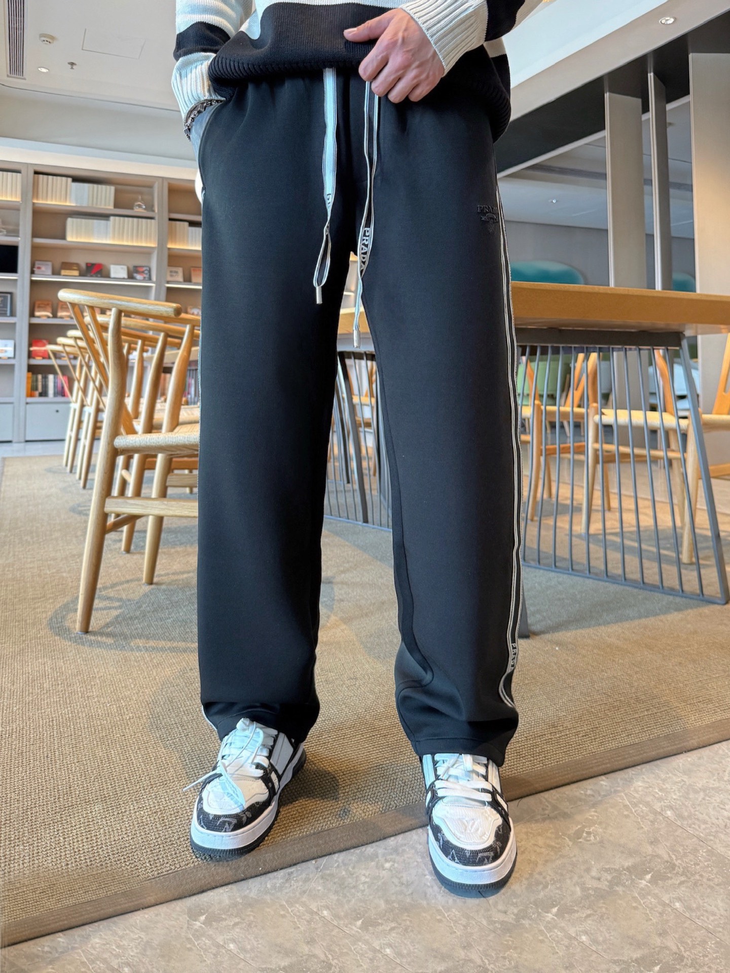Prada 2025 Fall/Winter Classic Logo Black Casual Pants For Men