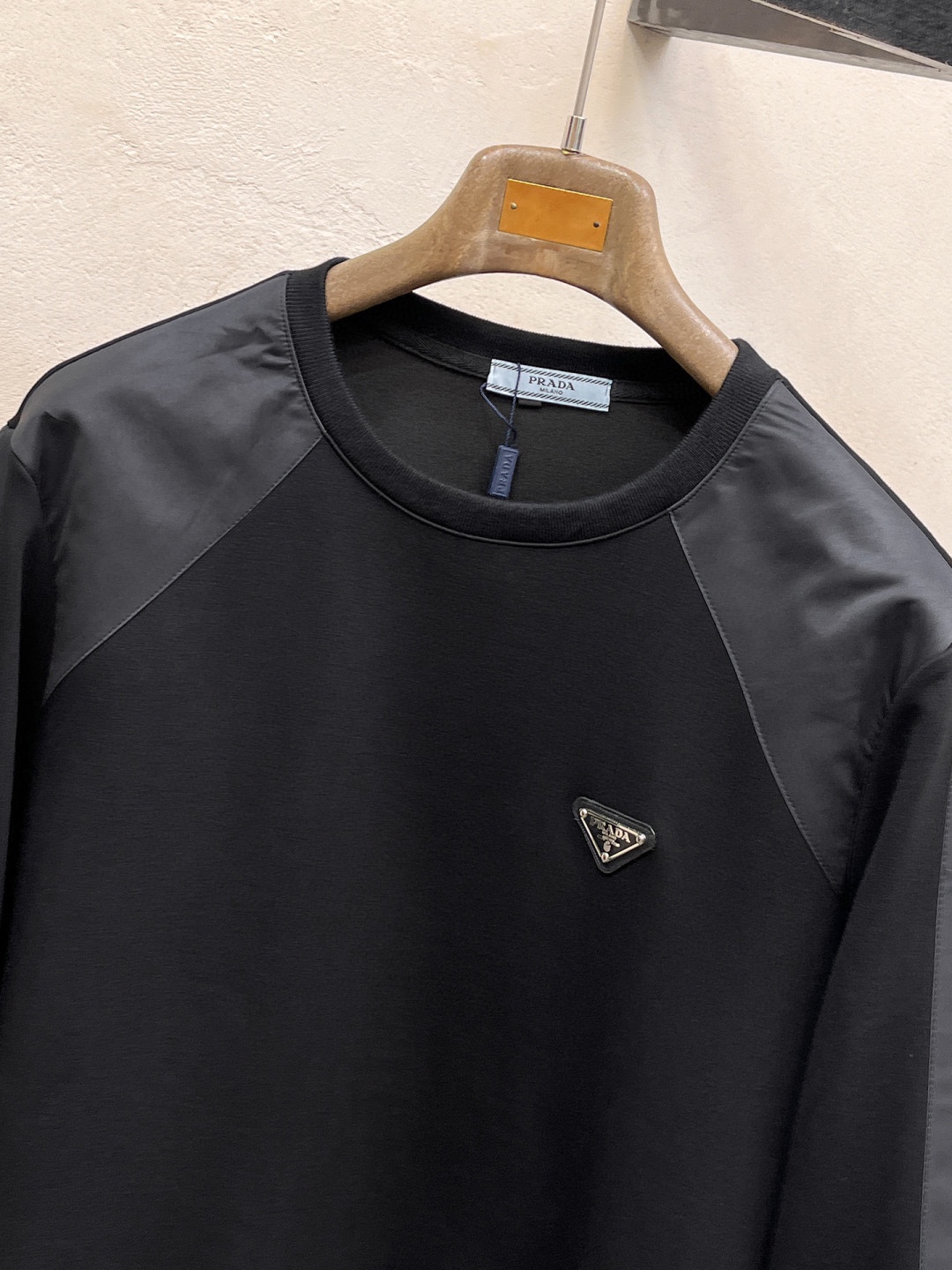 Prada 2025 New Black Round Neck Sweatshirt Set, Tencel Roman Cotton