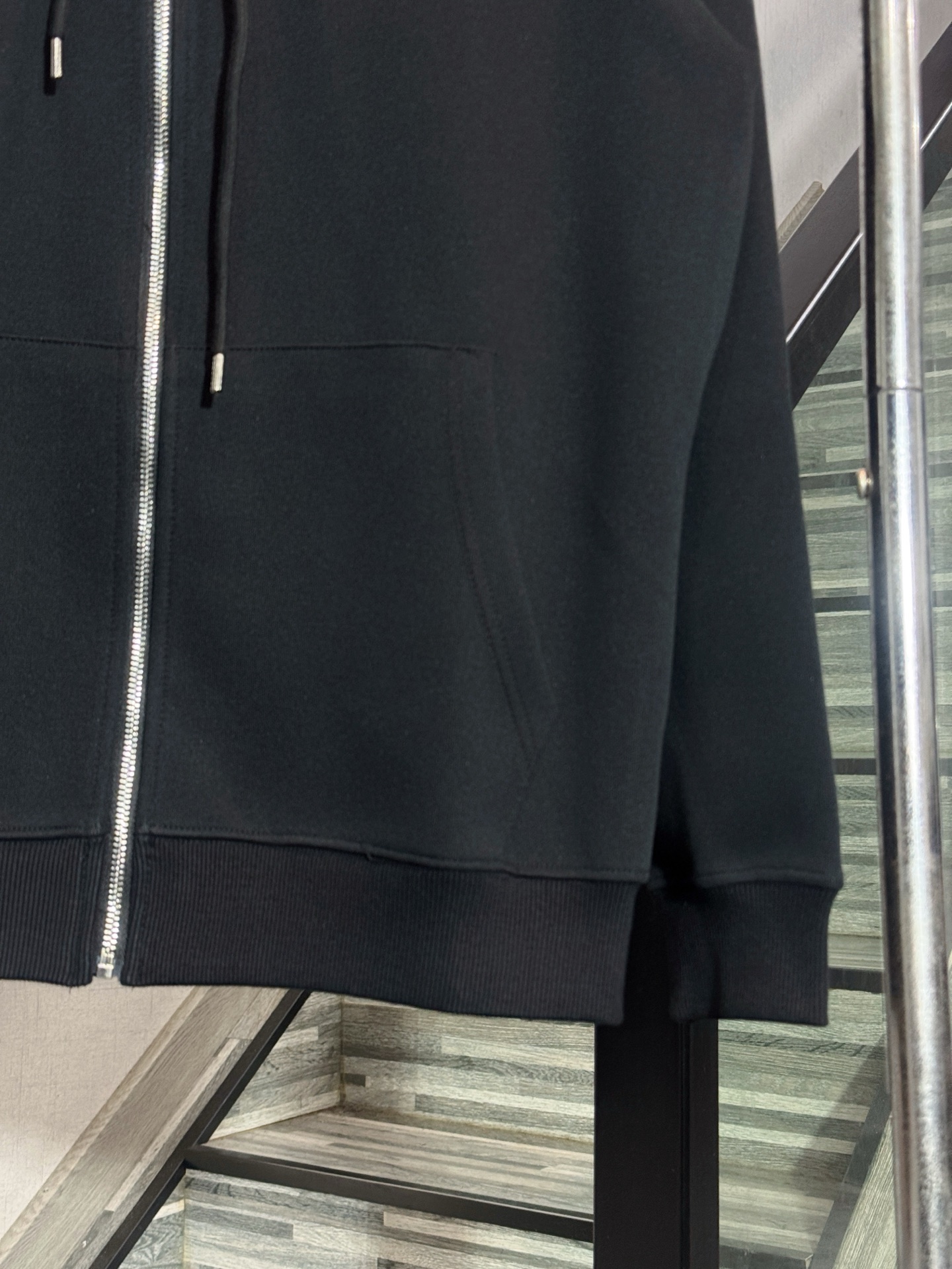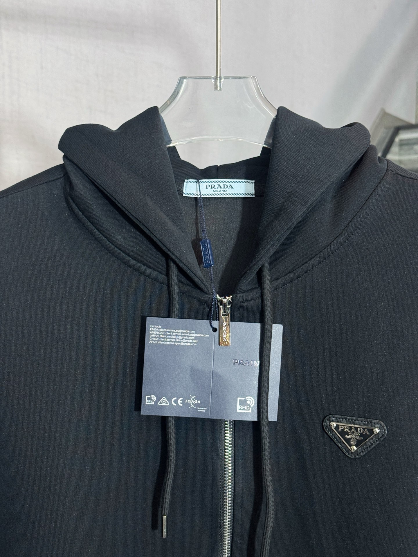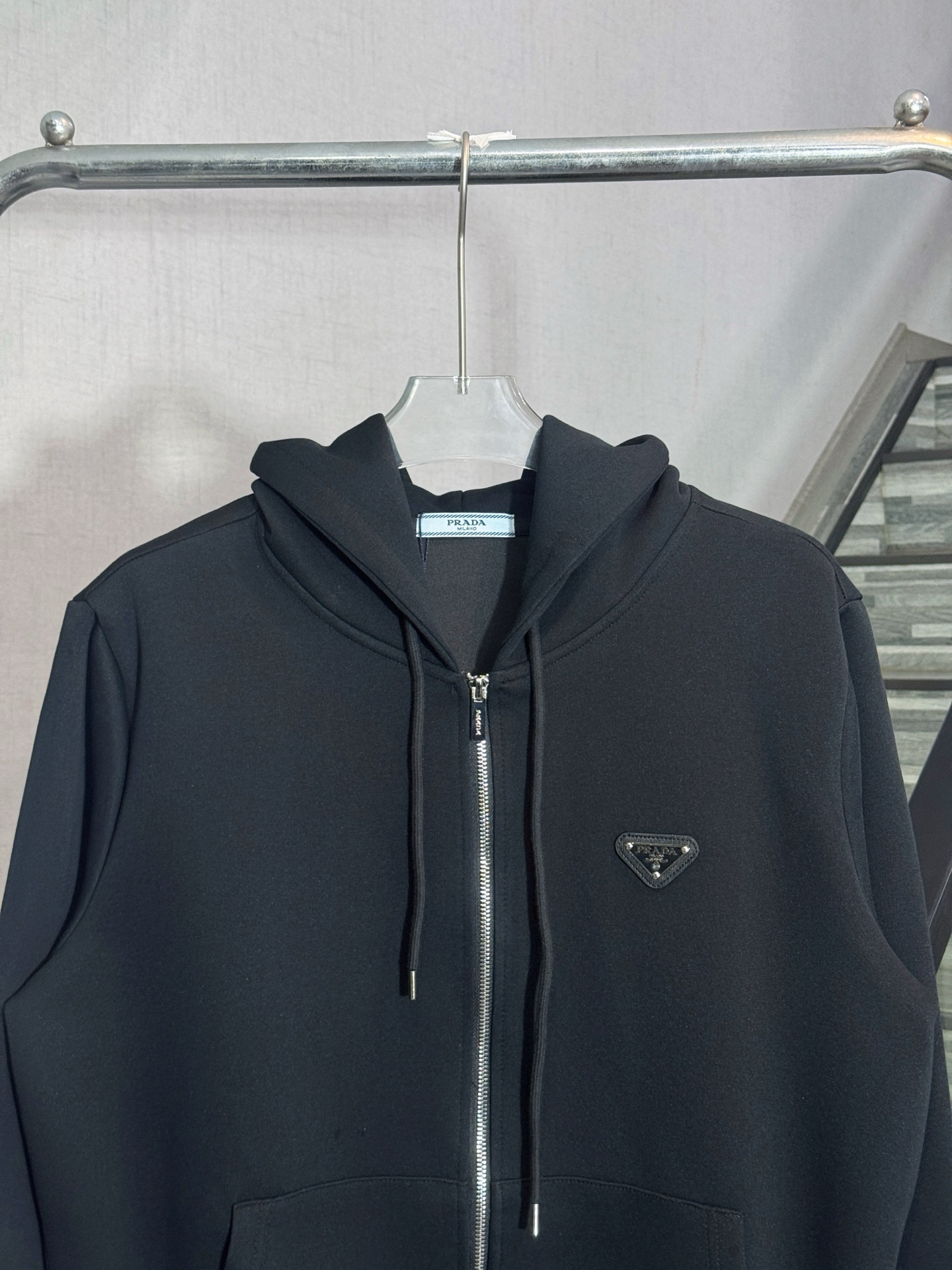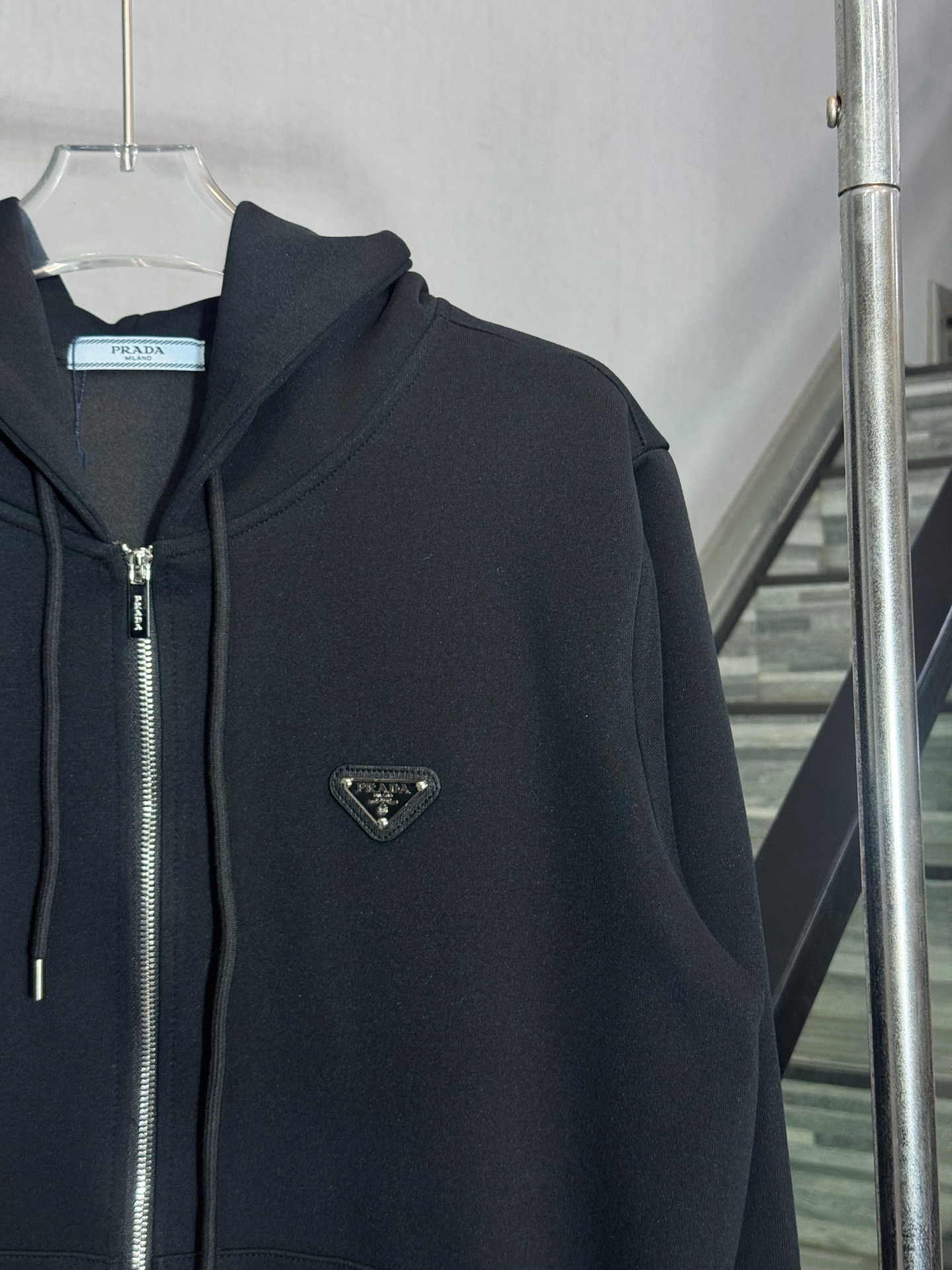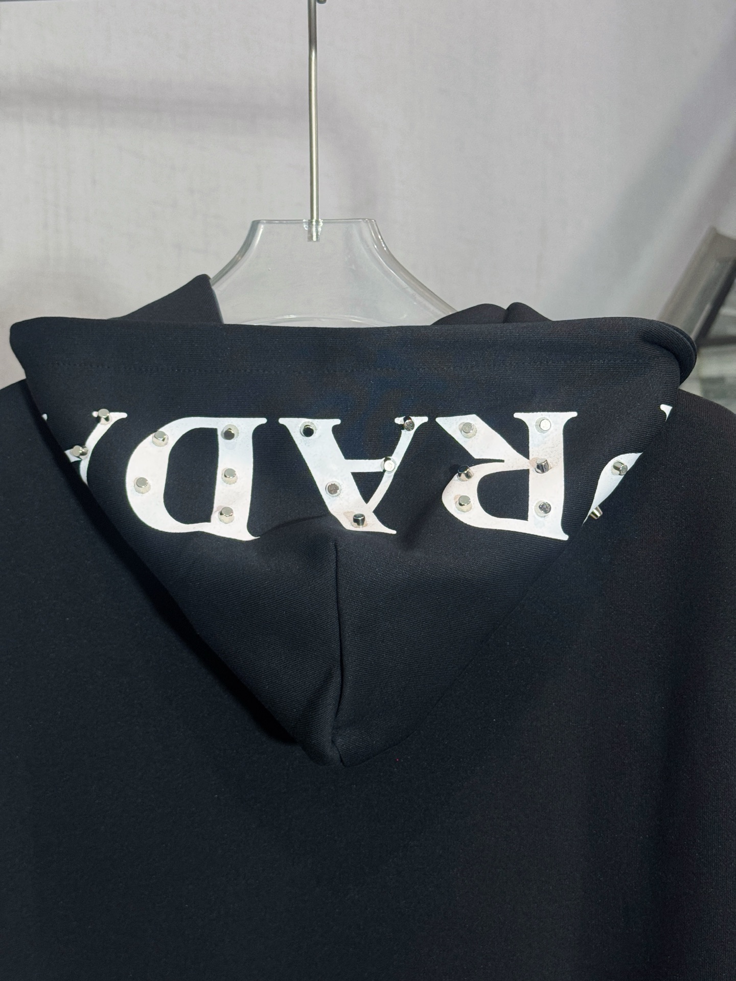 Tags: Black Zip Up Hoodie, Cotton Blend Hoodie, Designer Hoodie, Metal Logo Hoodie, Prada Hoodie, Rivet Detail Hoodie