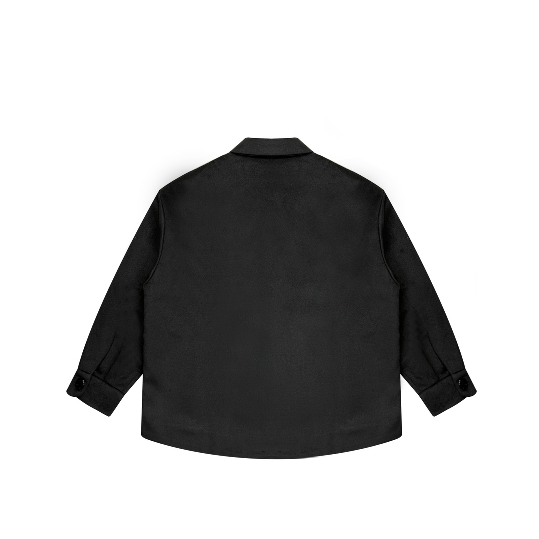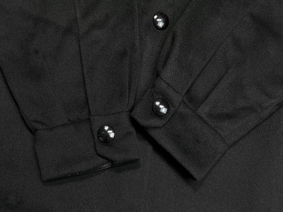 Tags: Black Wool Overshirt, Designer Shirt Jacket, Metal Logo Shirt, Prada Wool Shirt Jacket, Unisex Outerwear, Wool Blend Jacket