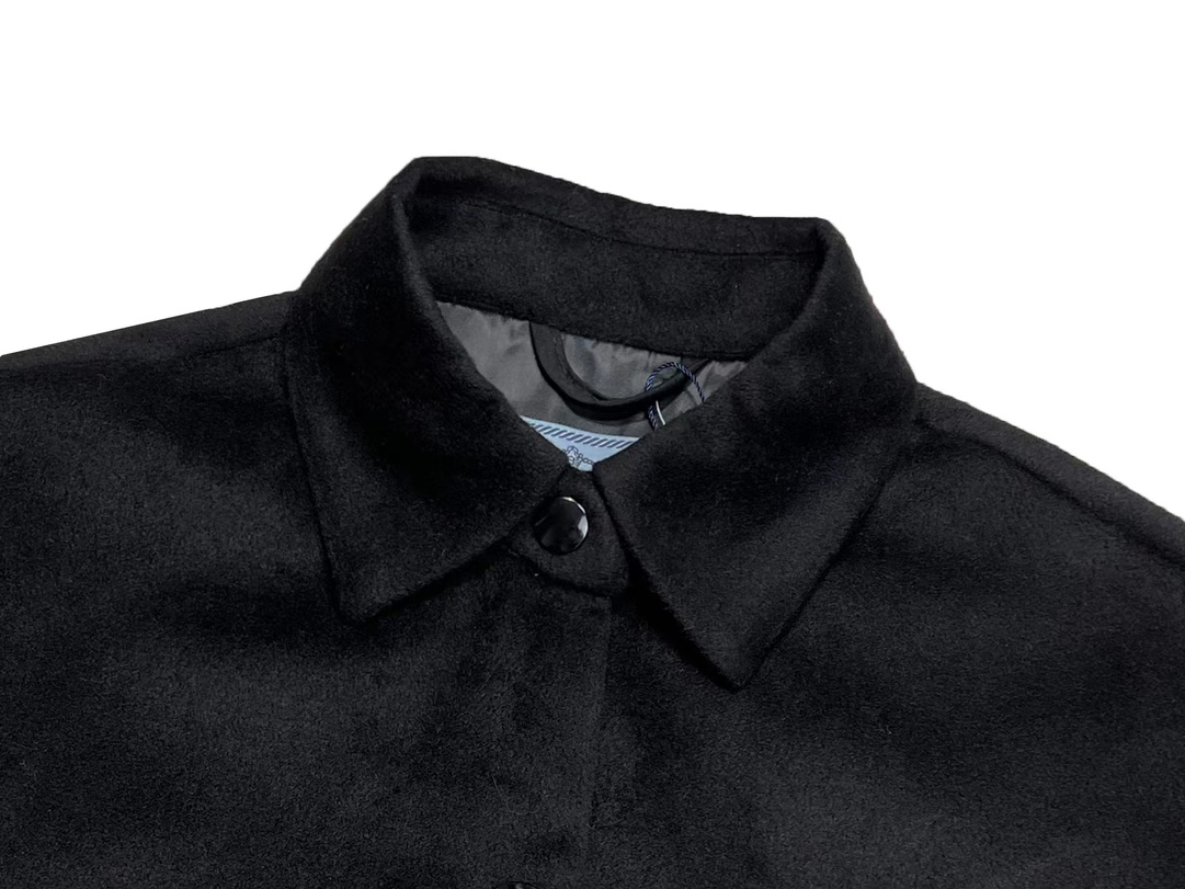 Prada Black Wool Shirt Jacket with Metal Triangle Logo - Unisex Style