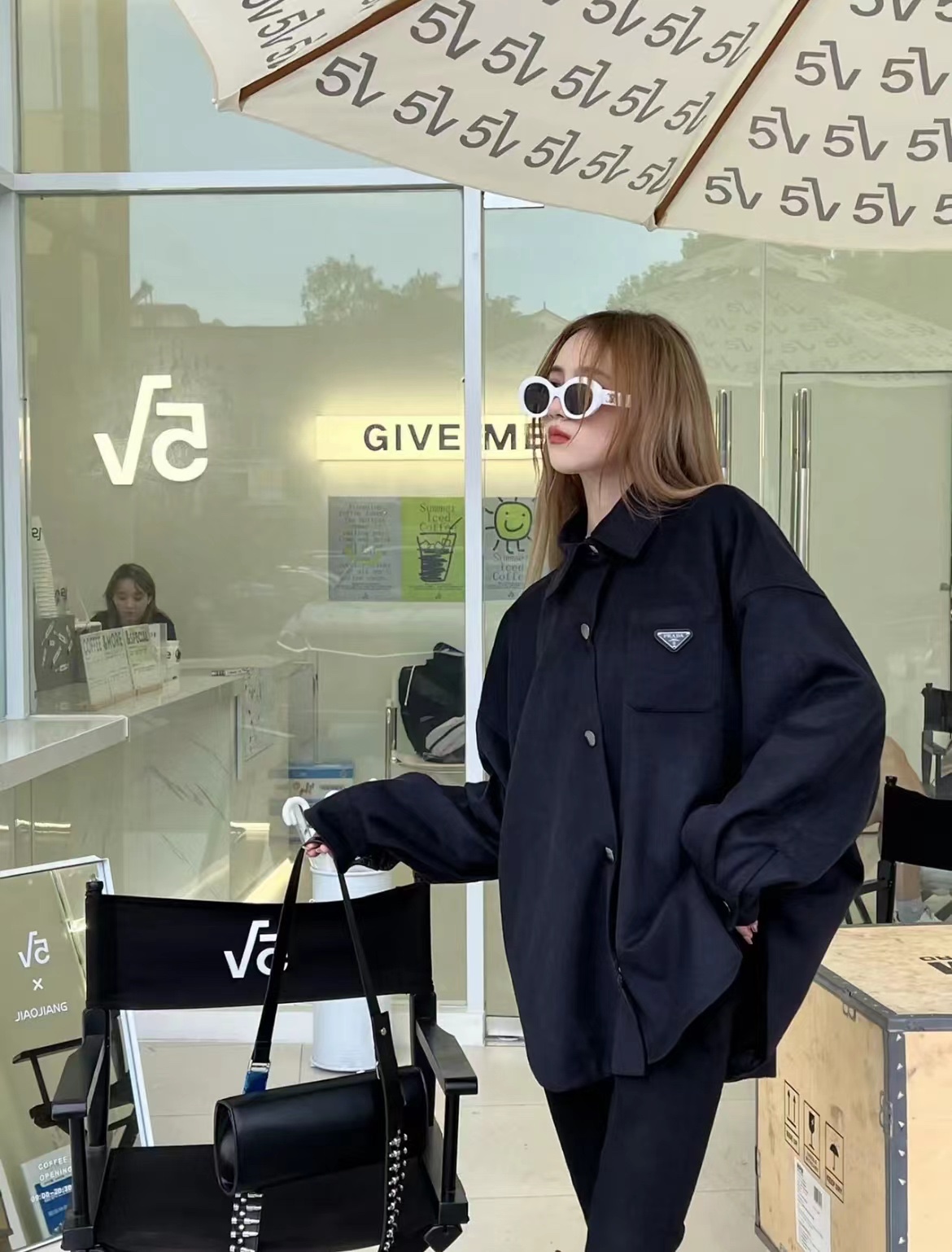 - Logo: Embellished with Prada's iconic metal triangle logo on the chest pocket.