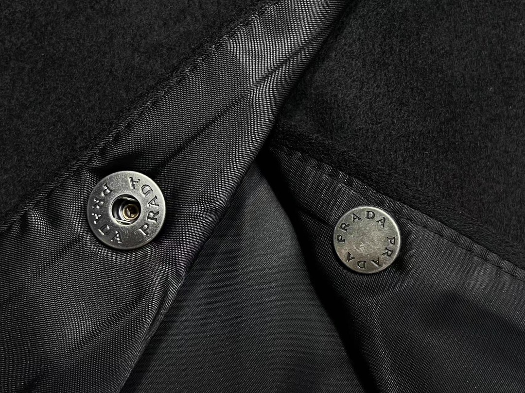 This Prada wool shirt jacket is a must-have for those who appreciate quality and style. Its timeless design and practical features make it a versatile piece for any occasion.
