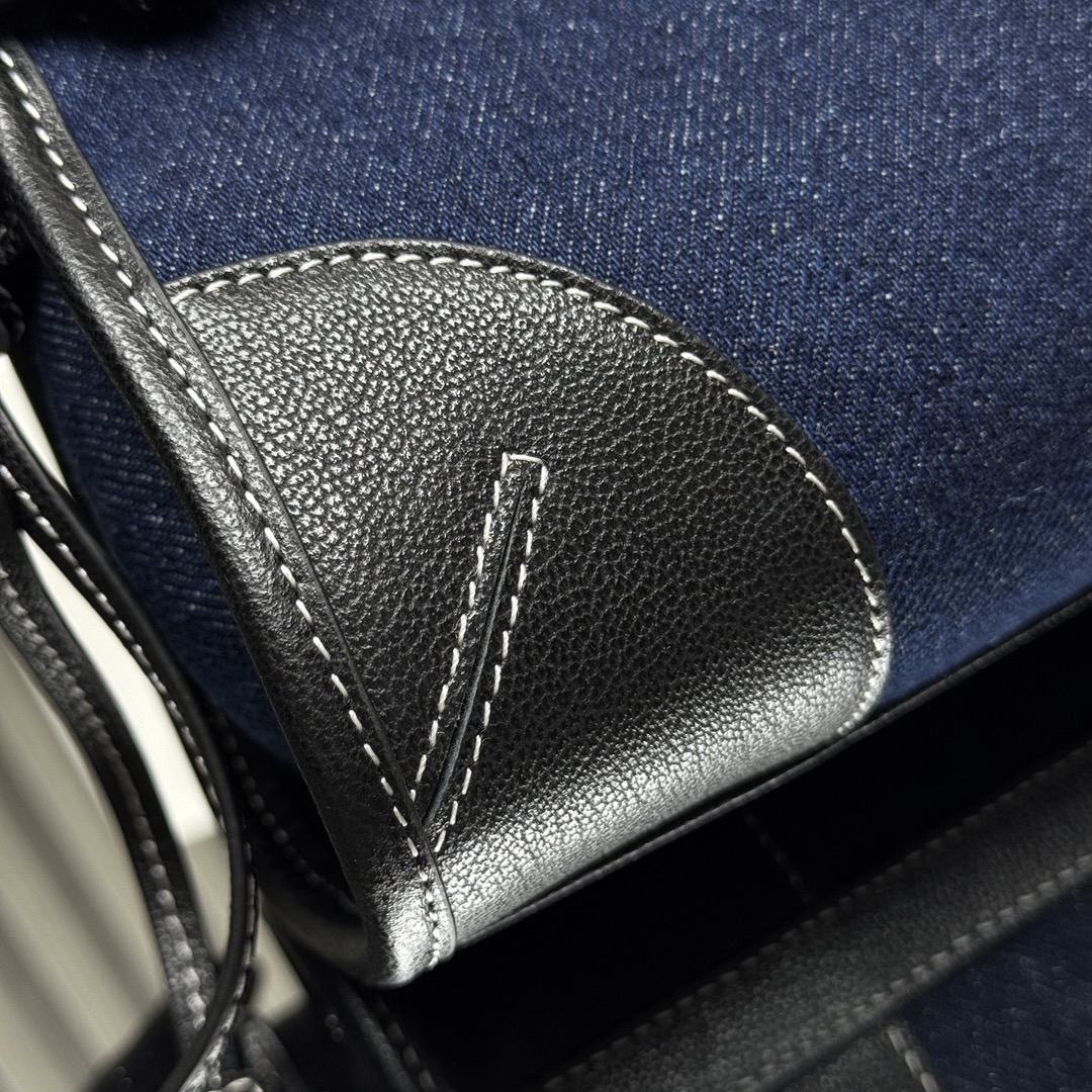 - Crafted from premium denim and leather.