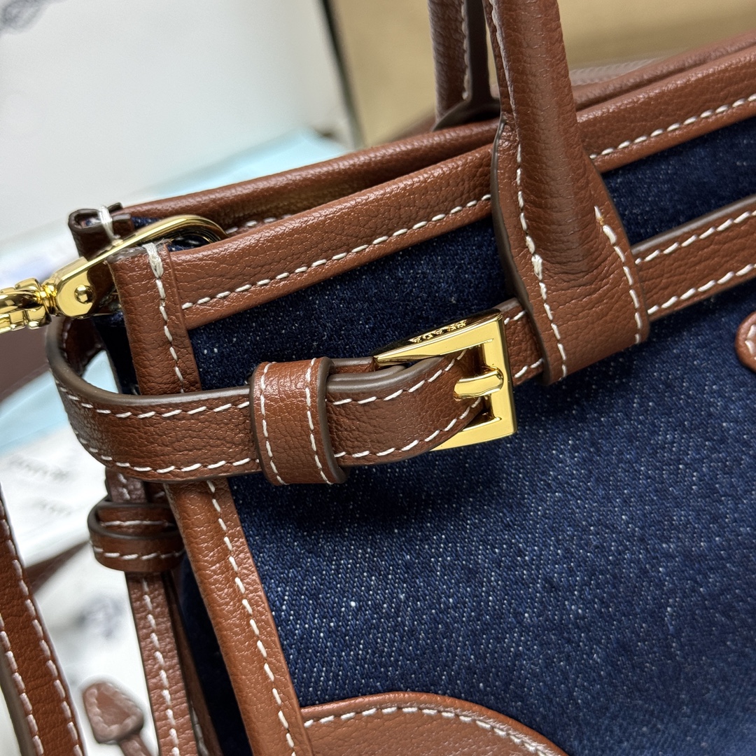 I absolutely love this Prada mini bag! The denim and leather combination is so unique and stylish. It's the perfect size for my essentials and I get compliments everywhere I go!