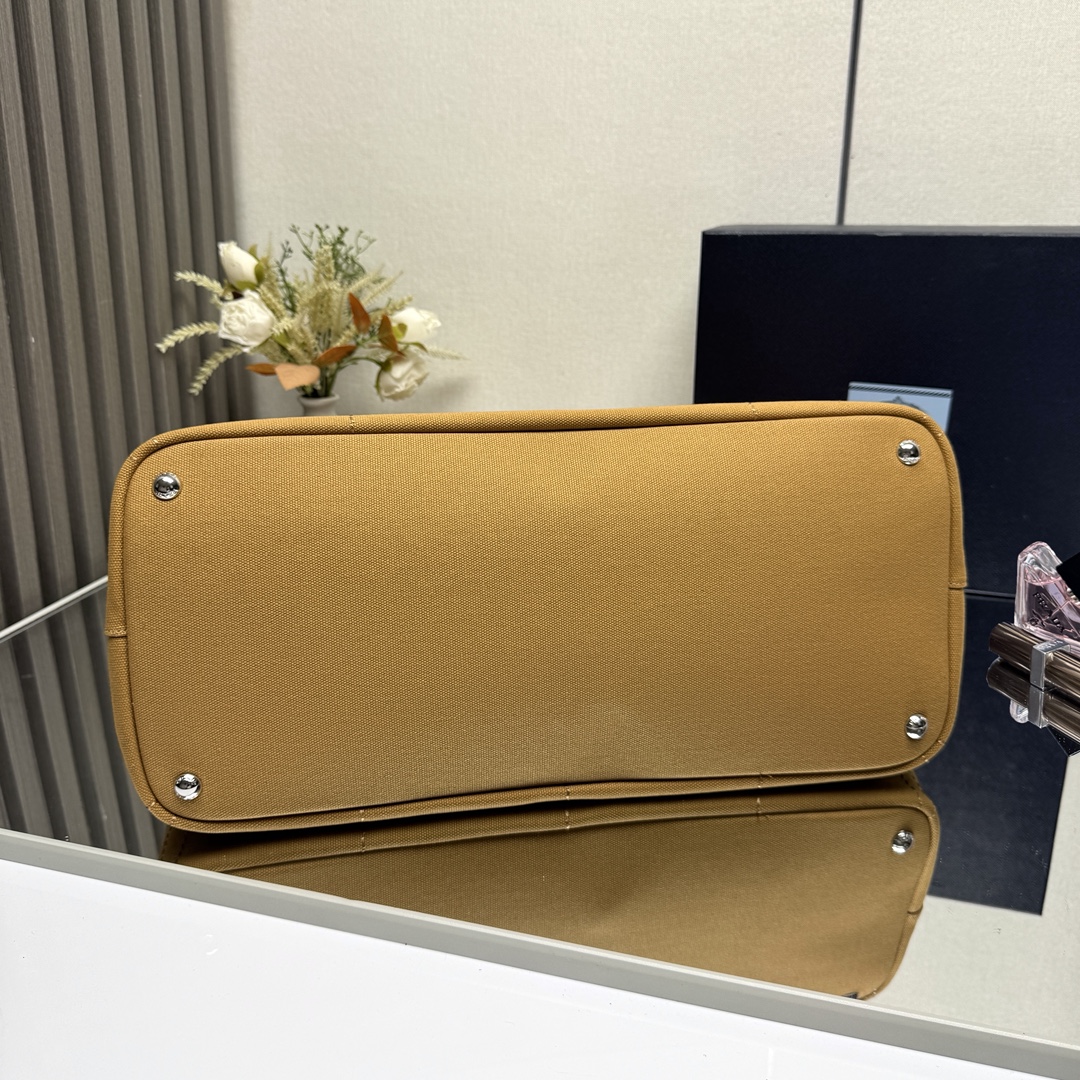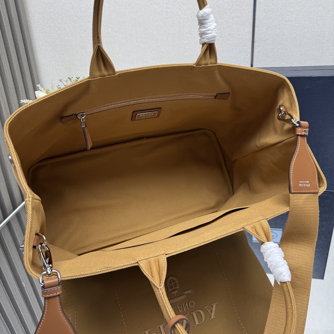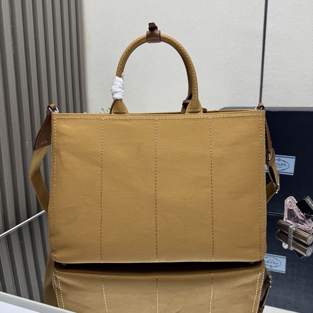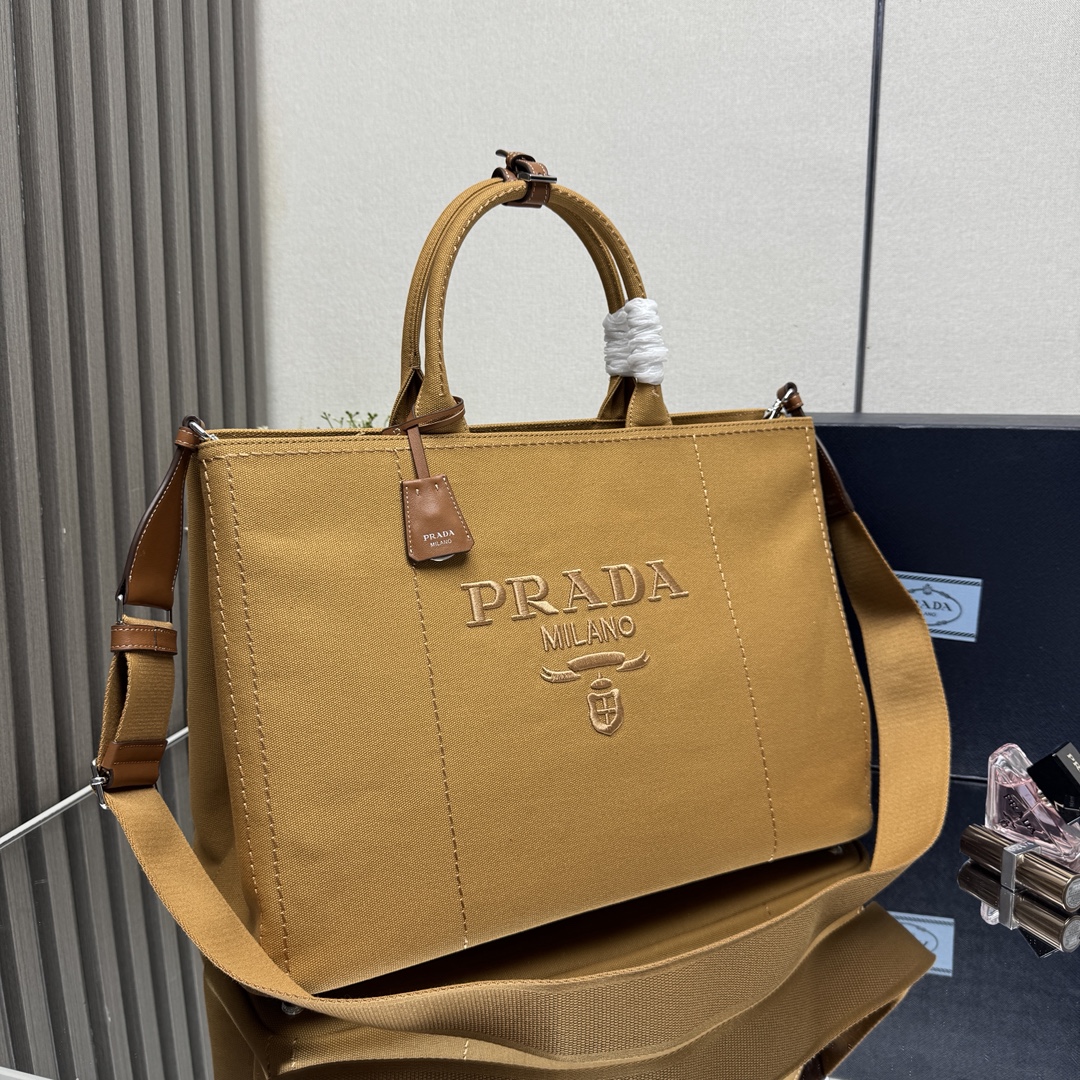 Elevate your style with this PRADA canvas tote. A blend of classic design and ample space for all your essentials. Perfect for any occasion.