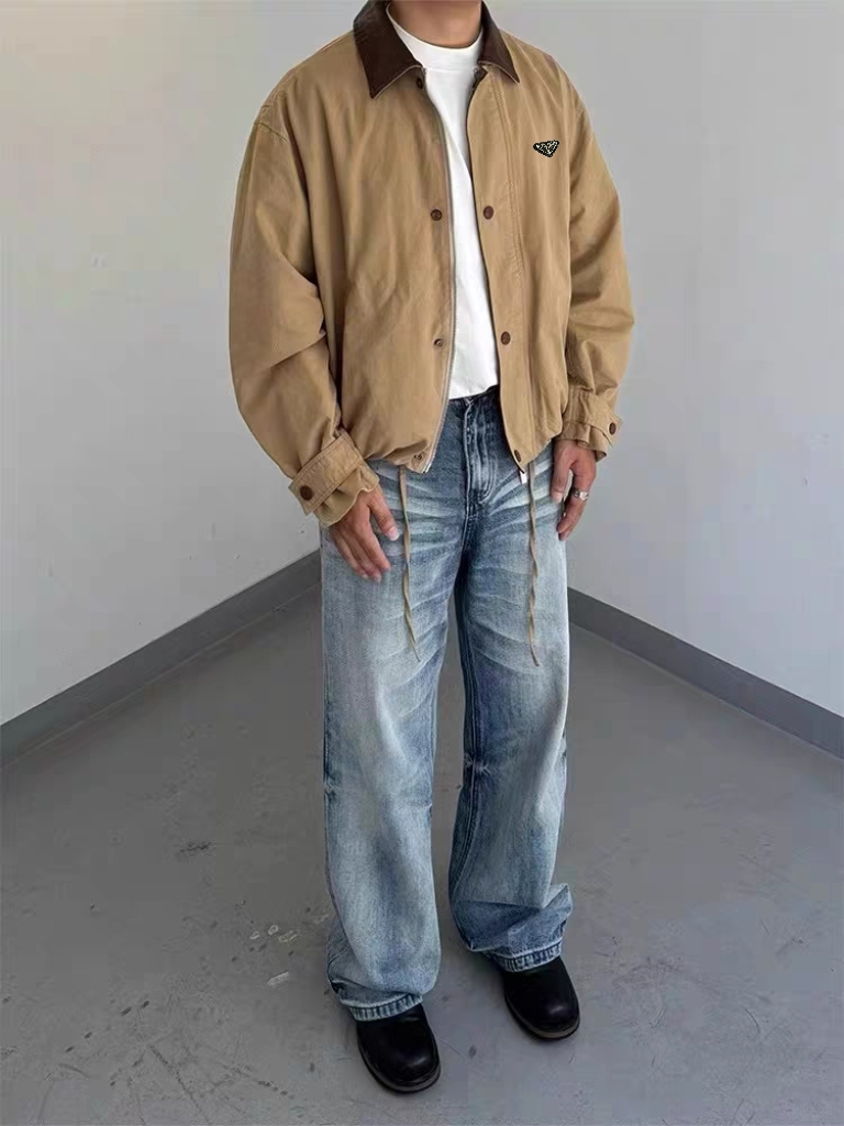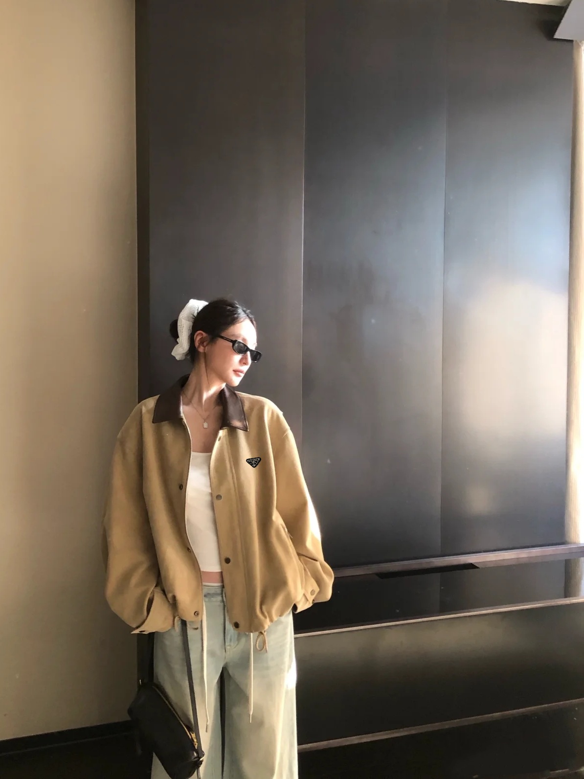 Prada Fall Barn Style Leather Collar Jacket - Retro Fashion Outerwear