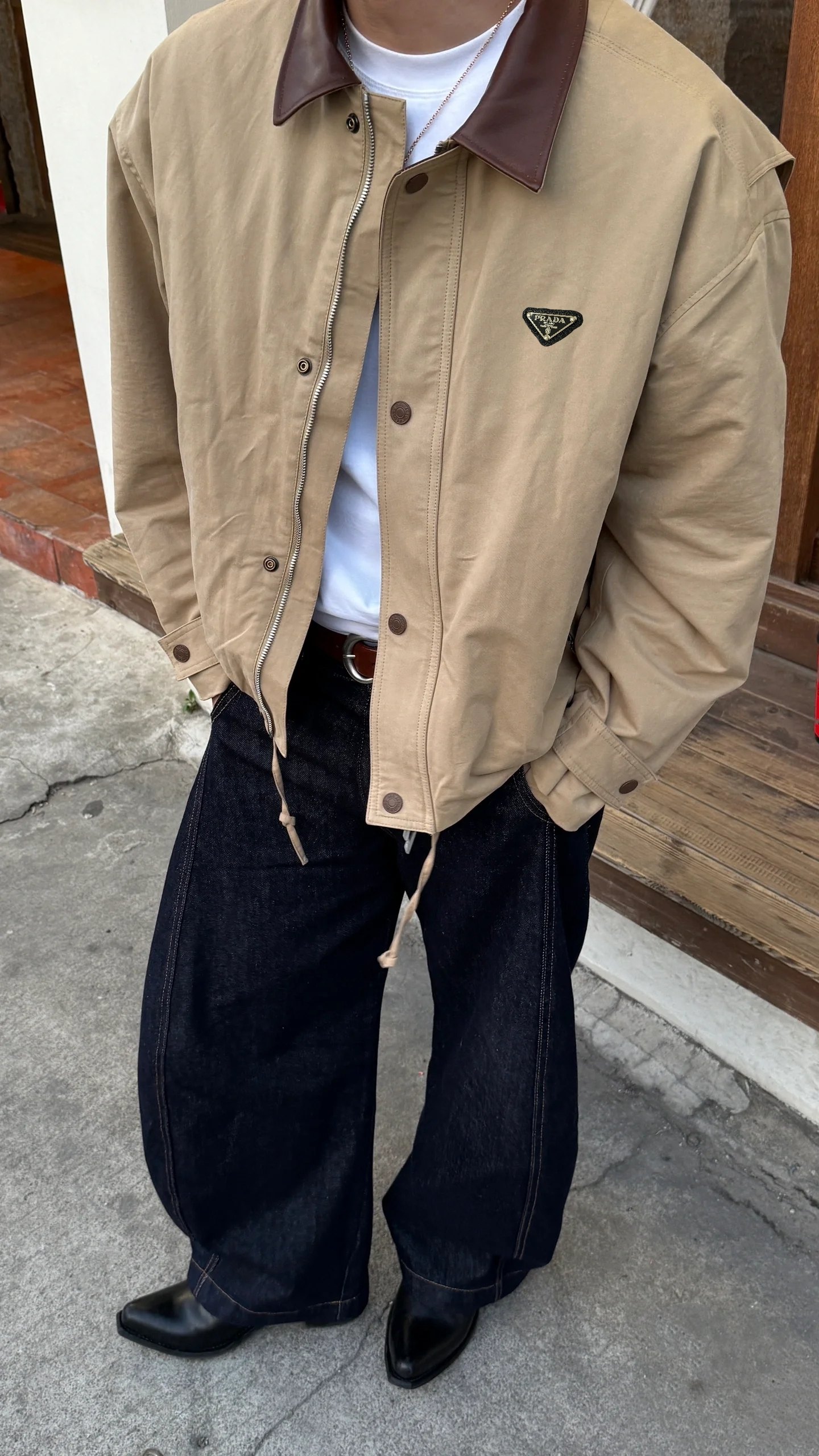 Tags: Designer Jacket, Fall Outerwear, Leather Collar Jacket, Paneled Jacket, Prada Jacket, Retro Barn Jacket