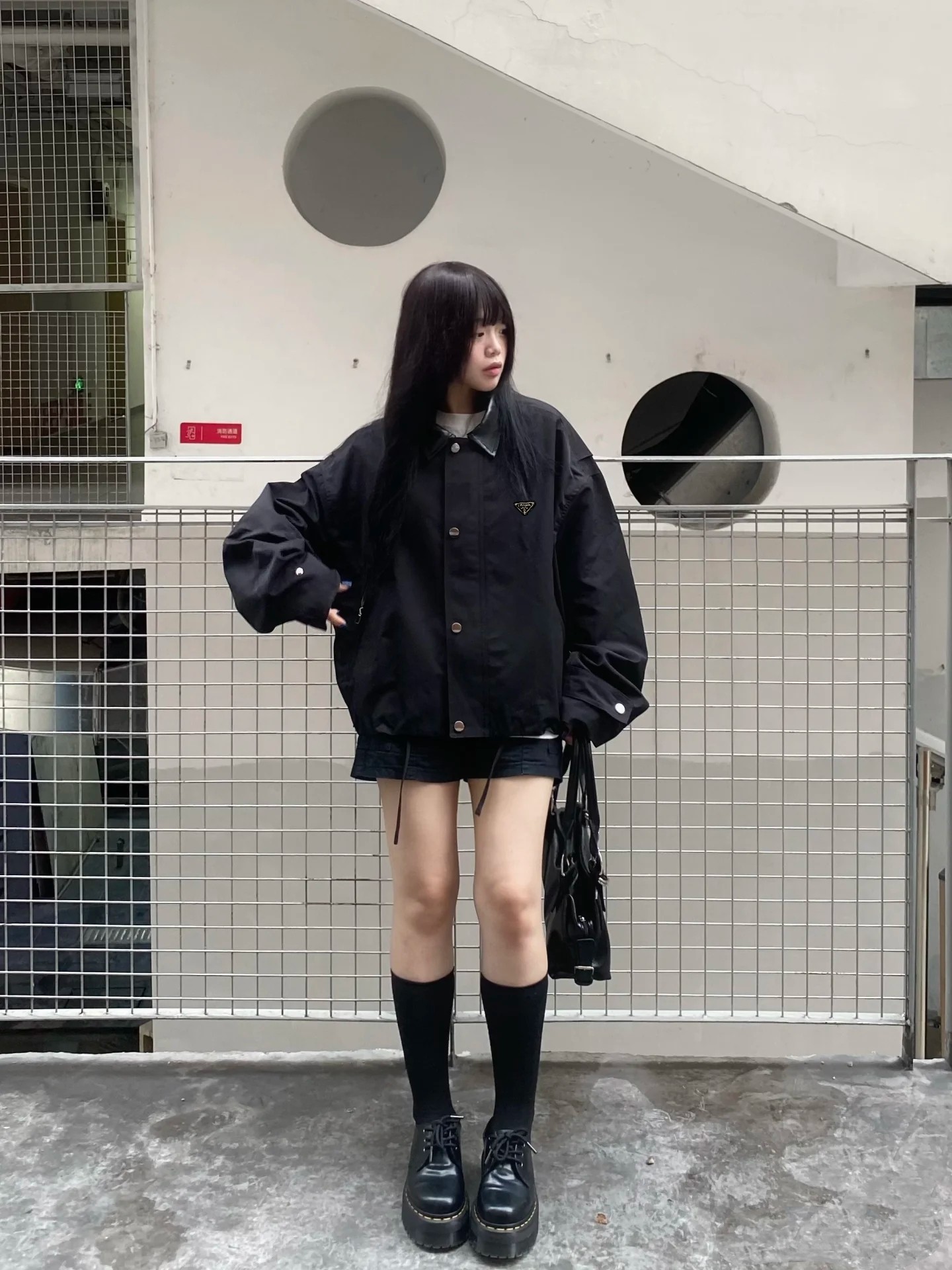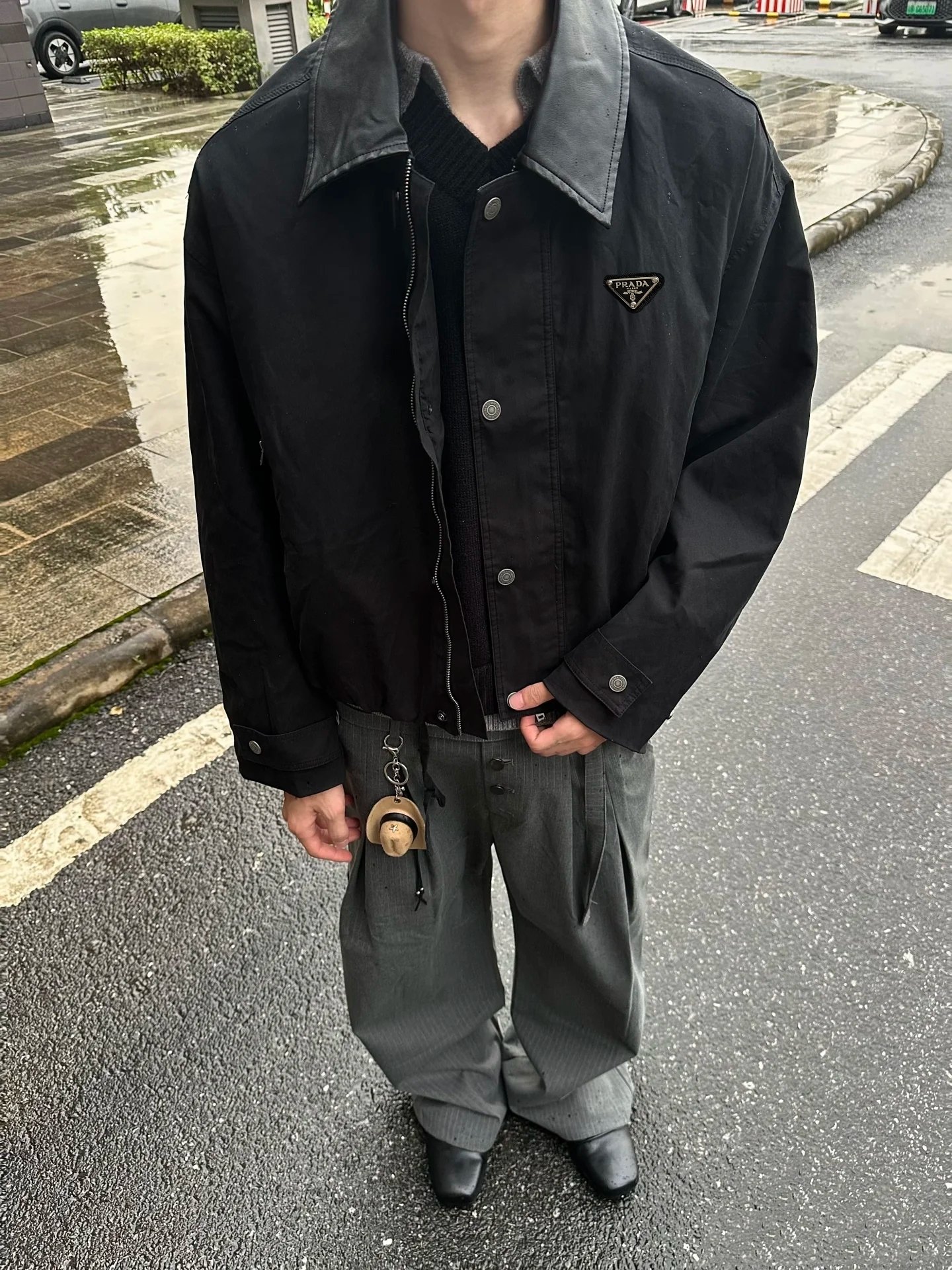 This Prada jacket is a standout piece for the autumn season, blending classic design with modern details.