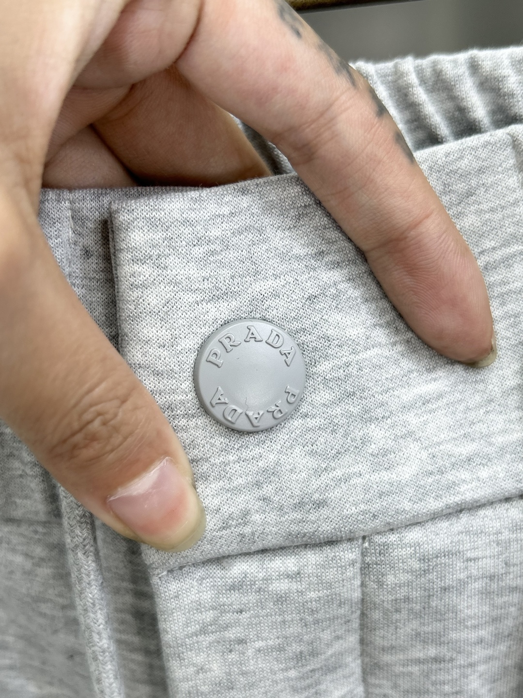 These Prada fleece-lined sweatpants are the ultimate choice for staying cozy and stylish during the fall and winter seasons. Crafted with high-quality materials and featuring a comfortable fleece lining, these sweatpants offer both warmth and a fashionable look.