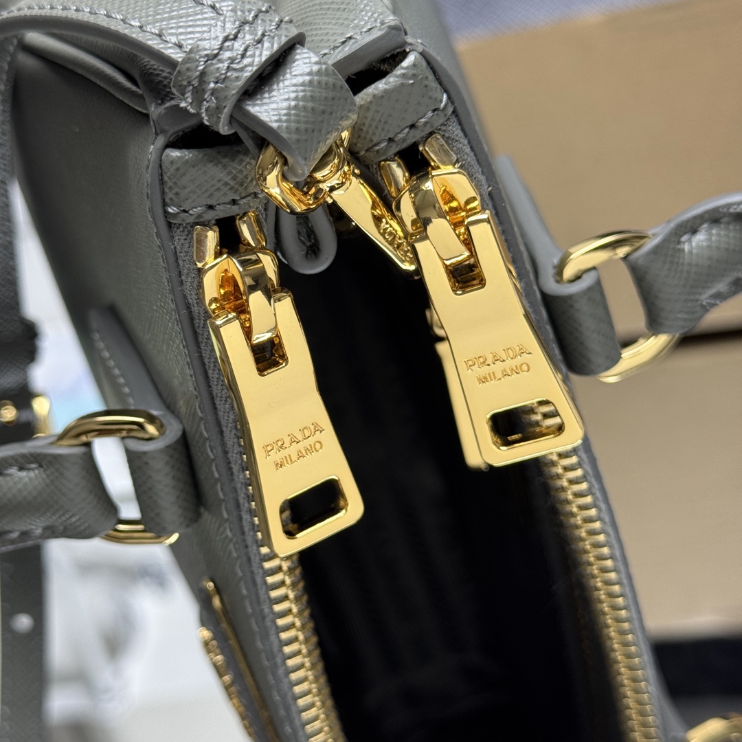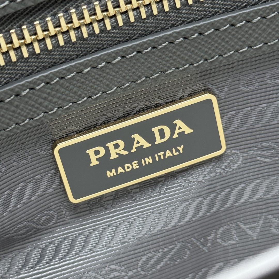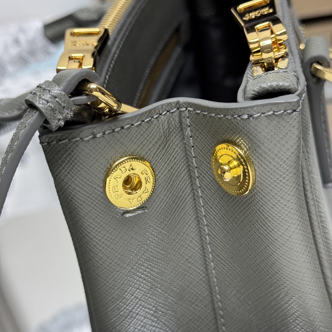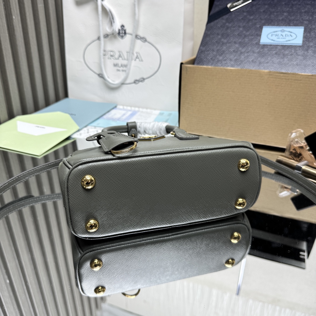 Tags: Designer Mini Bag, Gray Crossbody Bag, Luxury Leather Handbag, Mini Top Handle Bag, Prada Saffiano Leather Bag, Small Galleria Bag