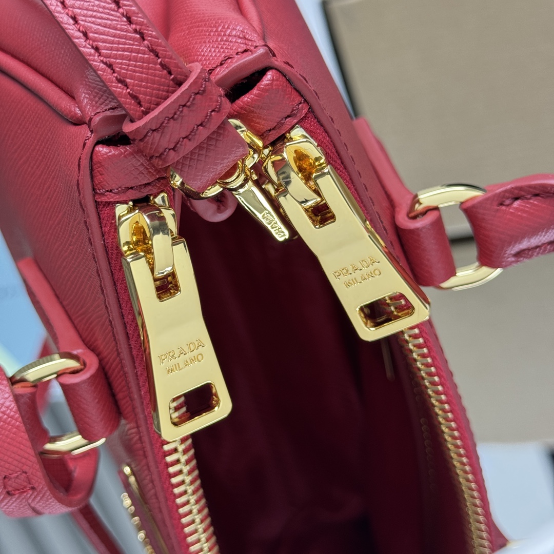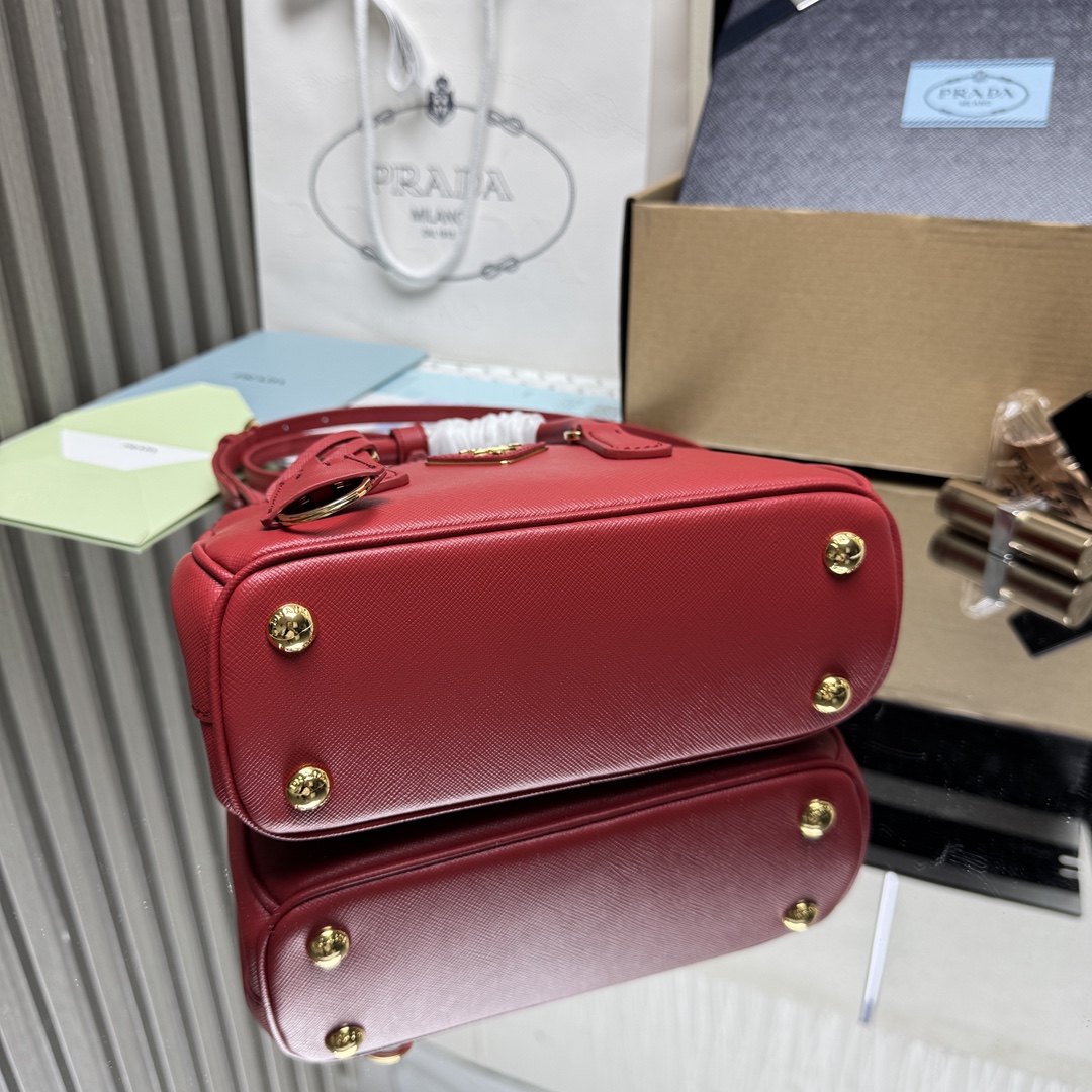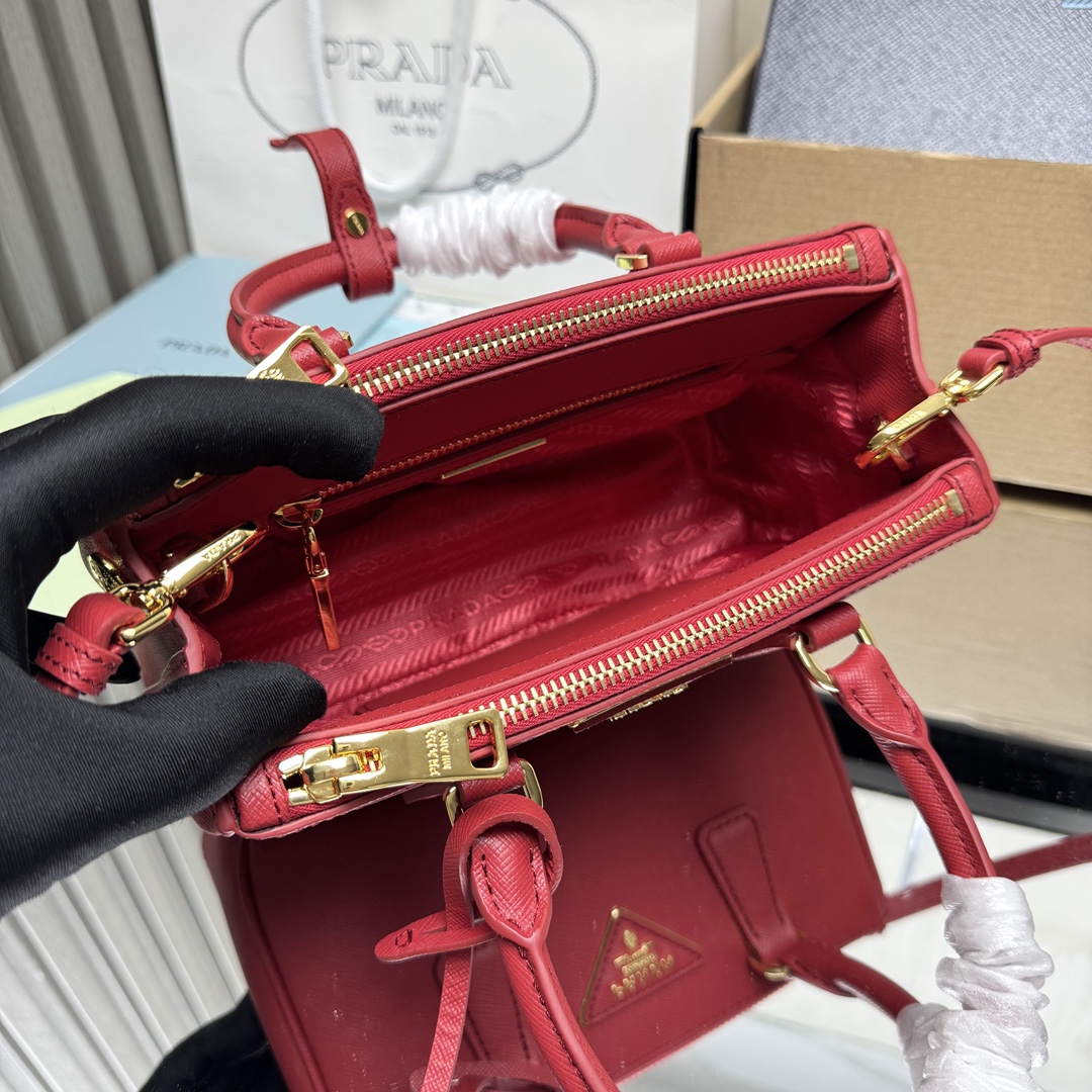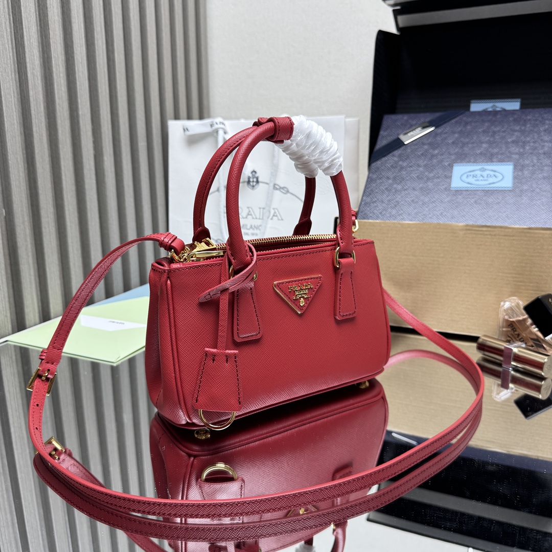 Tags: Designer Mini Bag, Elegant Leather Handbag, Mini Top Handle Bag, Prada Saffiano Leather Bag, Red Crossbody Bag