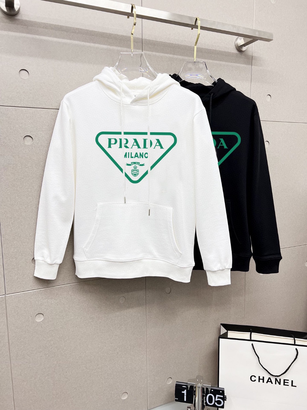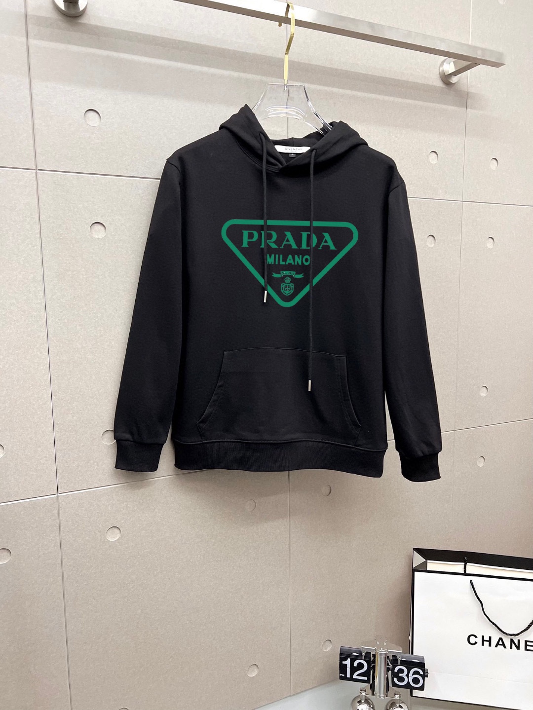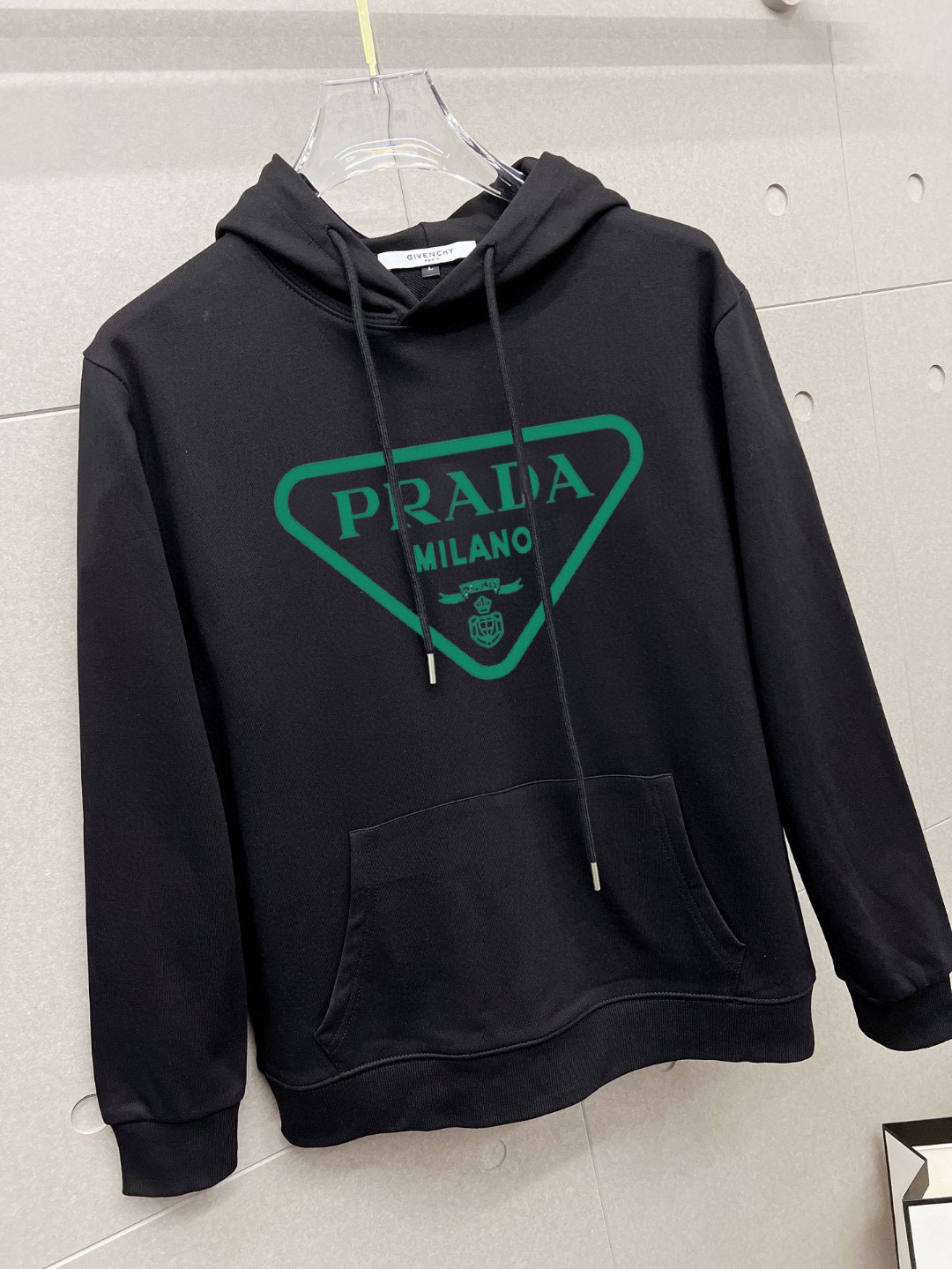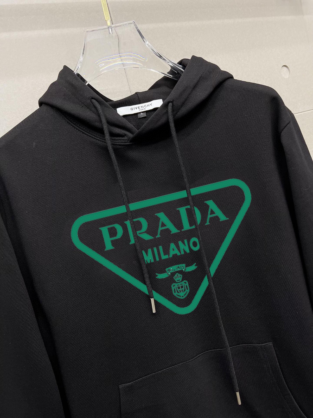 The Prada Milano hoodie is a classic piece that combines comfort and style. Made from a soft cotton blend, this hoodie features a distinctive green Prada logo print, adding a touch of luxury to your casual wardrobe.
