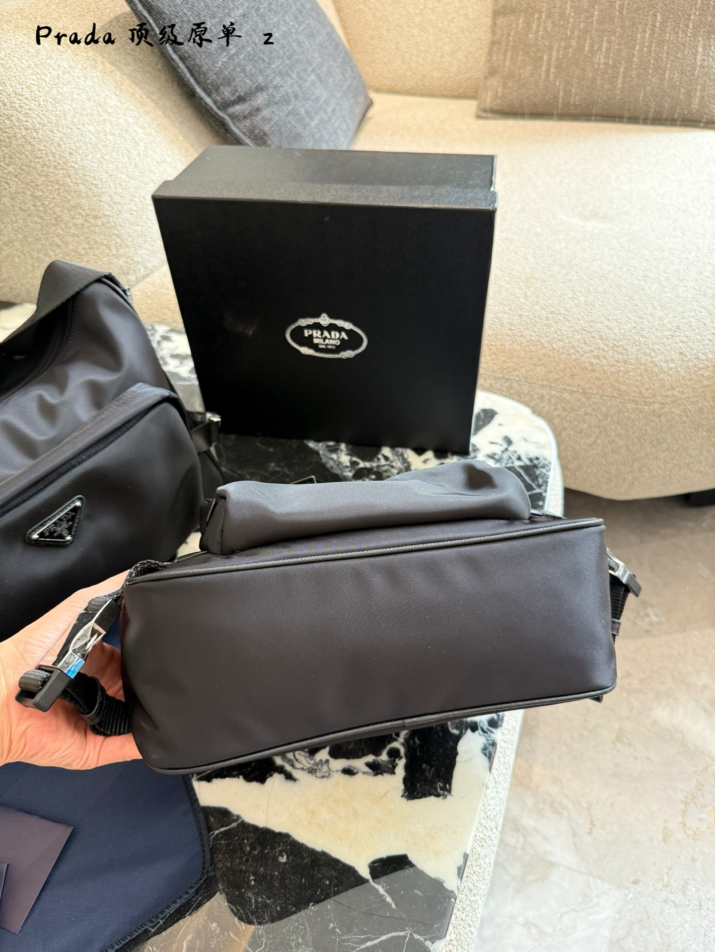 - Iconic Prada Logo: Features the signature triangle logo, adding a touch of luxury and brand recognition.