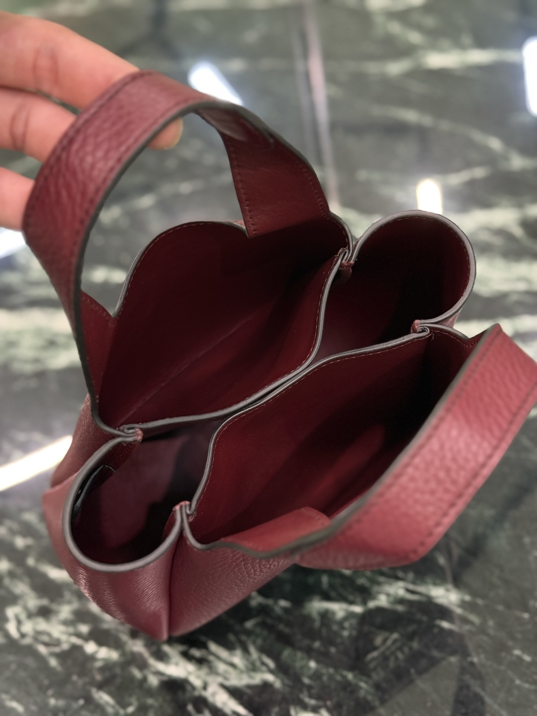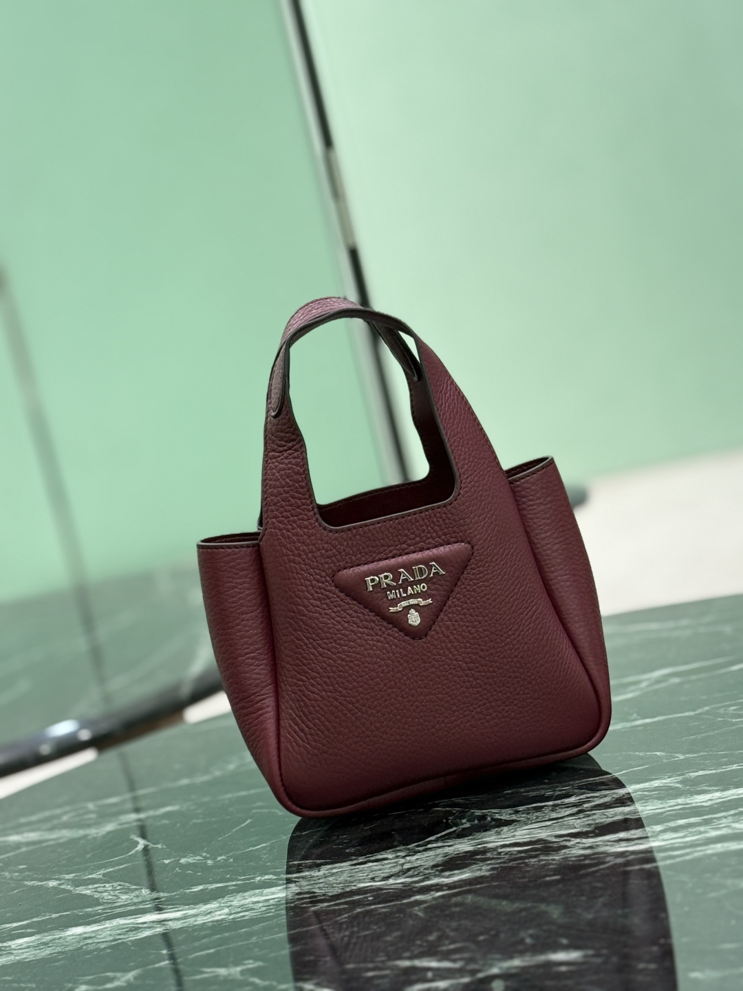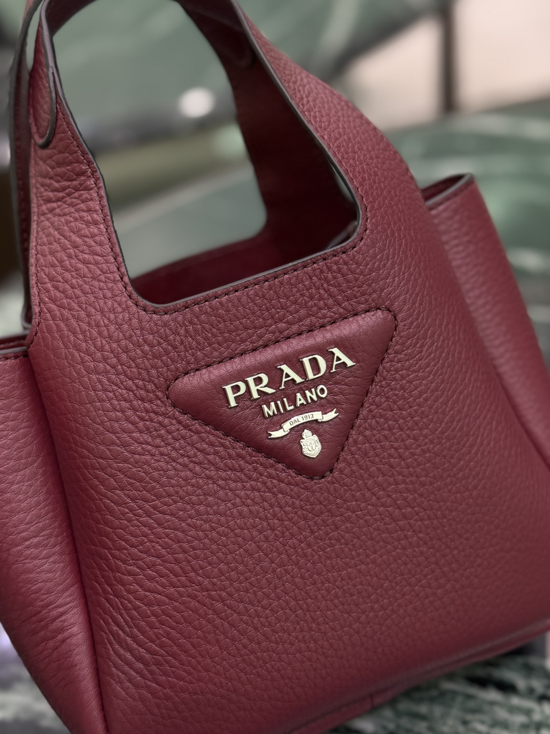 Tags: Burgundy Handbag, Designer Bucket Bag, Luxury Crossbody Bag, Prada 1BA349, Prada bucket bag, Small Leather Tote