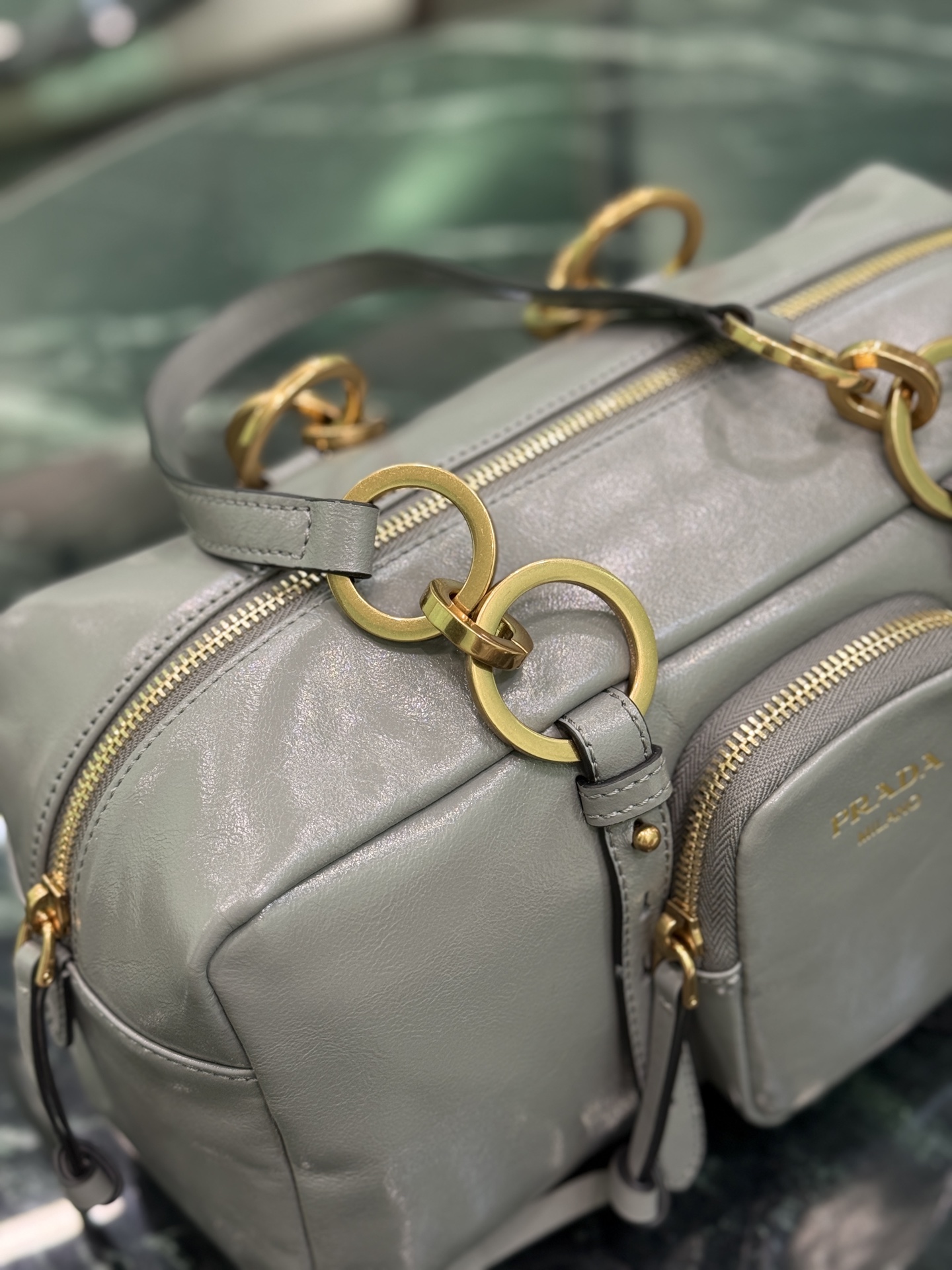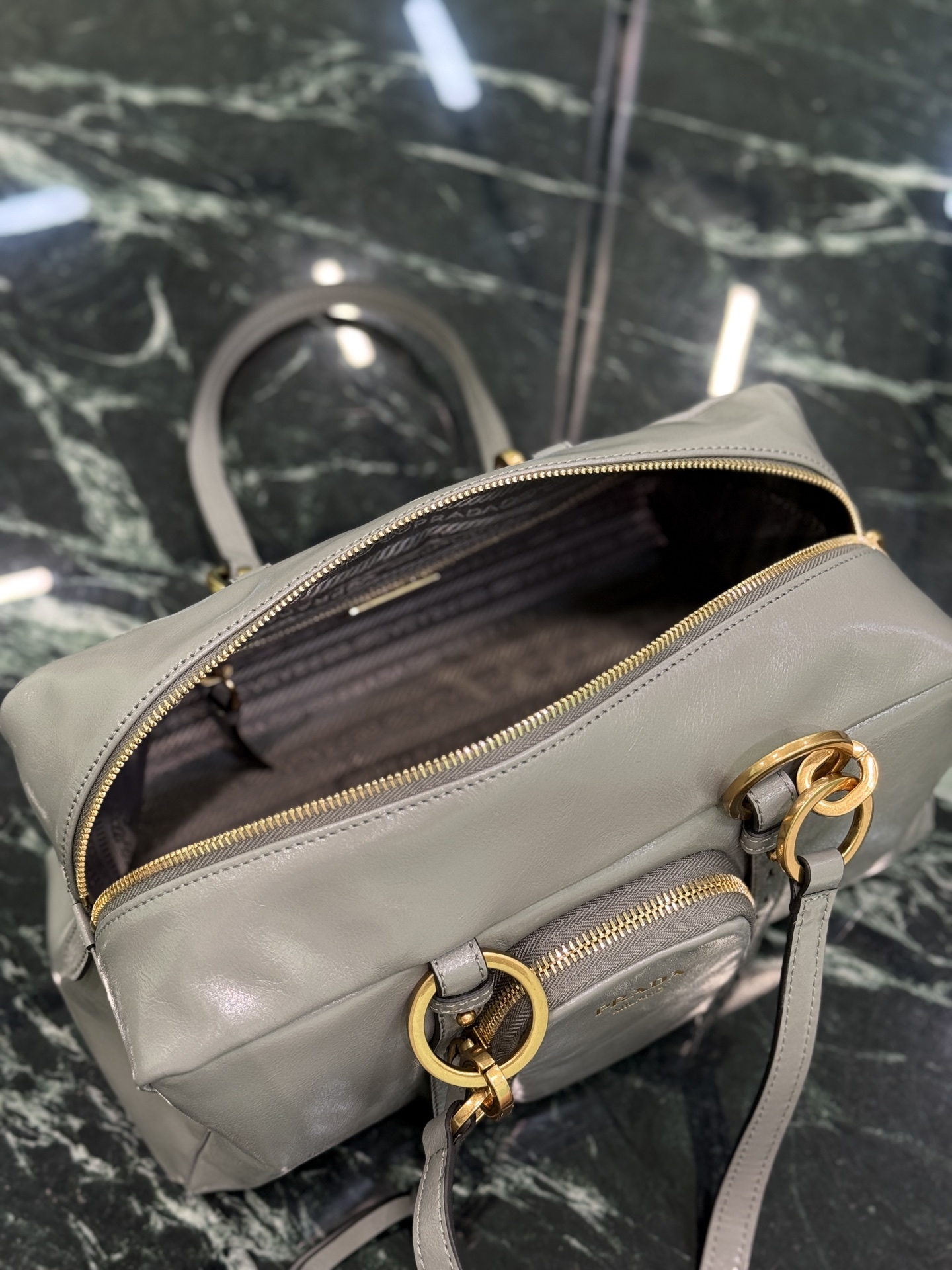 This luxurious Prada Soft Lux cube handbag is a timeless piece that combines classic design with modern functionality. Crafted from supple leather, its vintage-inspired details and spacious interior make it the perfect everyday companion.