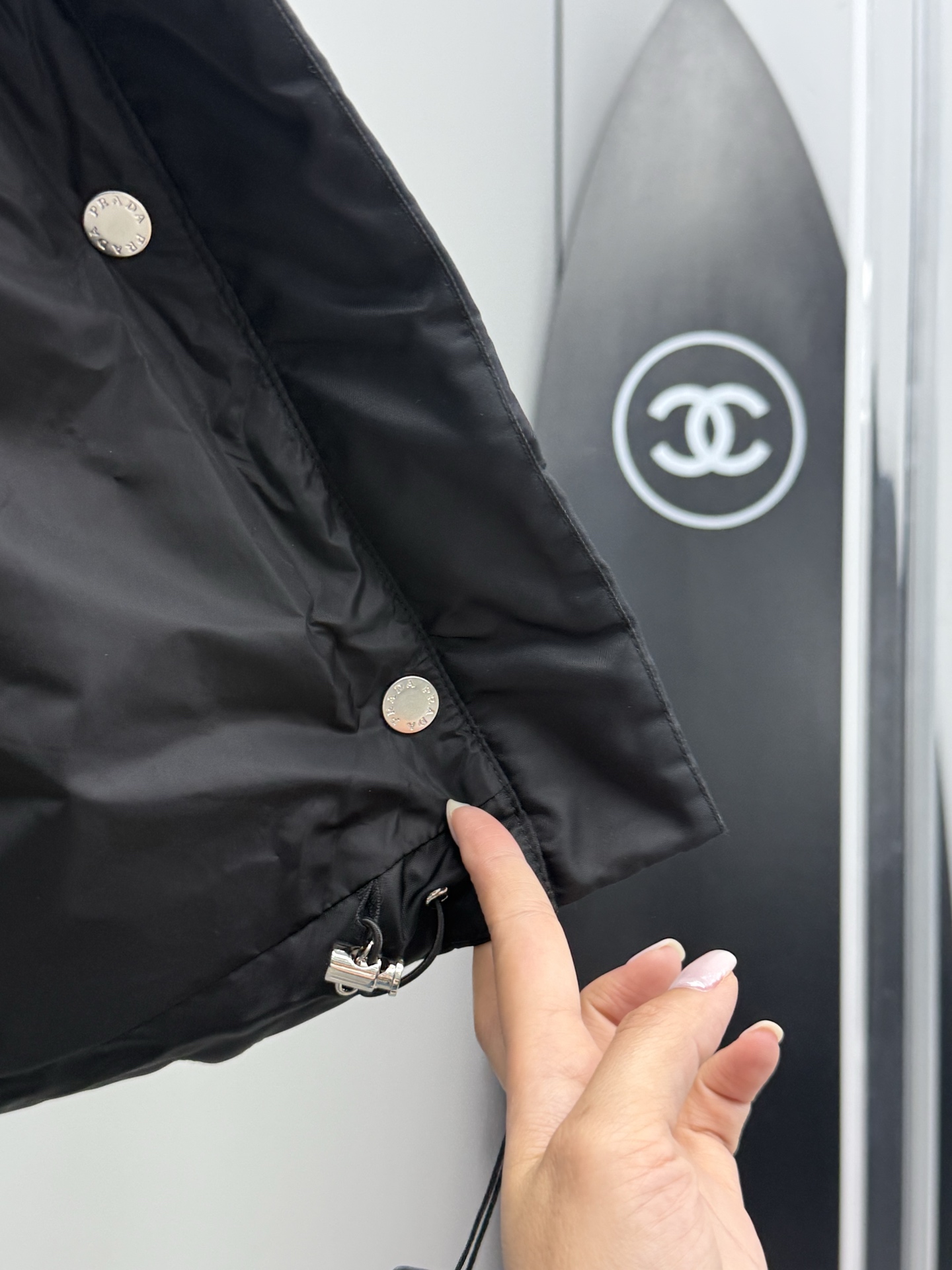 This Prada down jacket is a must-have for any fashion-conscious woman. With its stylish design and practical features, this jacket is sure to turn heads.