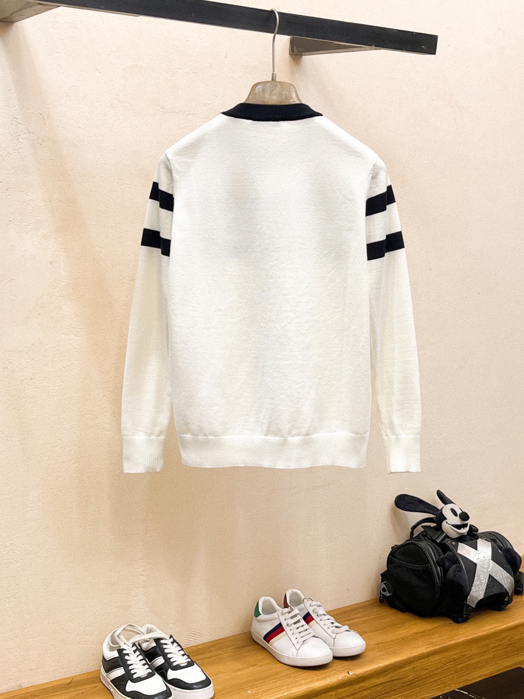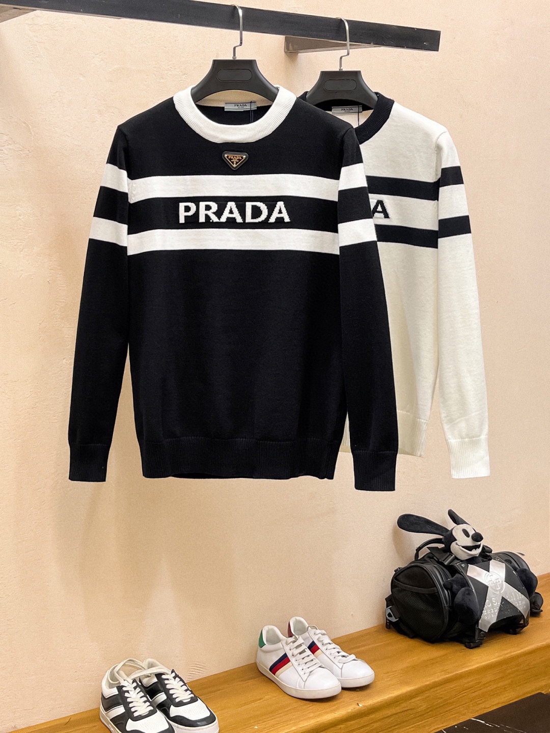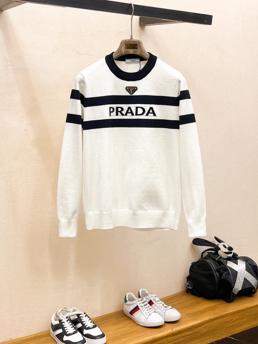 Crafted from a premium wool blend, this Prada sweater combines comfort and style effortlessly. Its classic design and impeccable fit make it a must-have for any fashion-conscious individual.