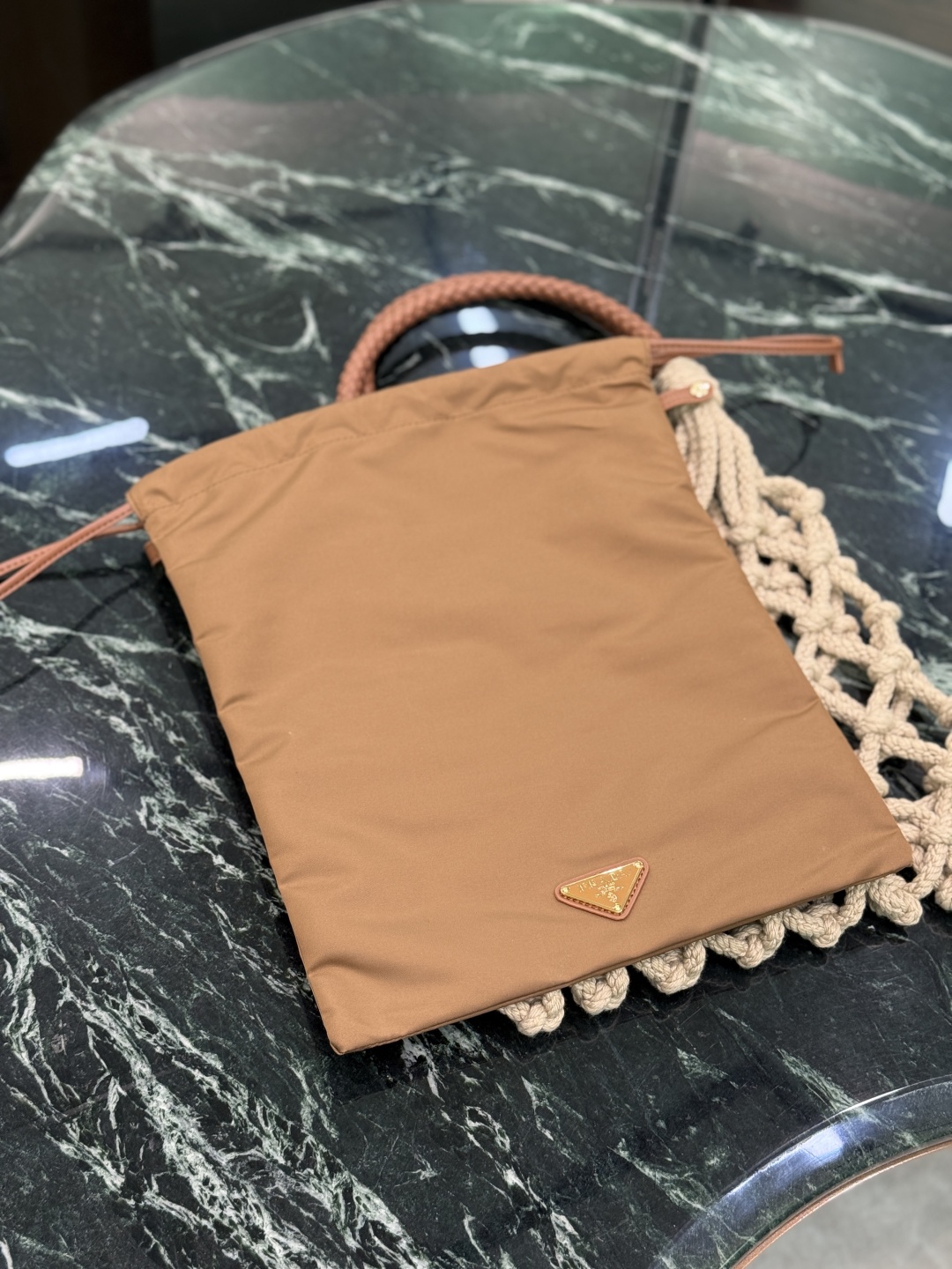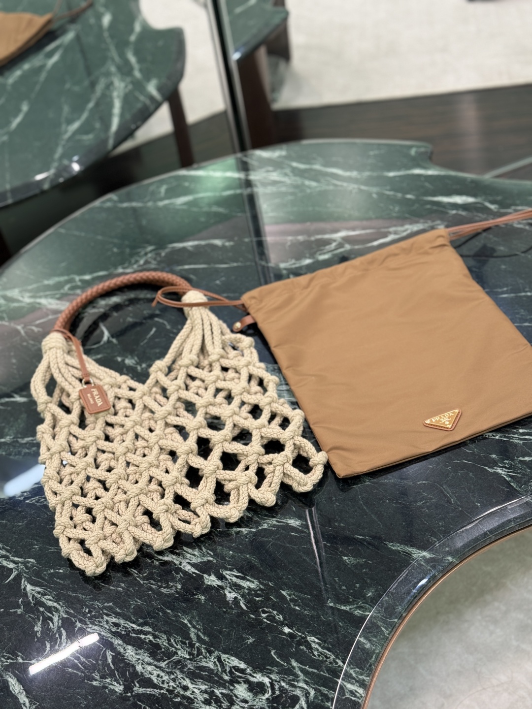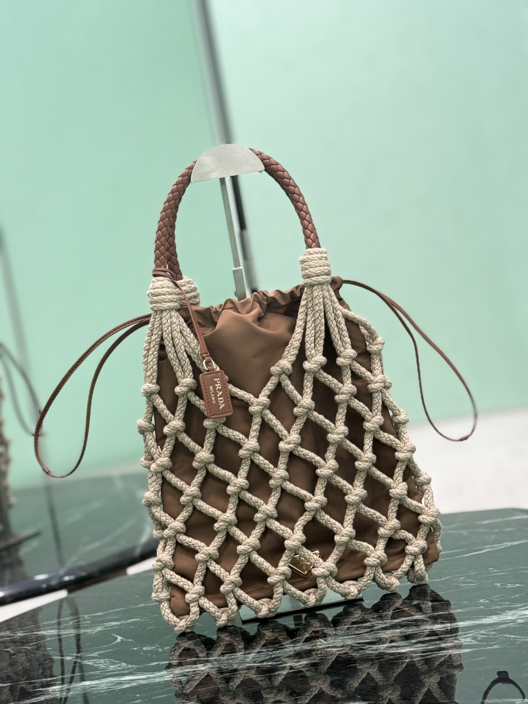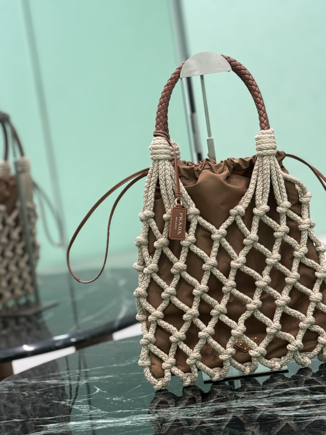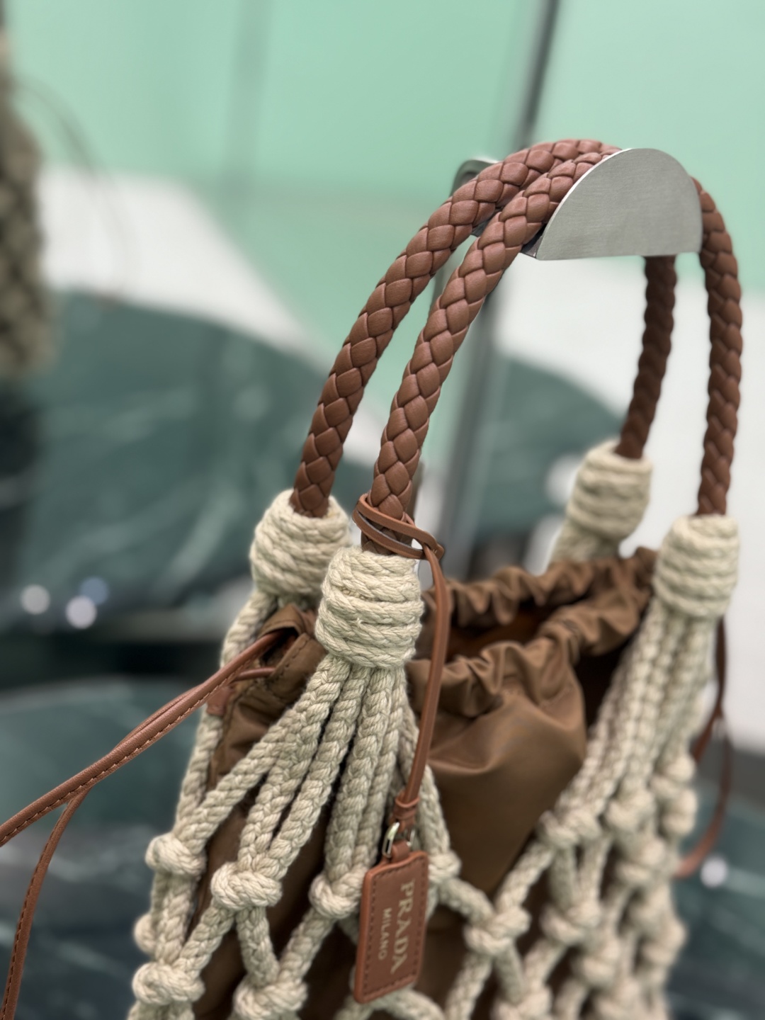 Prada Woven Cotton Lace Handbag Nautical World Inspiration Beige/Brown