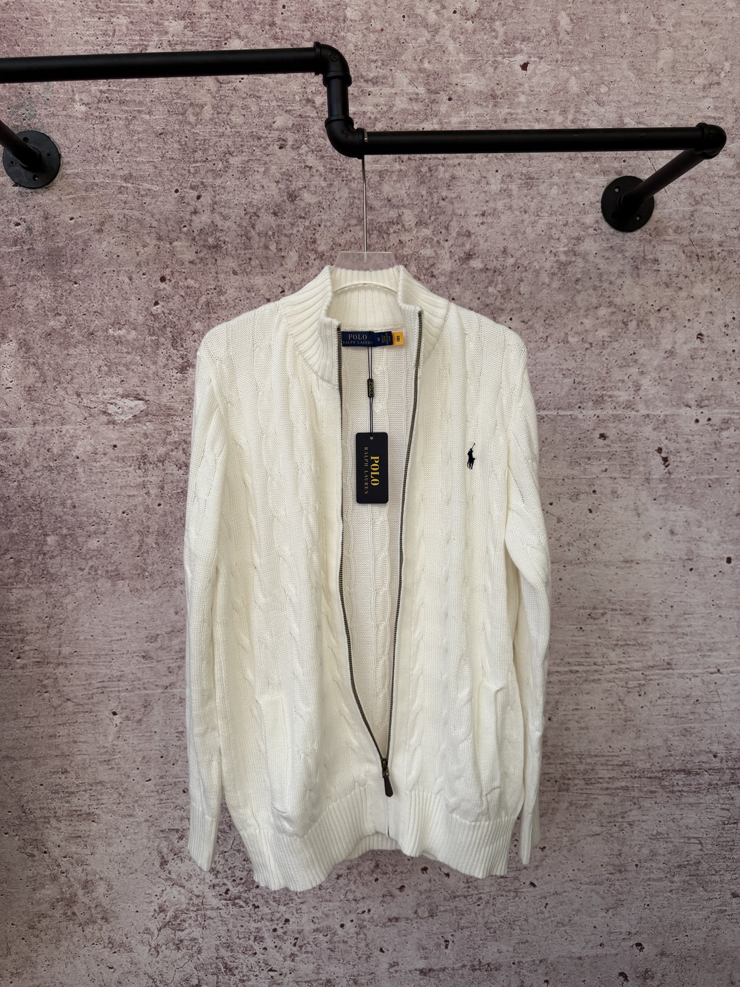Tags: Cable Knit Cardigan, Cotton Blend Sweater, Fall Fashion Sweater, Ralph Lauren Knitwear, Ralph Lauren Sweater, Unisex Zip Sweater