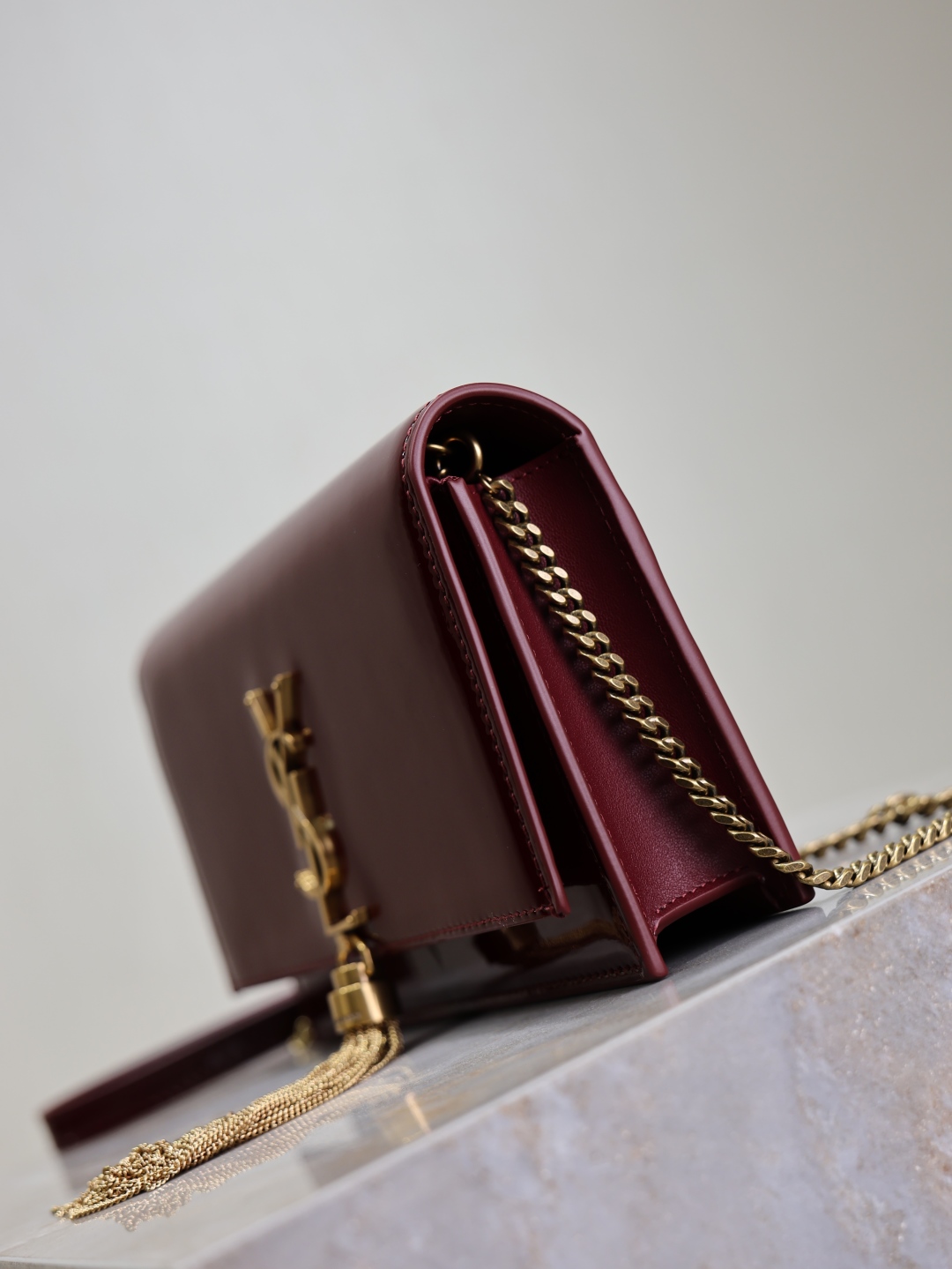 - Design: Features the iconic YSL logo and a stylish tassel detail.