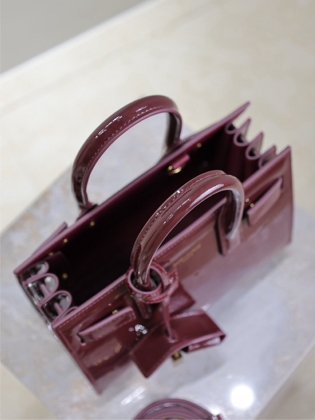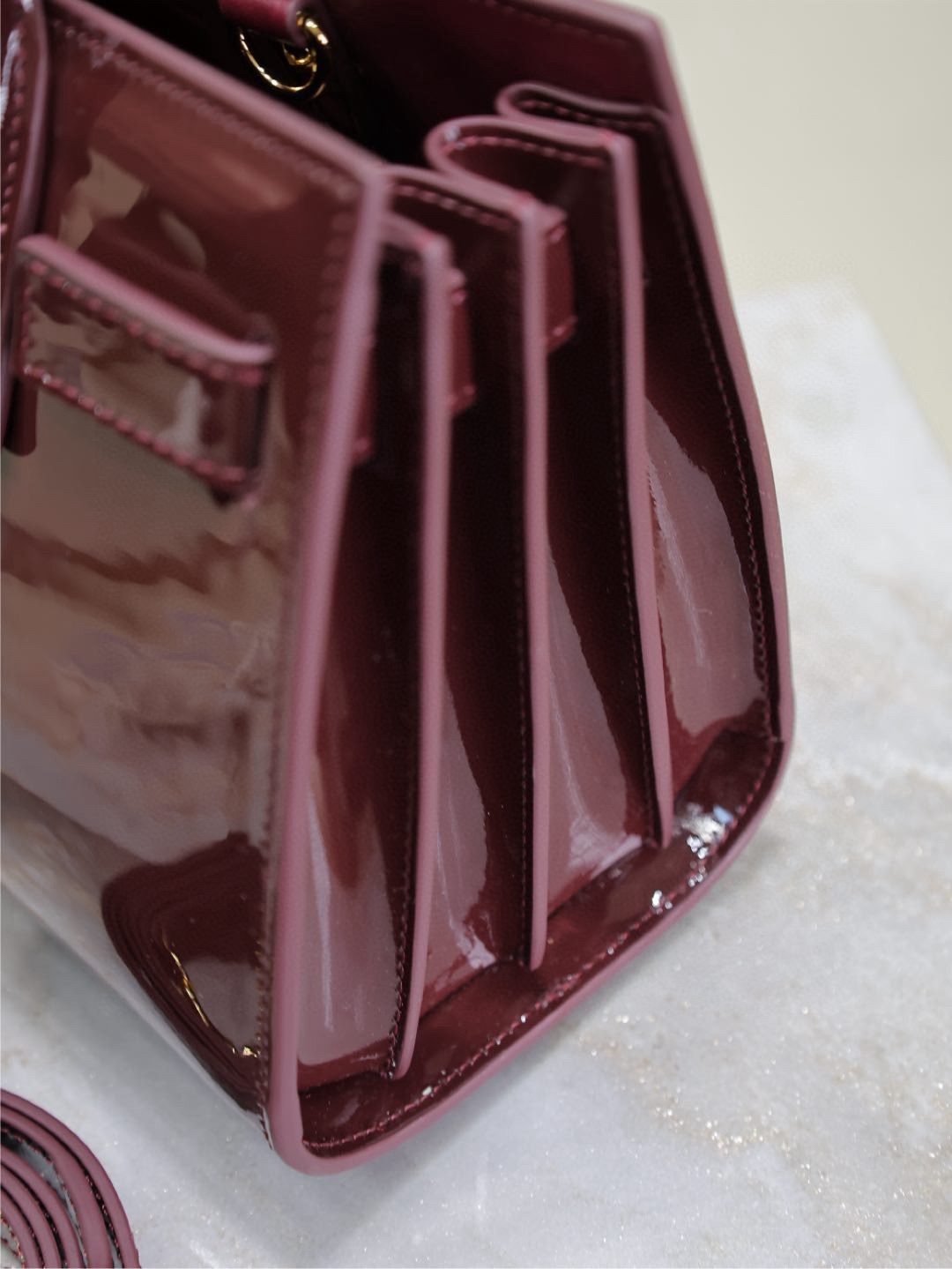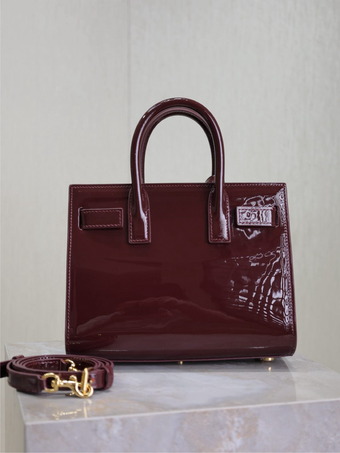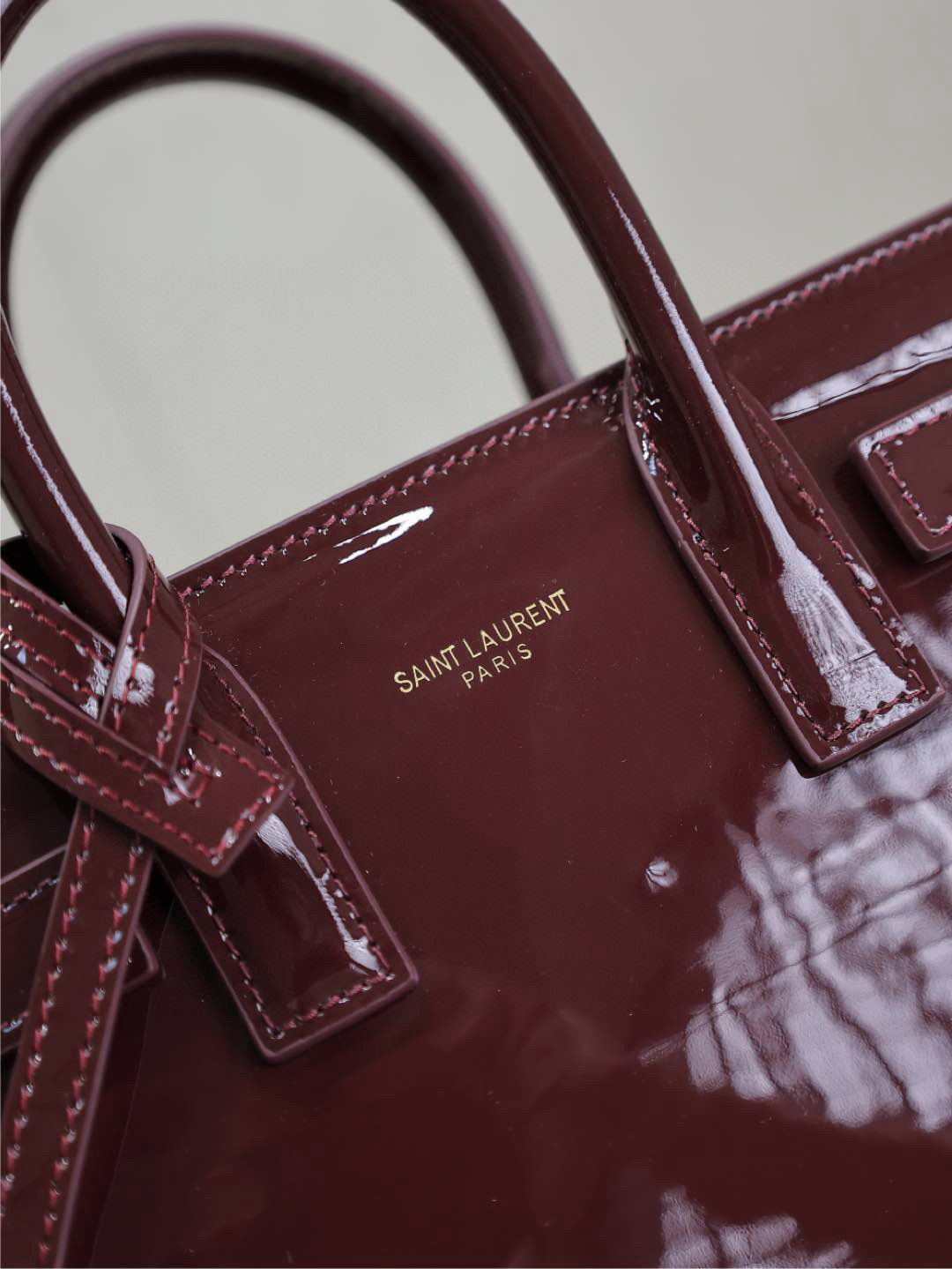 Saint Laurent Sac De Jour Burgundy Patent Leather Top Handle Bag